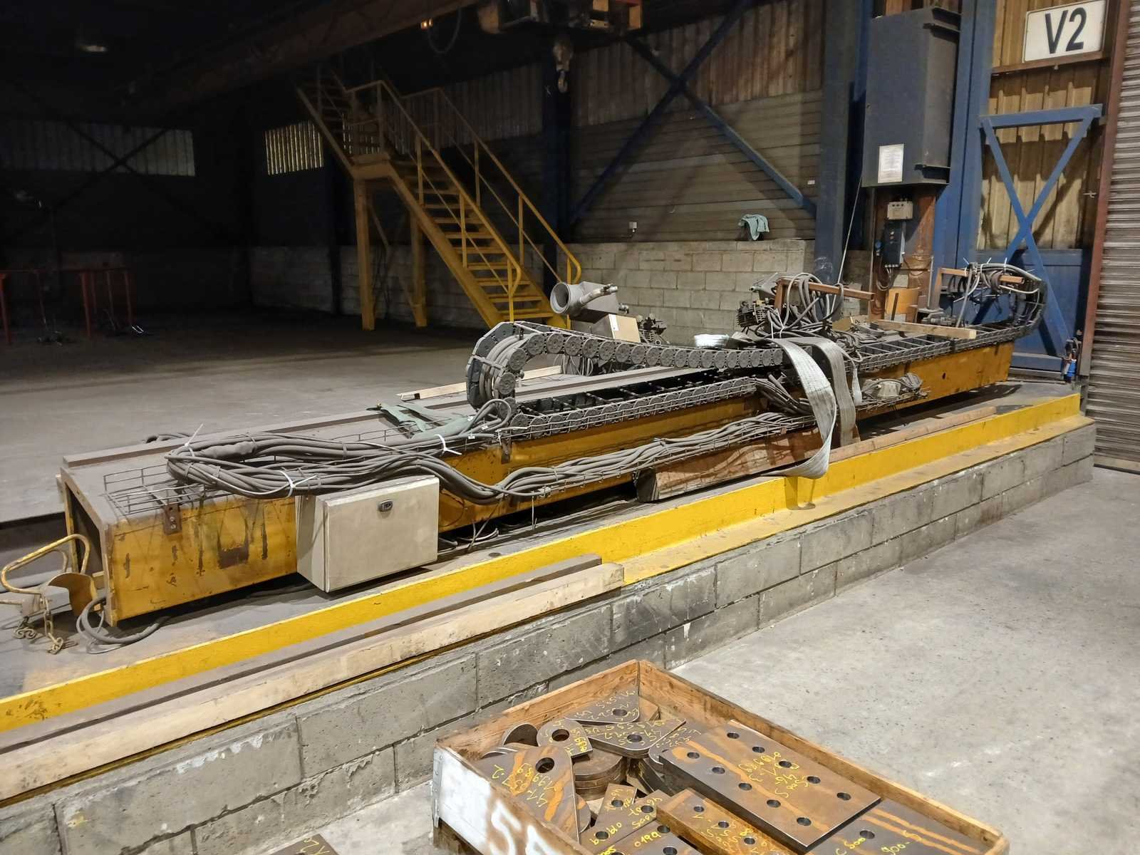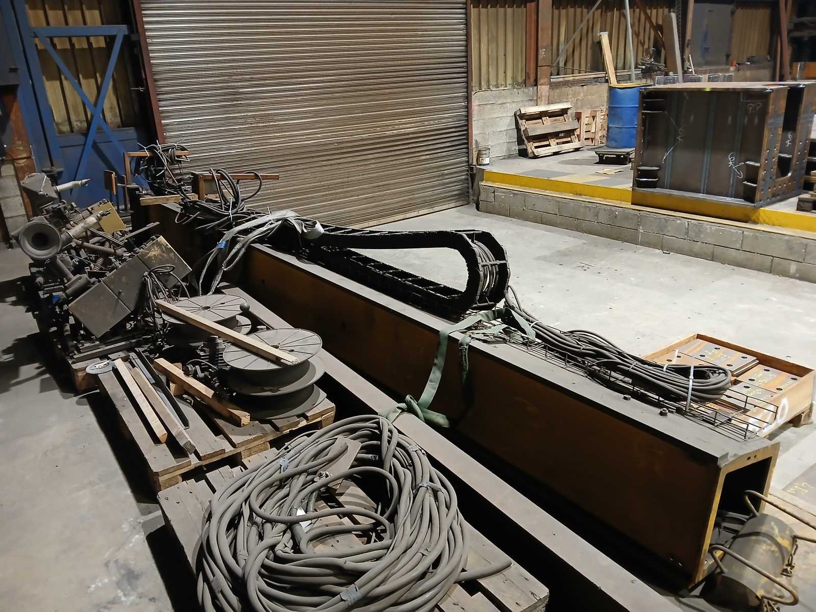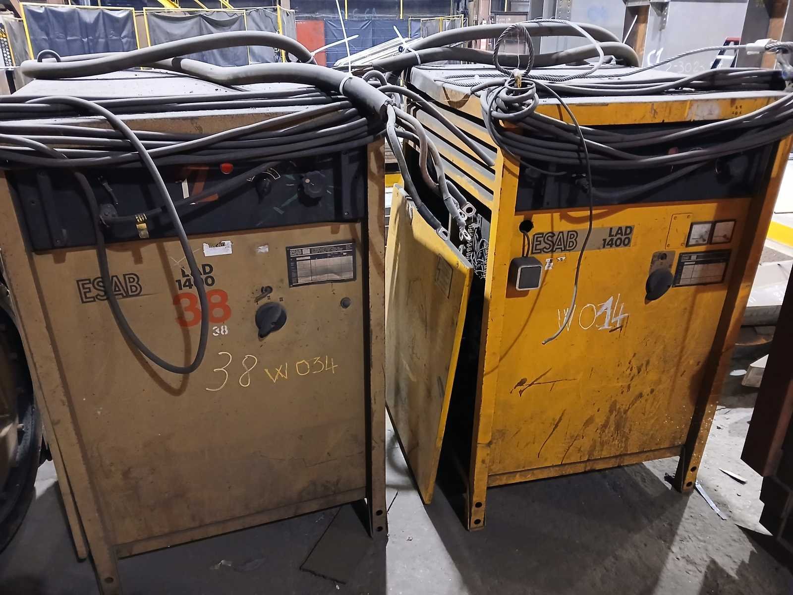 Deze ESAB automatische las-fokkraan, bedoeld voor het SAW/121 (fluxlassen) proces, is volledig uitgerust om met twee gelijktijdige laskoppen te werken. Het wordt gedemonteerd verkocht, met een volledige markering van de kabels om de latere installatie te vergemakkelijken. 🔶 1. Full Arm / Fok Zware straalstructuur Gemotoriseerde trolley Kettingaandrijving Kabels die via sleepkettingen worden geleid Fakkel- en fluxhouders 🔶 Arabisch cijfer. Twee SAW-laskoppen (proces 121) Mondstukhouders en complete branders Rollen, draadvoedingssystemen Lineaire geleiders Individuele training Stroomterugwinning / distributiebox 🔶 3. Twee ESAB LAD 1400 gelijkrichters (aanwezig op uw foto's, geïdentificeerde modellen) Model: ESAB LAD 1400 Eenheidsgewicht: 900 kg Spanningsvrijstelling: 67 V Actueel: 1250 A @ 44 V 1400 A @ 44 V Voeding: 220 / 380 / 415 / 500 V Gemaakt in Zweden Huidige en leesbare naamborden Non Merk: ESAB Type: SAW 121