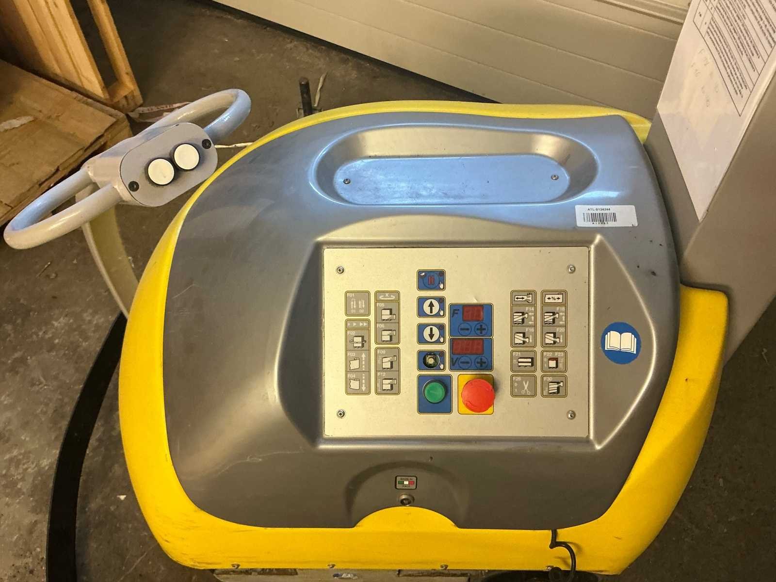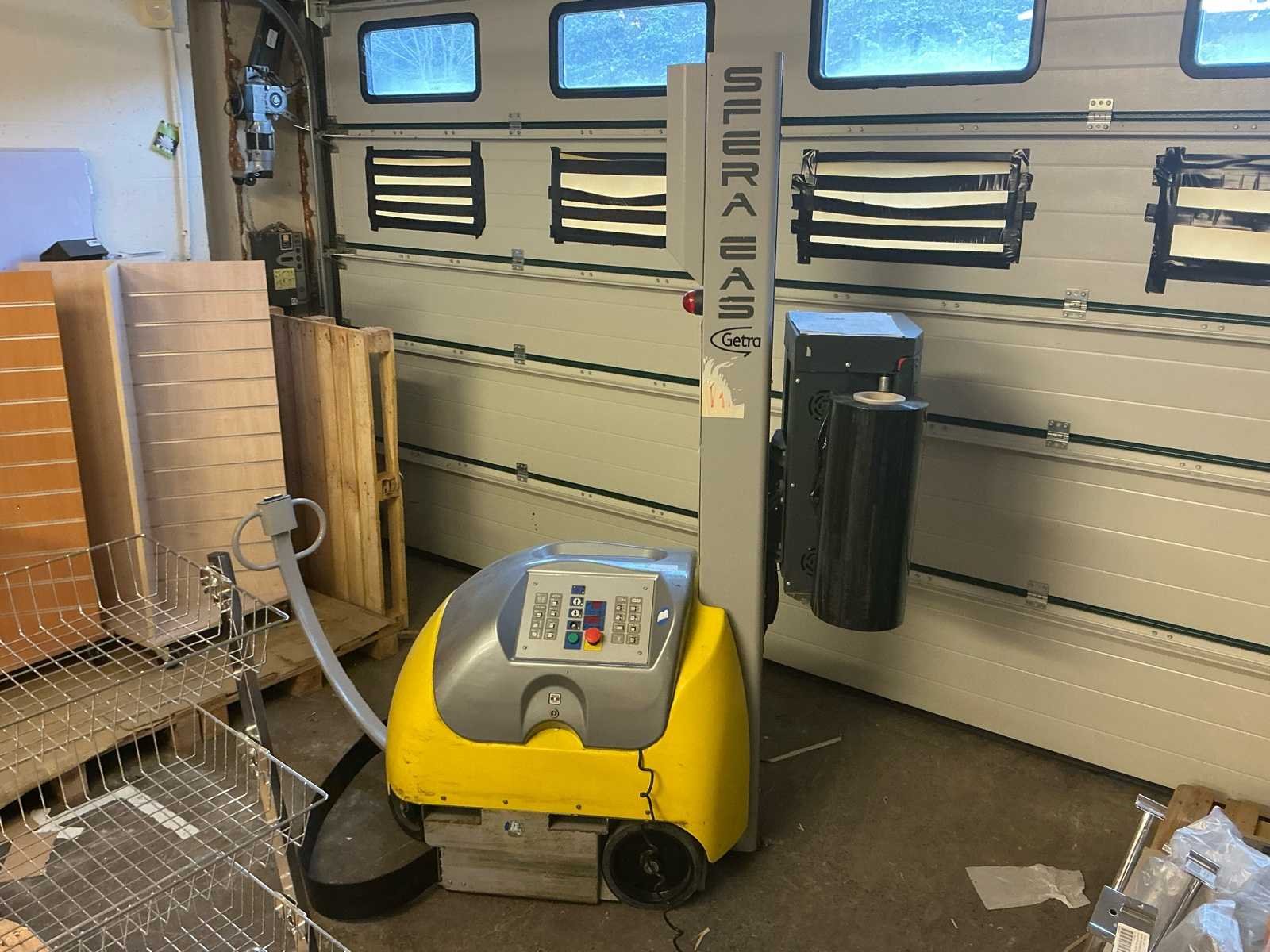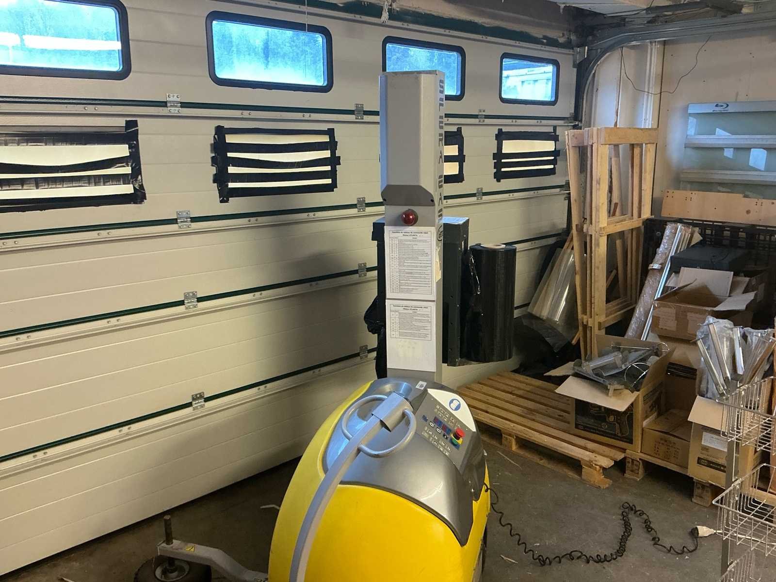 De inpak machine bevindt zich in gebruikte maar werkende staat. De Getra SFERA EASY is een robuuste en gebruiksvriendelijke palletwikkelaar die zich autonoom rond de pallet beweegt. Hierdoor is hij geschikt voor alle palletformaten, ook voor zeer grote of instabiele ladingen waarvoor een draaitafelwikkelaar niet bruikbaar is. Dankzij de eenvoudige bediening, automatische hoogte-detectie en instelbare wikkelprogramma’s is deze machine ideaal voor magazijnen, productiebedrijven, logistieke centra en distributie. De machine heeft een compacte basisunit die rond de pallet rijdt, terwijl de mast met foliecarriage de folie automatisch op spanning brengt en omhoog/omlaag beweegt. Dit maakt snel, efficiënt en uniform wikkelen mogelijk. ✨ Kenmerken • Mobiele palletwikkelrobot – geen draaitafel nodig • Geschikt voor alle palletformaten en -vormen • Automatische fotocel voor pallethoogte • Bedieningspaneel met meerdere instellingen • Instelbare foliespanning • Foliecarriage voor 500 mm stretchfolie • Compact, makkelijk verplaatsbaar • Ideaal voor hoge, brede of onstabiele lasten • Sterke en industriële bouwkwaliteit 📏 Indicatietechnische gegevens (typisch voor de Getra Sfera Easy – exacte waarden kunnen licht variëren) • Max. pallethoogte: ± 2200 mm • Foliebreedte: 500 mm • Voeding: 230V • Afmetingen machine: ca. 120 × 80 × 190 cm • Gewicht: ca. 250–300 kg No Merk: Getra Type: Sfera Easy Aansluiting: 220V Eigen gewicht: 300kg