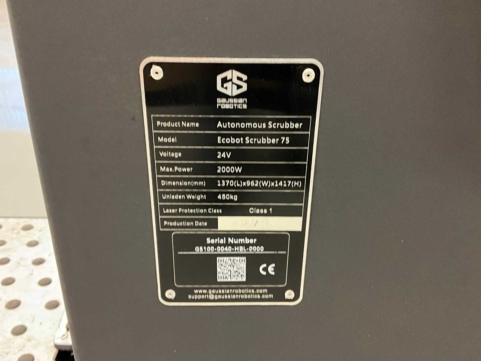 Demo model No Merk: Gausium Robotics Type: Ecobot Scrubber 75 Bouwjaar: 2020 Serienummer: GS100-0040-HBL-0000 Werkbreedte: 750mm Elektrisch: true Aansluiting: 220V Oplaadbaar: true Eigen gewicht: 450kg Totale afmeting L: 1600mm Totale afmeting Breedte: 900mm Totale afmeting Hoogte: 1500mm