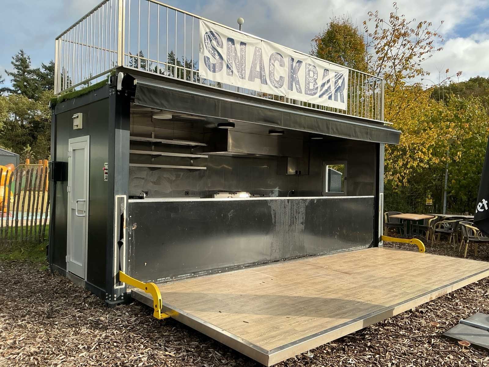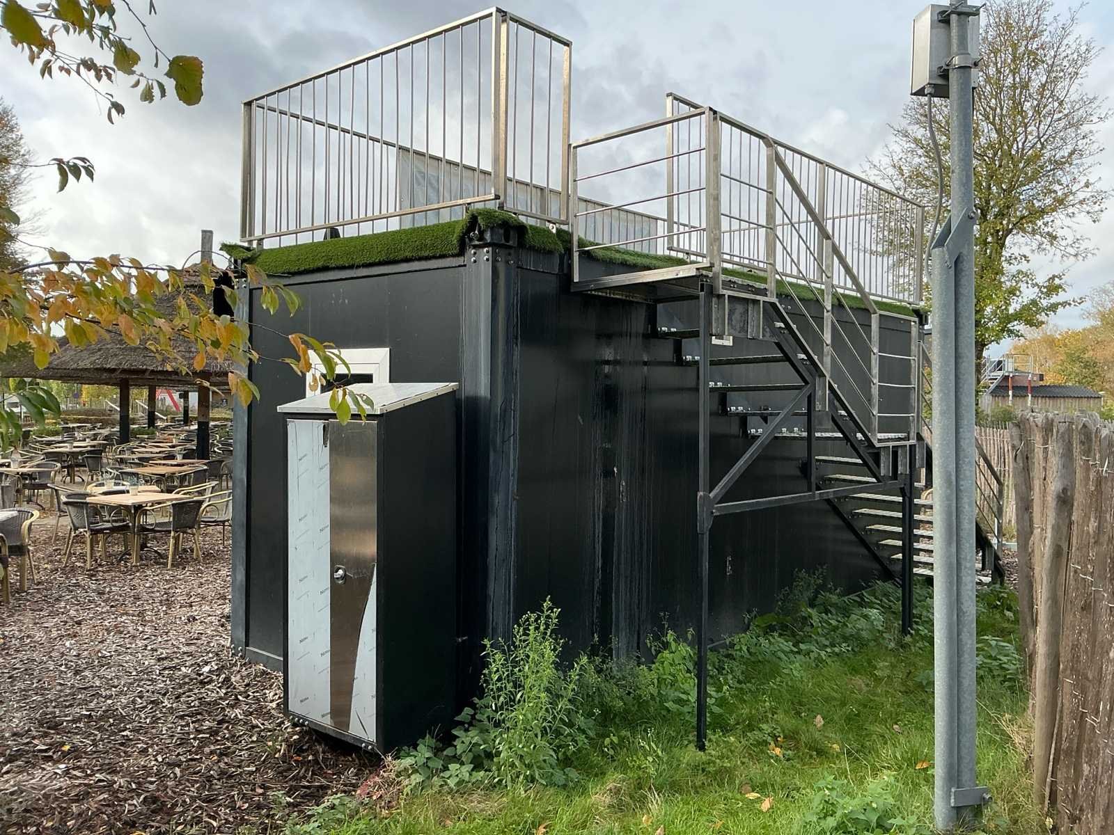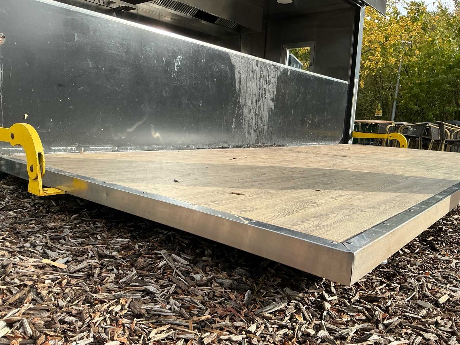Voorzien van: 20ft keuken + bar met hydraulische klep specificaties. Dakterras / uitkijkplatform voorzien van kunstgras en balustrade te bereiken met vaste metalen trap welke inklapbaar is. Volledig uitklapbaar automatisch systeem. Deur met slot en sleutels. 2X 3 deurs barkoelkast. Verlaagde koelwerkbank. Afzuigkap. 2X watersysteem met kraan/wasbak. Volledig RVS afgewerkt. 9X stopcontact op werkbladen. 2X dubbele friteuse. 2X gastank. Verlichting. Automatische luifel. Het betreft een mobiele eetgelegenheid en kan gebruikt worden op vaste locaties (campings, evenementen, bouwterreinen), Pop-up horeca, Seizoensgebonden horeca (Strandpaviljoen of Pretparken) Nee Merk: Mobilchef Aantal ramen: 1 Uitklapbaar: true Totale afmeting L: 6540mm Totale afmeting Breedte: 3280mm Totale afmeting Hoogte: 3740mm Leveringsvoorwaarden: Niet gefundeerd - onverpakt