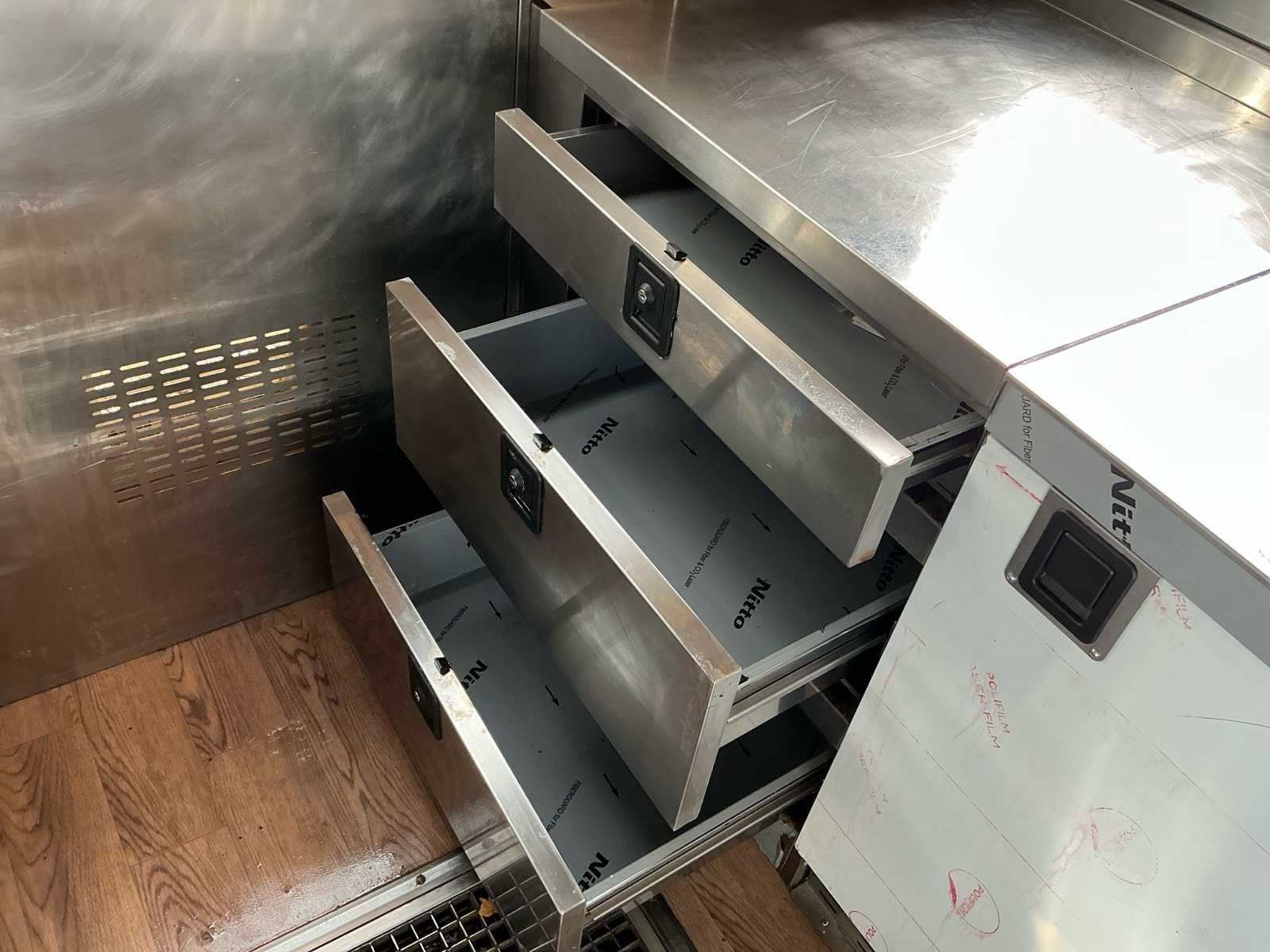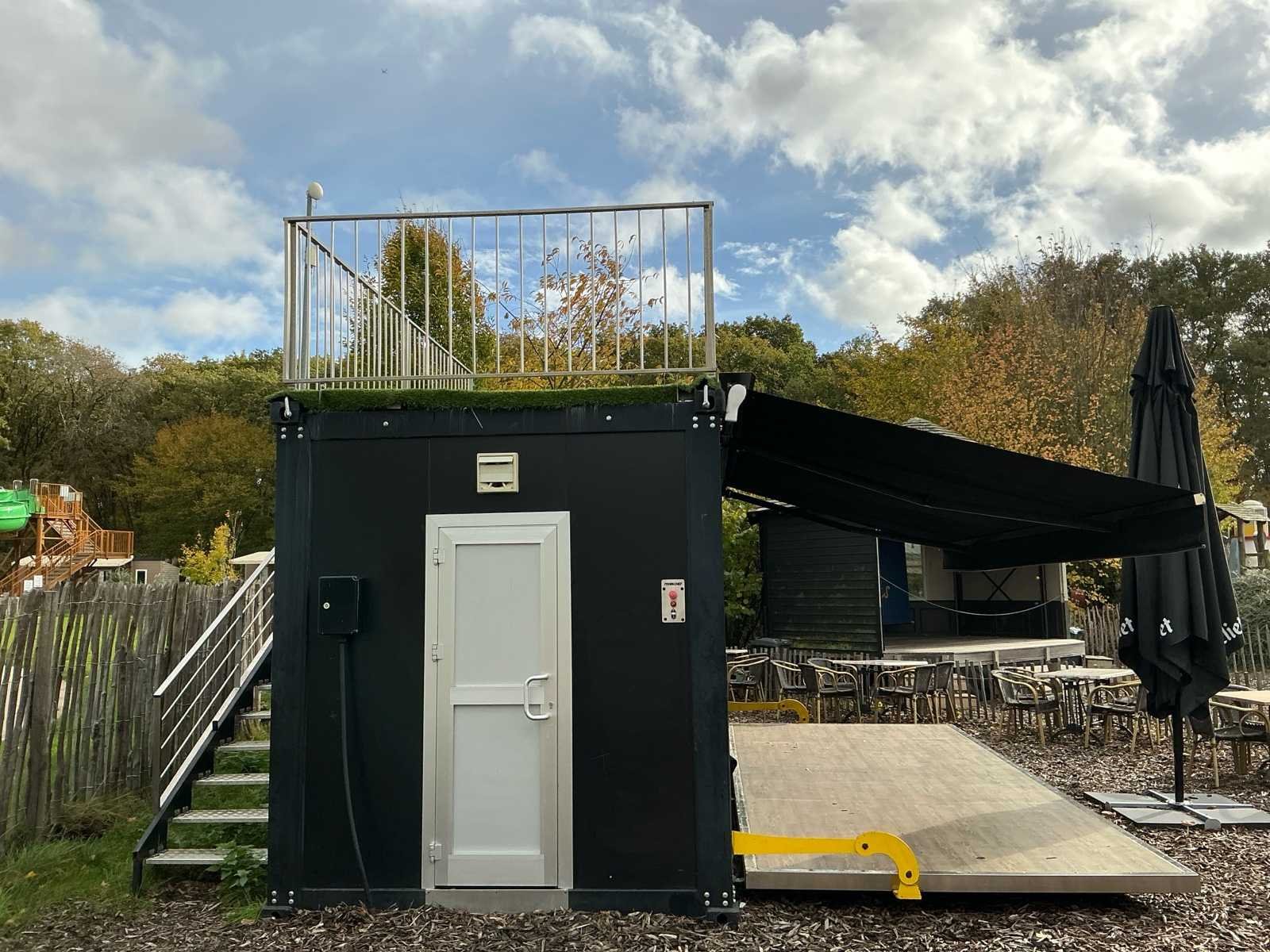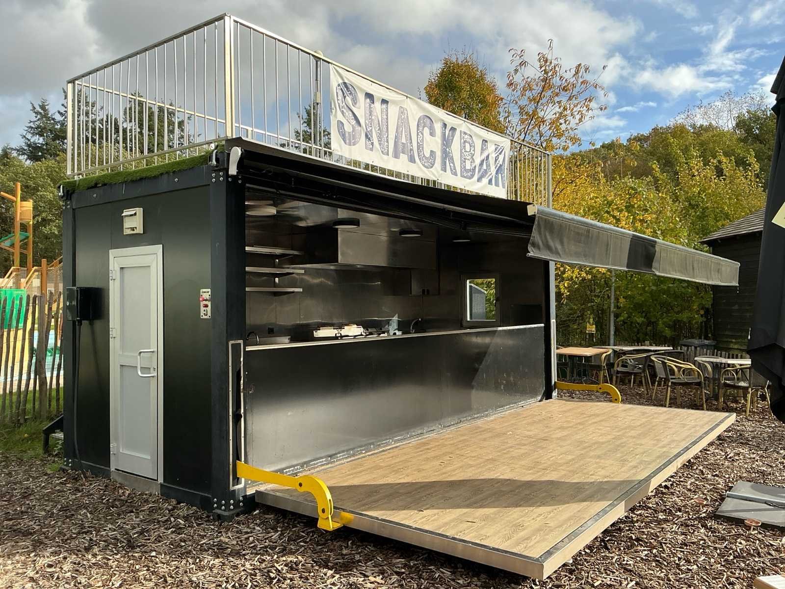 Voorzien van: 20ft keuken + bar met hydraulische klep specificaties. Dakterras / uitkijkplatform voorzien van kunstgras en balustrade te bereiken met vaste metalen trap welke inklapbaar is. Volledig uitklapbaar automatisch systeem. Deur met slot en sleutels. 2X 3 deurs barkoelkast. Verlaagde koelwerkbank. Afzuigkap. 2X watersysteem met kraan/wasbak. Volledig RVS afgewerkt. 9X stopcontact op werkbladen. 2X dubbele friteuse. 2X gastank. Verlichting. Automatische luifel. Het betreft een mobiele eetgelegenheid en kan gebruikt worden op vaste locaties (campings, evenementen, bouwterreinen), Pop-up horeca, Seizoensgebonden horeca (Strandpaviljoen of Pretparken) Nee Merk: Mobilchef Aantal ramen: 1 Uitklapbaar: true Totale afmeting L: 6540mm Totale afmeting Breedte: 3280mm Totale afmeting Hoogte: 3740mm Leveringsvoorwaarden: Niet gefundeerd - onverpakt