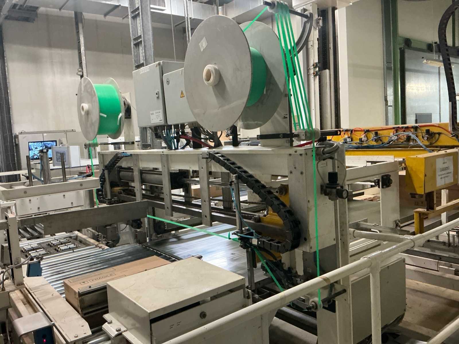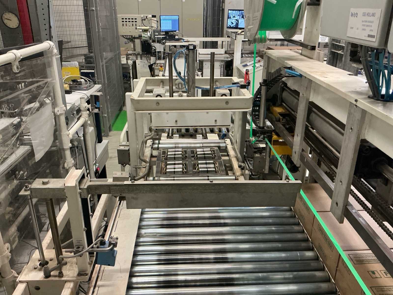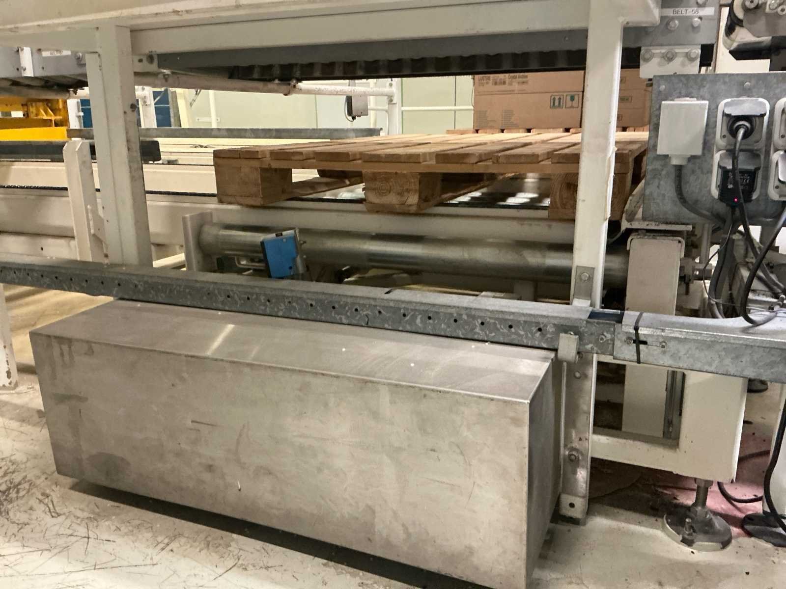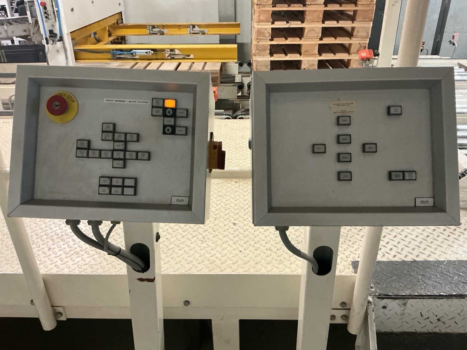 Voorzien van: De complete installatie bestaat uit een Stork Bepak C2000 palletiseermachine (1991) met 27 meter transportbanden en een Stork Conveyor Systems handlingmodule (1988) voor het positioneren, centreren en verplaatsen van pallets, samen goed voor een capaciteit van 8–20 pallets/uur, geschikt voor EU- en blokpallets, gebouwd uit zware staalconstructies met PLC-besturing, veiligheidsvoorzieningen en elektromotorische aandrijving. 27 meter band tot aan 1e pallet. In totaal met automatische car 38m. machine/linielijn waarmee producten automatisch worden opgestapeld (gepaletiseerd) op pallets, vaak in combinatie met een transportband (in dit geval ongeveer 27 meter lang). LET OP! Demontage en levering van de machine zal plaats vinden in Februari 2026! Nee Merk: Stork Bepak Type: C2000 Bouwjaar: 1991 Serienummer: 035 76002 Invoer rollenbaan: true Afvoer rollenbaan: true Veiligheidshekwerk: true Aansluiting: 380V Totale afmeting L: 38000mm