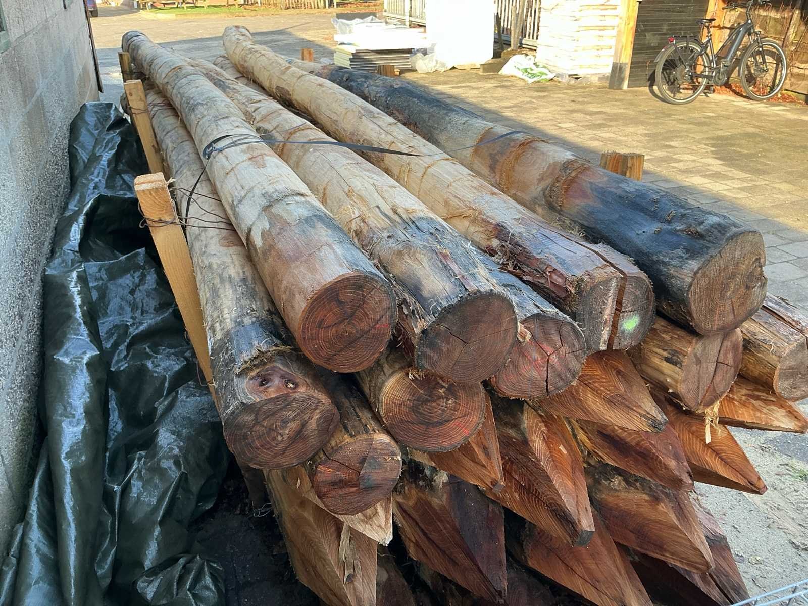 Robinia palen ø 160-180mm geschild en gepunt - 5000mm.