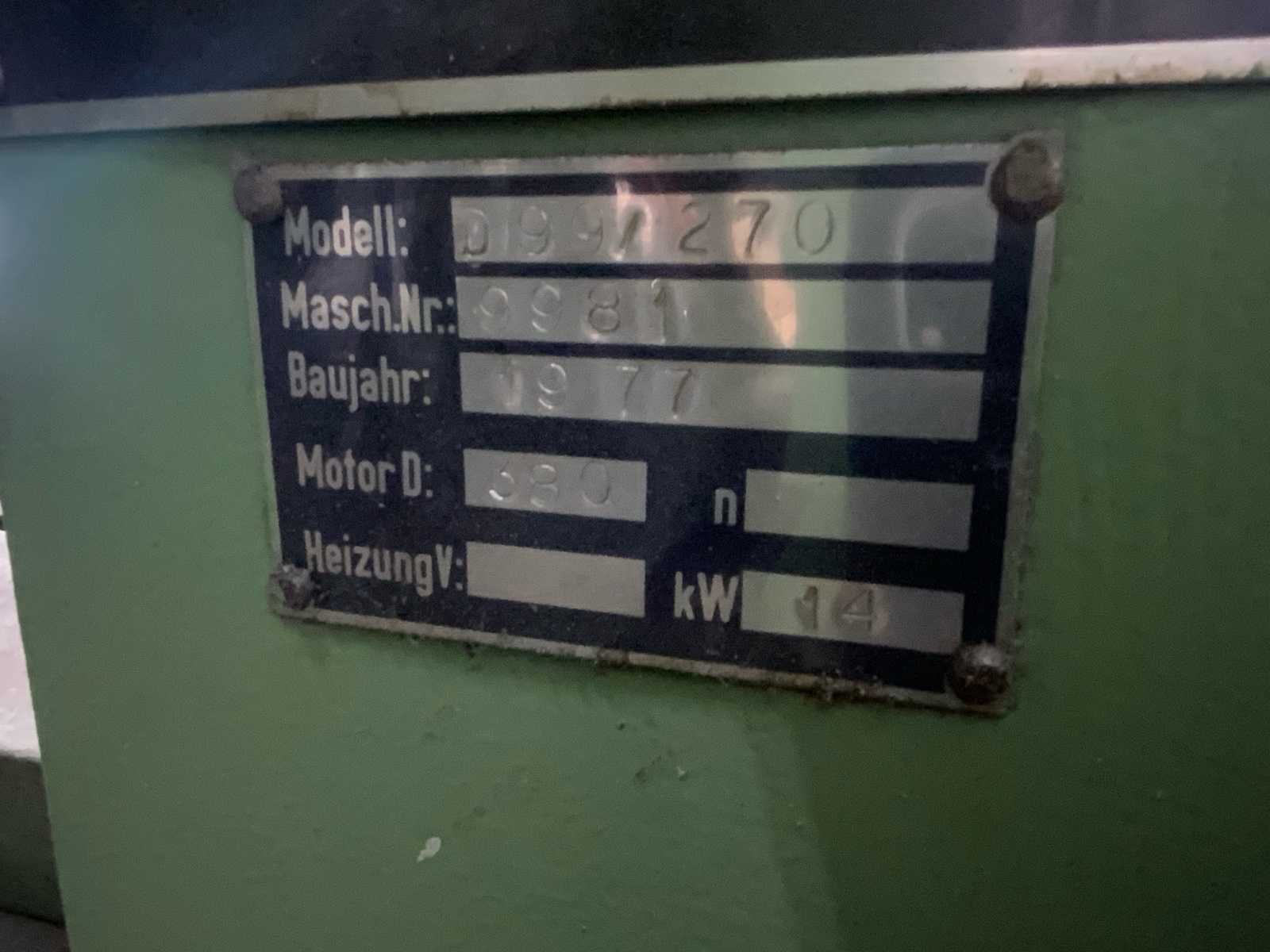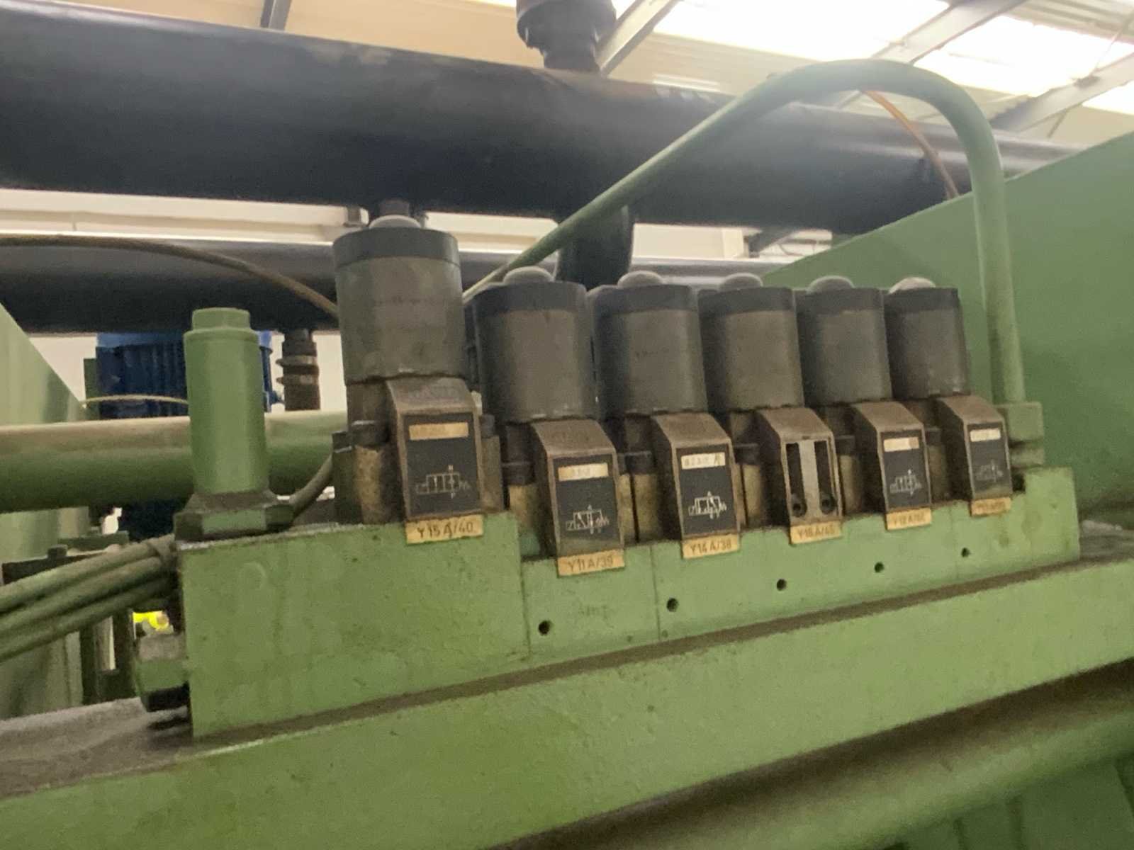 Robuuste industriële hydraulische warmpers voor het verlijmen en persen van fineer, panelen, deuren of multiplex-elementen. * Maximale persdruk: ca. 90 ton * Verwarming: olie- of elektrische verwarming via geïntegreerde platen * max werkstuk hoogte 150mm * vermogen 11Kw * inclusief besturing / pompkast (reeds gedemonteerd maar werkend weggezet) afmeting circa 320x240x460cm (hoogte is demontabel tot circa 235cm) * diverse documentatie aanwezig Nee Merk: Paul Ott KG Type: D99/270 Bouwjaar: 1977 Serienummer: 9981 Max. formaat l: 3200mm Max. formaat b: 1400mm Aantal cilinders: 6 Aansluiting: 380V Machinegewicht: 3500kg Afmeting l: 4500mm Afmeting b: 2750mm Afmeting h: 2500mm Leveringsvoorwaarden: Gratis op vrachtwagen