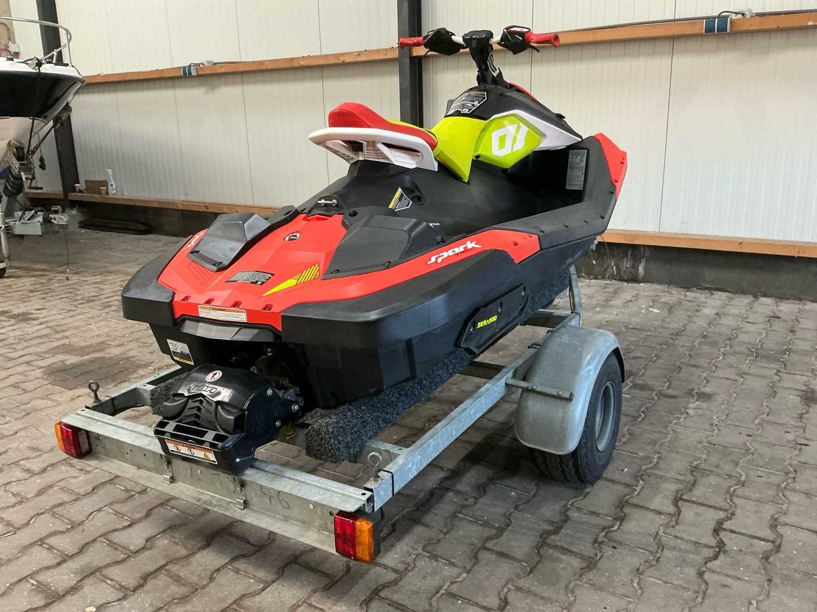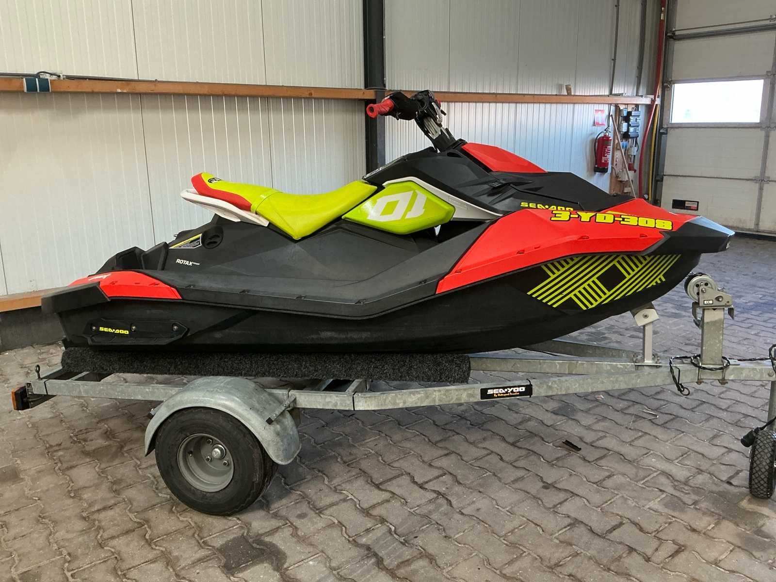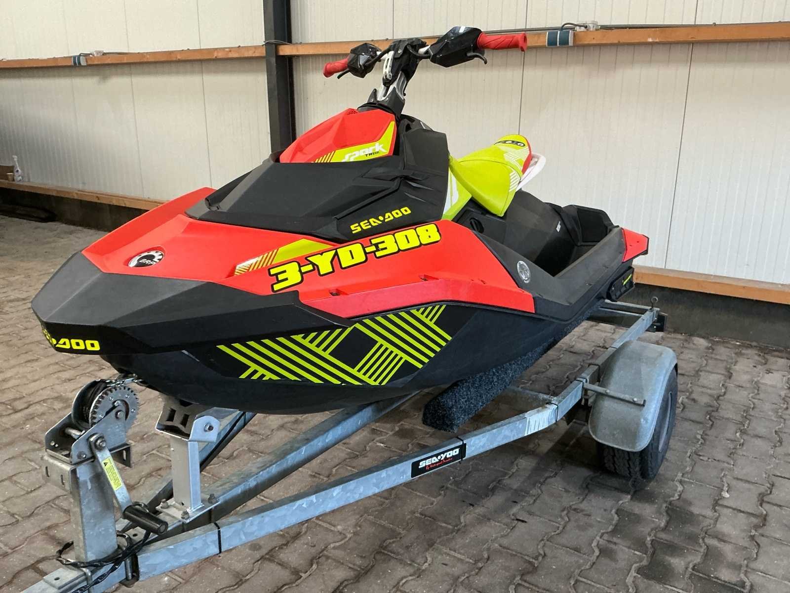 Chassisnummer; CA-YDv108041920 seadoo Voorzien van; Gechipt; Riva uitlaat systeem; Haak; Kenteken. Trailer voorzien van; Enkele as; Verlichting; Takel; Neuswiel. Nee Merk: Seadoo Model: Spark Trix Aantal motoren: 1 Aantal slaapplaatsen: 0 Merk motor: Rotan Brandstof: Benzine Bouwjaar: 2020 Kleur: Rood/ Groen