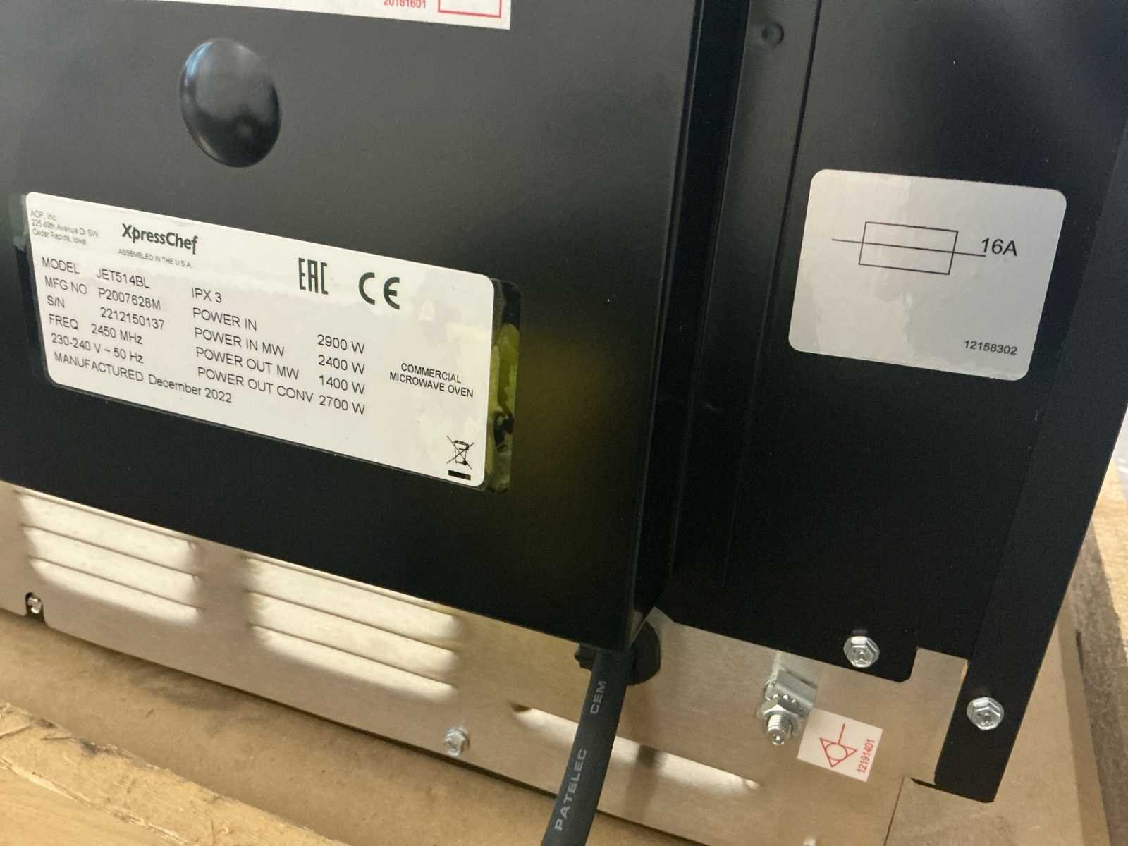 Voorzien van: De XpressChef JET514BL is een professionele 34 liter high-speed combi-magnetron met 1400 W magnetronvermogen, 2700 W convectievermogen, een totaalverbruik van 2900 W, werkend op 230–240 V / 50 Hz, met afmetingen van circa 489 × 676 × 460 mm en een gewicht van ongeveer 50 kg. Nooit gebruikt! Nee Merk: XpressChef Type: JET514BL Materiaal: RVS Digitale besturing: true Serienummer: 2212150137 Aansluiting: 220V Eigen gewicht: 50kg Elektrisch: true Rvs: true Vermogen: 2900kW Totale afmeting L: 60cm Totale afmeting Breedte: 49cm Totale afmeting Hoogte: 47cm Bouwjaar: 2022