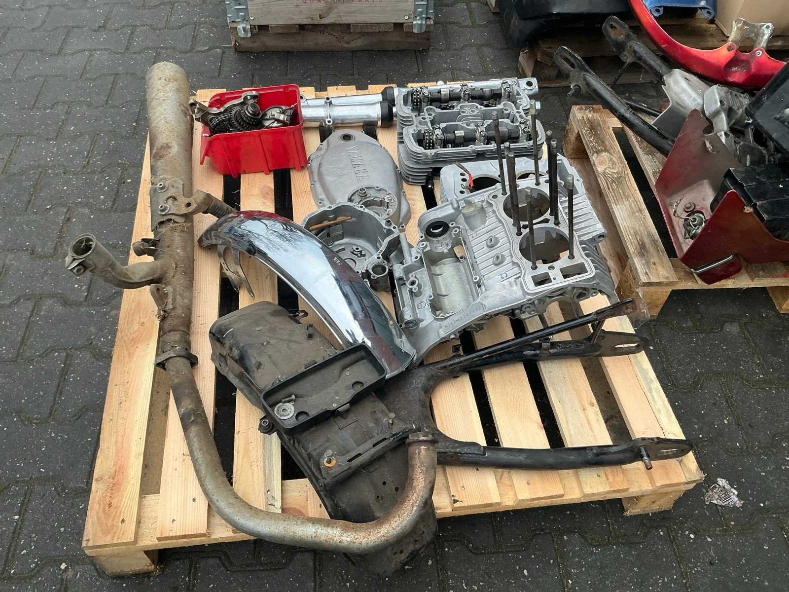 Bestaande uit 2 incomplete Yamaha motoren, 1 Yamaha H2 XS500 frame, diverse losse motor onderdelen o.a buddy seats, tank motorblok onderdelen, uitlaat, kappen, wielen en 4 Yamaha motor blokken. Nee Merk: Yamaha Model: XS 500
