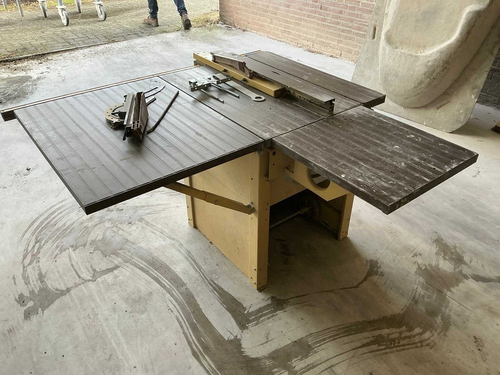 Houtzaag: Scheppach TS2500 Afmetingen houtzaag: L:900 B:700 H: 850 Zaagblad bereik: 180mm Afmetingen afzuigsysteem; L: 3000mm B: 600mm H:1400mm Afmetingen zuiggaten: 500mm en 250mm Afmetingen ventilator: diameter850mm Liftsysteem: delta 901-US - 500KG - aansluiting 230V Nee Merk: Scheppach, Delta, Seipee Product type: Diverse