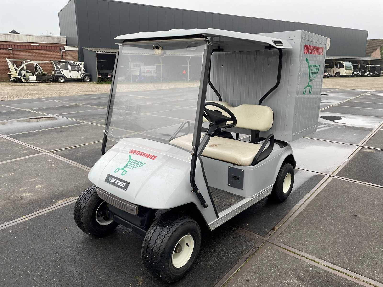 Cm-2 golfkar met: - dichte laadbak met rolluik - 36 volt accupakket - acculader - verlichting rijdt remt en stuurt. Nee Merk: Bringo Type: cm-2 Spanning: 36V Aantal personen: 2 Elektrisch: true Kleur: grijs