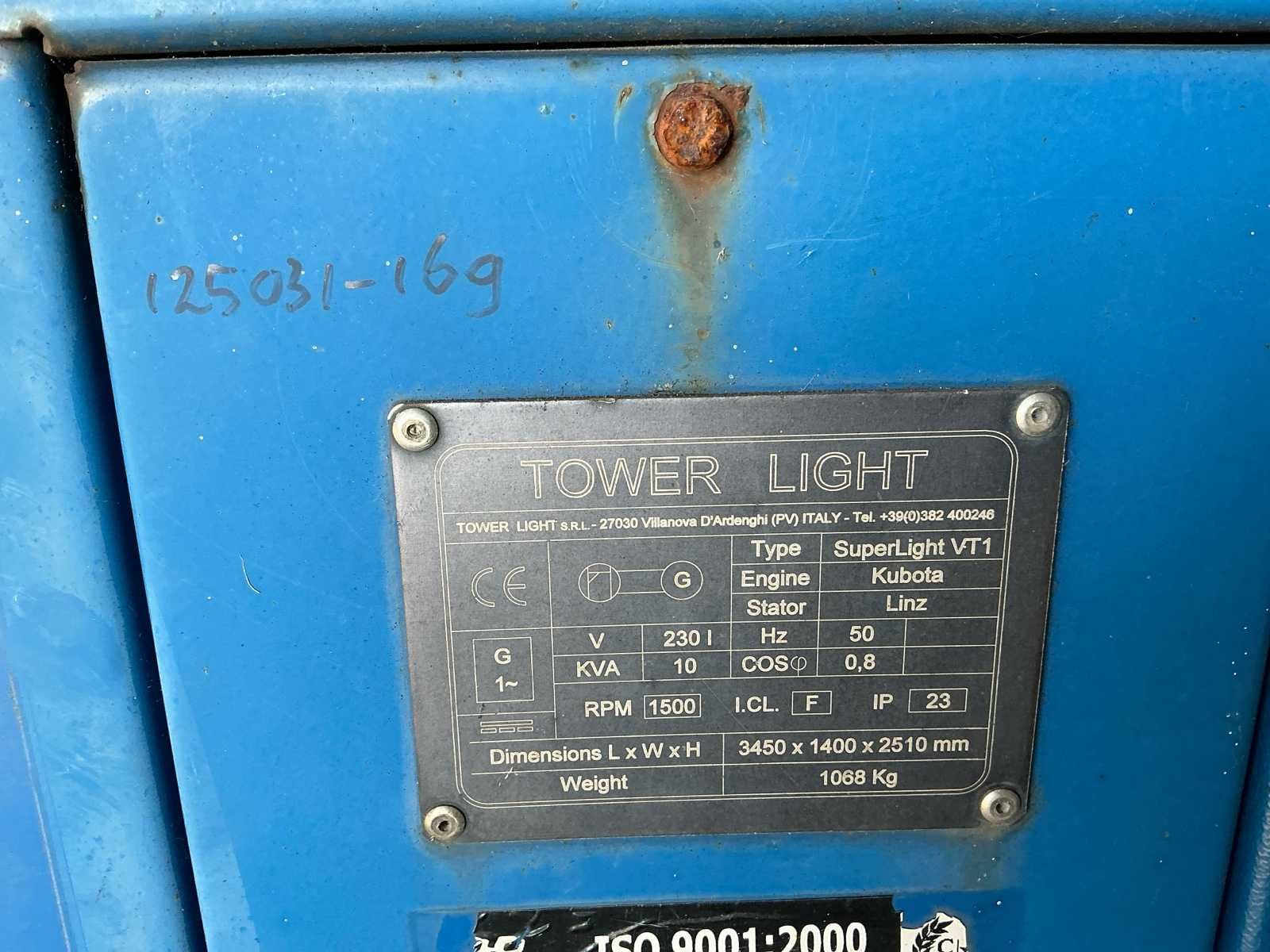 Nee Merk: Tower Light Machinegewicht: 1300kg Totale afmeting L: 3200mm Totale afmeting Breedte: 1300mm Totale afmeting Hoogte: 2900mm
