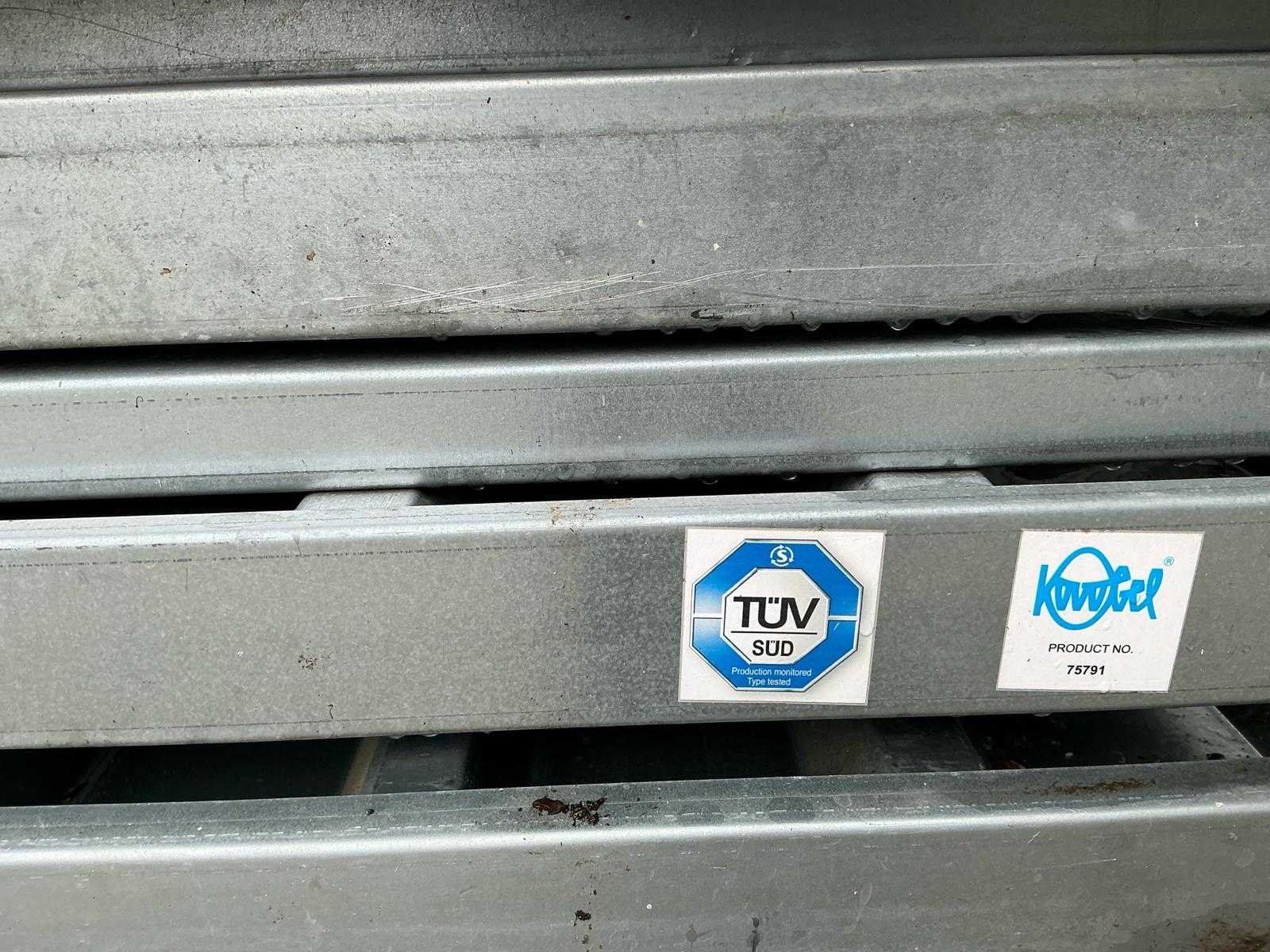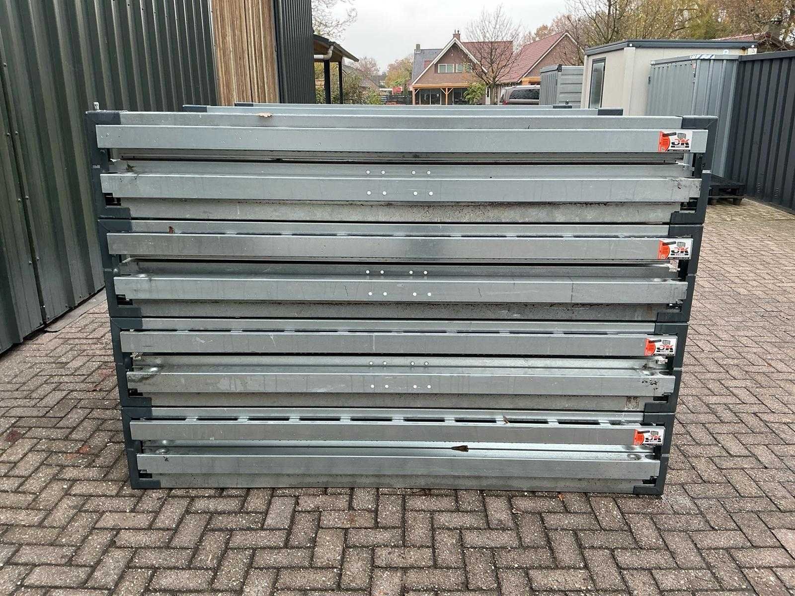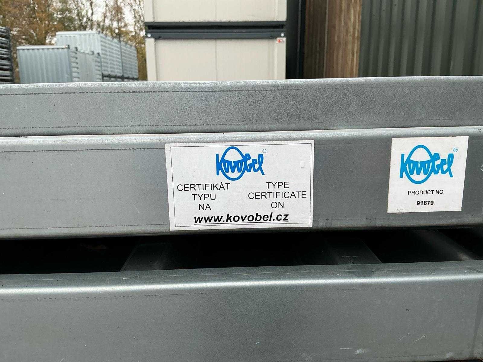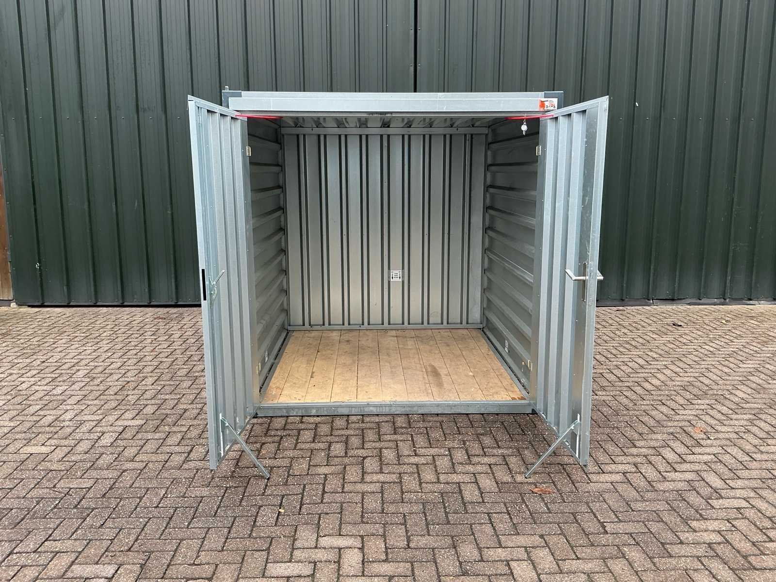 Bestaat uit: 4 stuks unit gedemonteerd, gereed voor transport, voorzien van: dubbele deur, afsluitbaar, 3 sleutels, deurstopper, windvanger voor deur, houten vloer, 0,75 gegalvaniseerd plaatstaal, ondersteuningskolomen zijn gemaakt van 2,0mm gegalvaniseerd staal, vloer is gemaakt van 35mm dik vurenhouten delen voorzien van mes groef verbinding, opening dubbele deur 1930×1930, binnenbreedte 2000 mm, binnenlengte 2070 mm, binnenhoogte 2000 mm, buitenbreedte 2200 mm, buitenlengte 2250 mm, buitenhoogte 2200 mm, deurtype dubbele deur, deurpositie In front, afwerking staal gegalvaniseerd. No Merk: Kovobel Type: 2.25x2.20 Serienummer: 91879-98497-75791-98443 Opslagcontainer: true