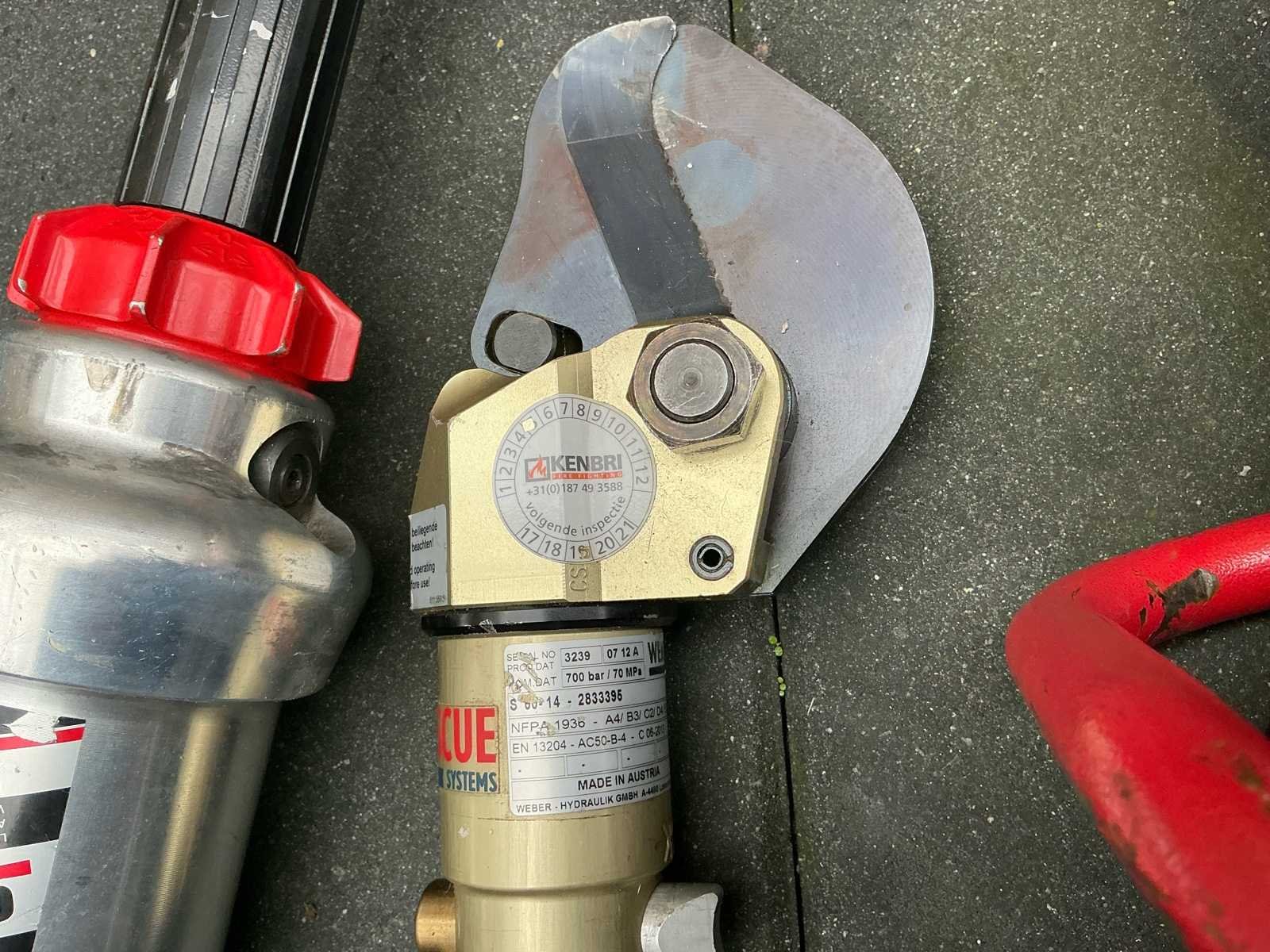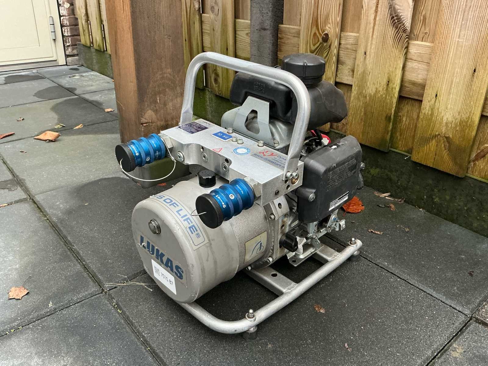 Set bestaat uit: - hydraulische benzine pomp, merk: Honda, Jaws of life, Lukas. Type: P620SG. Gewicht: 28,3 kg. Reservoir: 3,5L. Bouwjaar: 2009. - hydraulische drukpers, merk: Lukas. Type: LTR12/875 EN. Bouwjaar: 2004. Gewicht: 21,1 kg. Ingeschoven: 63cm, uitgeschoven: 150cm. - hydraulische knipschaar, merk: Lukas. Type: LS 501 EN. - hydraulische knipschaar, merk: Weberrescue. Type: NFPA 1936. Bouwjaar: 2013. - hydraulische spreider, merk Lukas. Type: LSP 40 EN. Motor voor het laatst gekeurd: 2023. De rest voor het laatst gekeurd: 2021. Nee Merk: Lukas