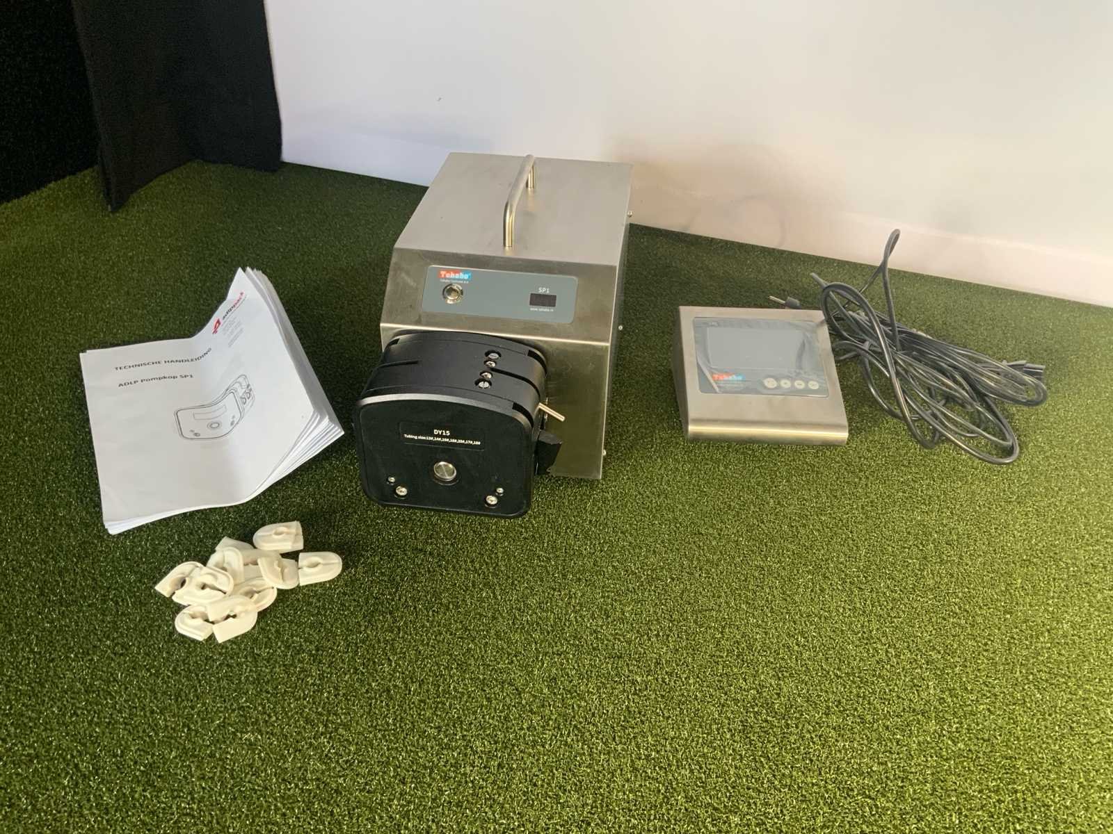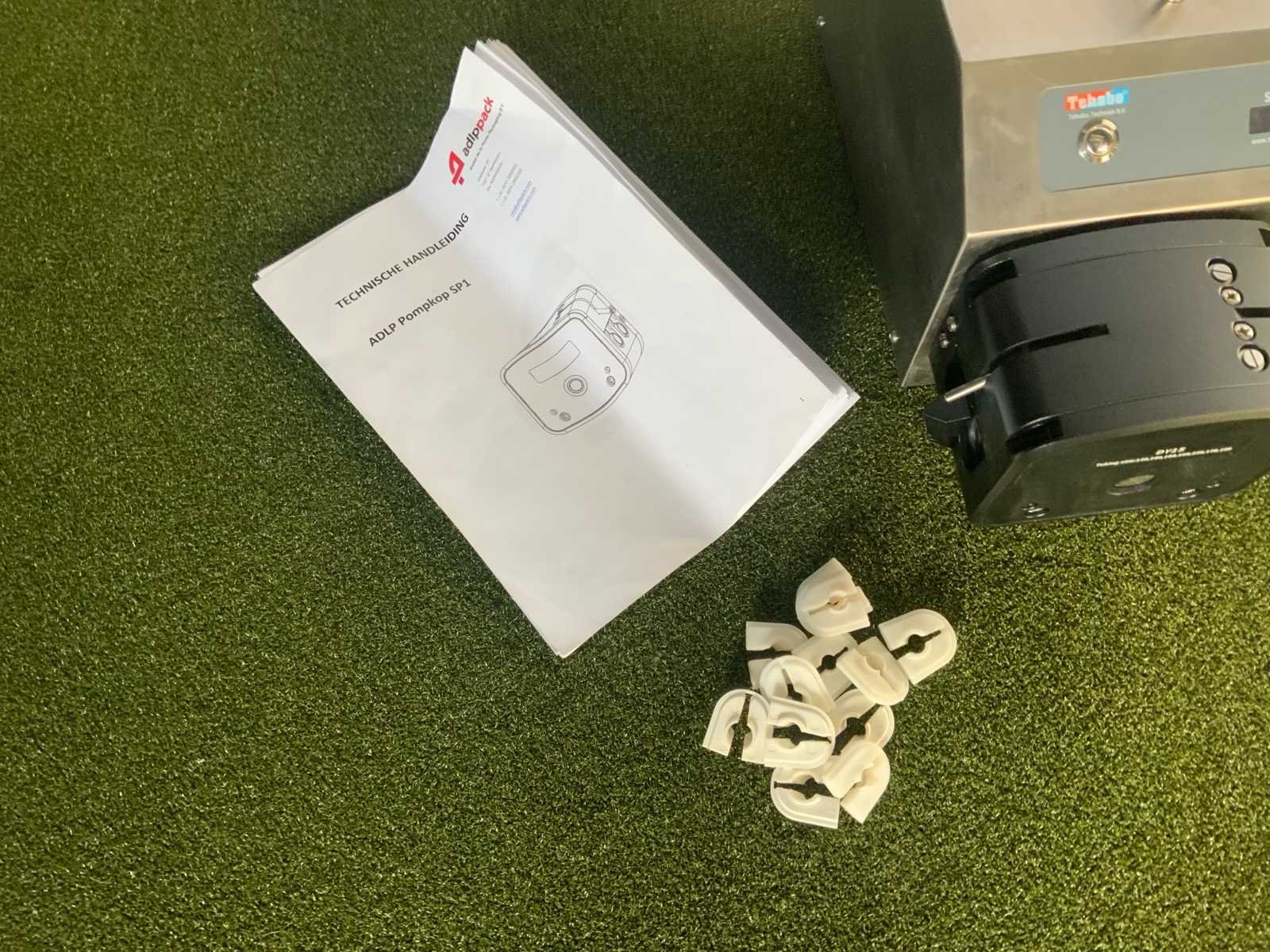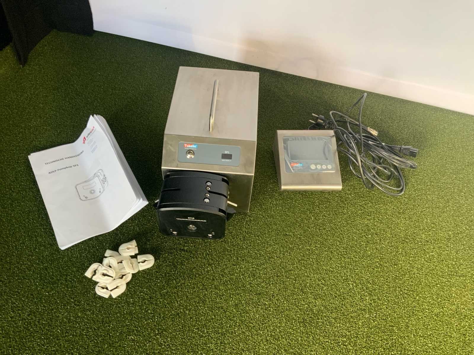 De SP1 peristaltische pomp is een uitermate geschikte doseerpomp voor het verpompen van vloeistoffen. De peristaltische pomp wordt aangedreven door een servomotor en is uitgevoerd met een fase-verschoven dubbel rollersysteem. Hierdoor wordt de pulserende werking van de pomp geminimaliseerd en wordt er uiterst nauwkeurig gedoseerd. De doseerpomp is ideaal voor het afvullen van kleine volumes. Via de controller met 4.3” touchscreen kunnen naar wens tot 16 doseerpompen worden aangesloten. De peristaltische pomp wordt veelal ingezet voor het afvullen van vloeistoffen in de farma, cosmetica en foodsector. Voor integratie van het doseersysteem in een automatische installatie is een standaard interface voorzien. De voordelen van deze machine zijn: • Compact en eenvoudig in gebruik. • Weinig en eenvoudig onderhoud. • Lage aanschafkosten, korte terugverdientijd. • Universeel inzetbaar. Nee Merk: SP1 Leveringsvoorwaarden: Niet gefundeerd - onverpakt