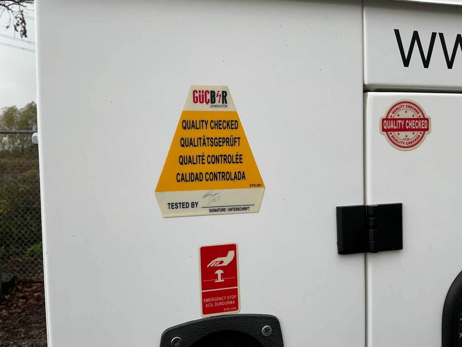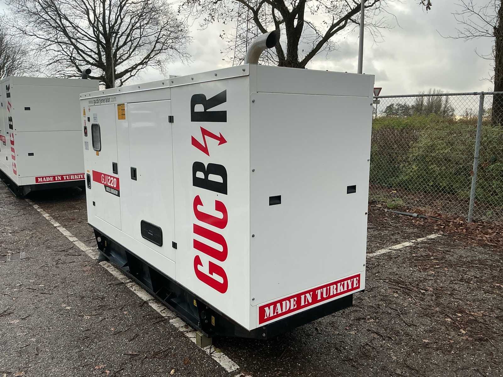 WATER COOLED THREE PHASES 50 HZ DIESEL generator, type GI220, uitgerust met IVECO NEF67TM7 motor en Maranello M220 alternator. Geproduceerd volgens ISO 9001 kwaliteitsnormering en voorzien van EC-markering conform 2006/42/EC – 2014/30/EU – 2014/35/EU – 2000/14/EC – 97/68/EC. Prime Power 200 kW / 220 kVA en Standby Power 176 kW, 1500 rpm, 400/230V, 0,8 Cos Phi. Motor is 4-takt diesel, turbocharged en aftercooled, met 6 cilinders, boring 104 mm, slag 132 mm en 6,7 liter motorinhoud. Brandstofverbruik: 15 l/h bij 50% load, 17,2 l/h bij 80% load, 42 l/h bij 100% load en 47,5 l/h bij standby. Oliecapaciteit 15 liter en koelvloeistofinhoud 12 liter, mechanische governor. Alternator voorzien van automatische spanningsregeling (AVR) type SX460, 12-draads, 2/3 winding, IP23 isolatieklasse H. G2 load acceptance conform ISO 8528-5:2013 en referentiecondities volgens ISO 8528-1:2005. Afmetingen open set: 2600×1100×1900 mm, gewicht 370 kg, brandstoftank 370 liter. Afmetingen canopied: 3500×1100×2200 mm, gewicht 370 kg, brandstoftank 370 liter. Geluidsarme canopy met gegalvaniseerd staal, poedercoating, roestvrijstalen scharnieren, noodstop en hijspunten. Uitgerust met DeepSea 7320 of ComAp AMF9/AMF25 besturingseenheid. Nee Merk: GUCBIR Type: GJI220 Bouwjaar: 2023 Serienummer: GJ10043194 Capaciteit.: 220kVA Aansluiting: 400V Motor merk: FPT (Iveco) Motorcapaciteit: 195kW Generator merk: Maranello Generator type: M220 Generator capaciteit: 160A Afgelezen urenstand: 0 Machinegewicht: 2000kg Totale afmeting L: 2600mm Totale afmeting Breedte: 1100mm Totale afmeting Hoogte: 1900mm GS Code: 85021310 Leveringsvoorwaarden: Geladen op vrachtwagen