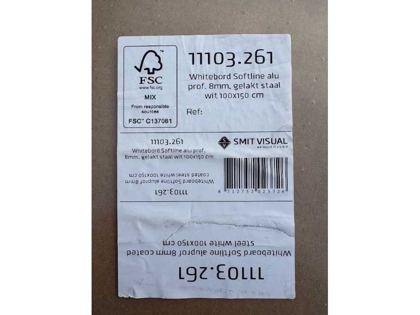 Gelakt staal, Magnetisch, Aan 1 kant beschrijfbaar. Artikelnummer 11103.261. Nee Merk: Smit Visual Kleur: Wit Gewicht: 16kg Breedte: 150cm Hoogte: 100cm