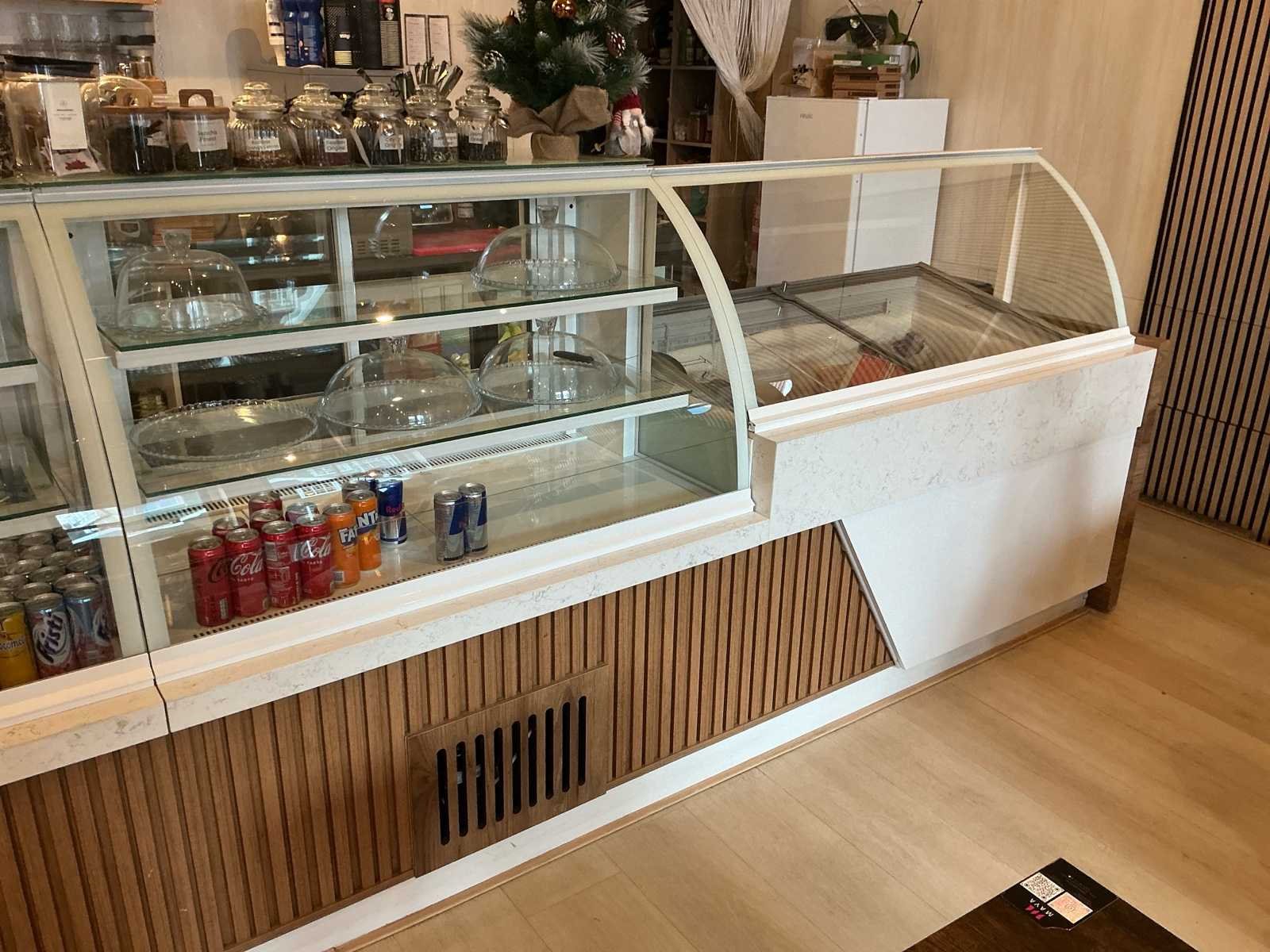 Voorzien van een dubbele koel compressor. LED-verlichting zowel binnen als buiten. TAART VITRINE UNIT 120*90*135 -VLOER+2 ETAGE -AFMETINGEN TUSSEN ETAGES 25 CM -ACHTERKANT MET GLAZEN SCHUIF DEUREN CROSANT UNIT : -VLOER+2 ETAGE -150*90*135 -AFMETINGEN TUSSEN ETAGES 25 CM -ACHTERKANT VAN DE UNIT IS OPEN -GEKOELD KASSA UNIT: -70 CM SCHEPIJS UNIT : -84 CM BREED ,4/6 KUIPJES Nee Bouwjaar: 2024 Ingebouwde koelcompressor: true Temperatuurbereik max.: 8°c Aansluiting: 220V Temperatuurbereik min.: 3°c Totale afmeting L: 820mm Totale afmeting Breedte: 4900mm Totale afmeting Hoogte: 1355mm