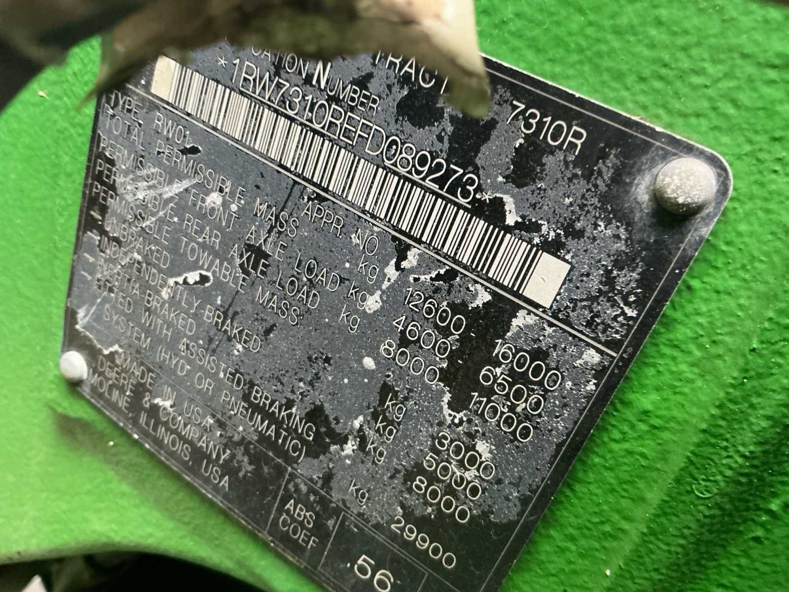 Autopowr 50 km/u, Autotrac Ready, TLS, Luchtremmen, 6-cilinder, 310pk, achterhef. Nee Merk: John Deere Type: 7310 R Bouwjaar: 2016 Motorvermogen (kW): 228kW Afgelezen urenstand: 7884 Versnellingsbaktype: Autopower Aantal hydraulische ventielen voor: 1 Aantal hydraulische ventielen achter: 4 Bandenmaat voor: 600/70R30 Bandenmaat achter: 650/85R38 Load sensing: true Fronthefinrichting: true Cabine: true Luchtgeveerde stoel: true Totale afmeting L: 5500mm Totale afmeting Breedte: 2650mm Totale afmeting Hoogte: 3350mm Chassisnummer: RW7310REFD089273 Zelf rijdend exporteren: Mogelijk
