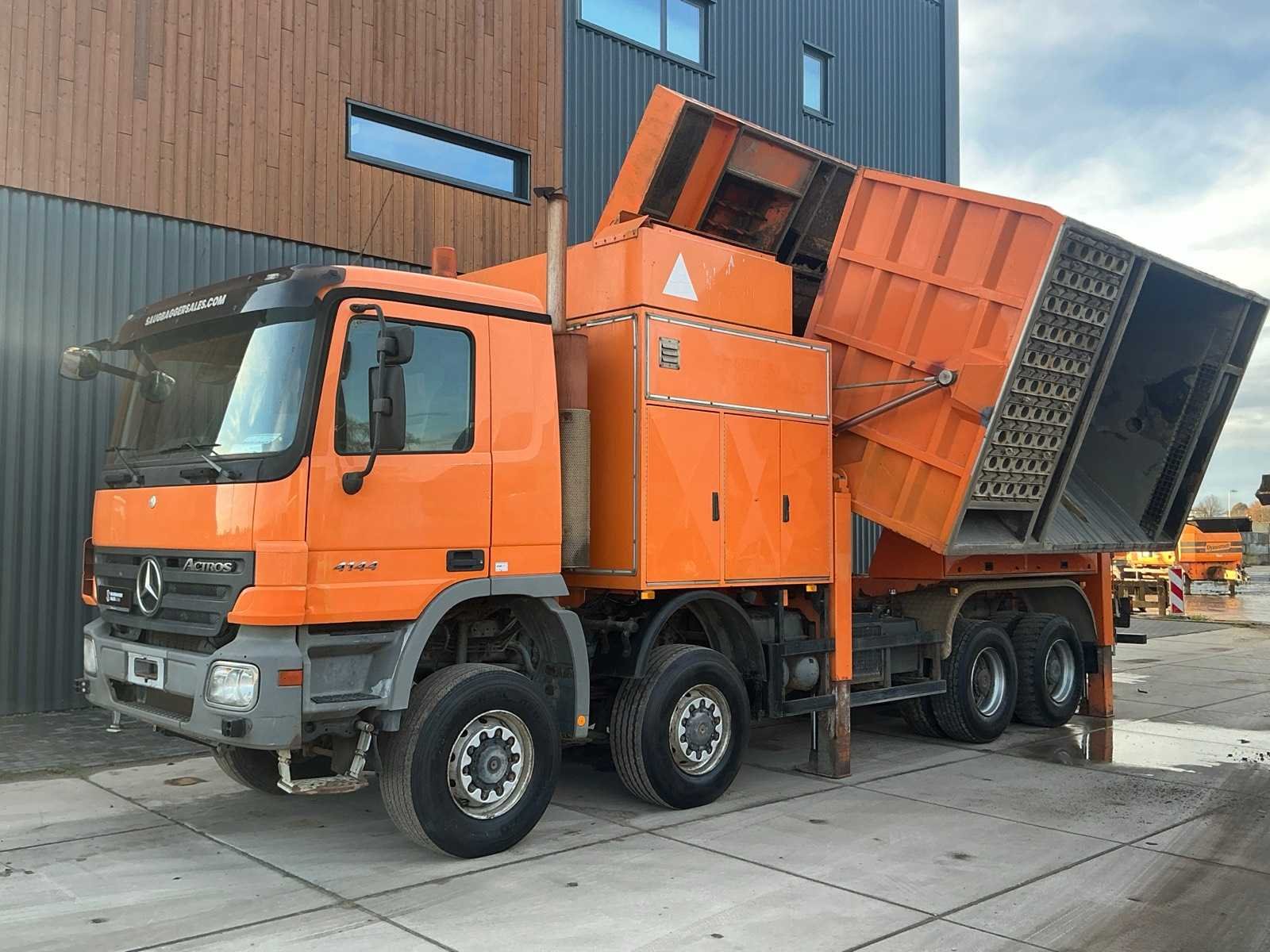 RSP zuigopbouw; type: RSP-ESE 32/8-DV-K; bouwjaar 2006: S/N: 20612211; afgelezen urenstand ca. 4490uur; zijwaarts kiepend; RVS container; radiografisch bestuurbaar; hydraulisch bedienbare zuigarm; hogedruk spuit met Honda benzinemotor; hydrostatische aandrijving; kracht arm; 2 hydraulische steunpoten; luchtaansluiting achter; RVS bak inhoud: 8m3, 2x turbine compressor, bandenmaat: 315/80 R22.5; grondzuigauto; suction excavator; saugbagger No Kenteken: 55-BFX-5 Merk: Mercedes-benz Type: 414F Bouwjaar: 2006 Chassisnummer VIN: WDB9323361L167500 Cilinderinhoud: 11946cc Kilometerstand bij opname: 161195km APK vervaldatum: 2021-04-25 Datum eerste toelating: 2006-12-13 Datum eerste toelating (NL): 2015-04-24 Type transmissie: Automatisch Aantal assen: 4 Asconfiguratie: 8x8 Fuel Type: Diesel Laadvermogen: 9100kg Aantal sleutels: 1 Emissieklasse: 4 Eigen gewicht: 23000kg Totale afmeting L: 9600mm Totale afmeting Breedte: 2500mm Totale afmeting Hoogte: 3650mm Startinformatie: Ja Nationaliteit documenten: NL Kentekenpapieren compleet?: true Aantal zitplaatsen: 2 Automaat: true Diesel: true