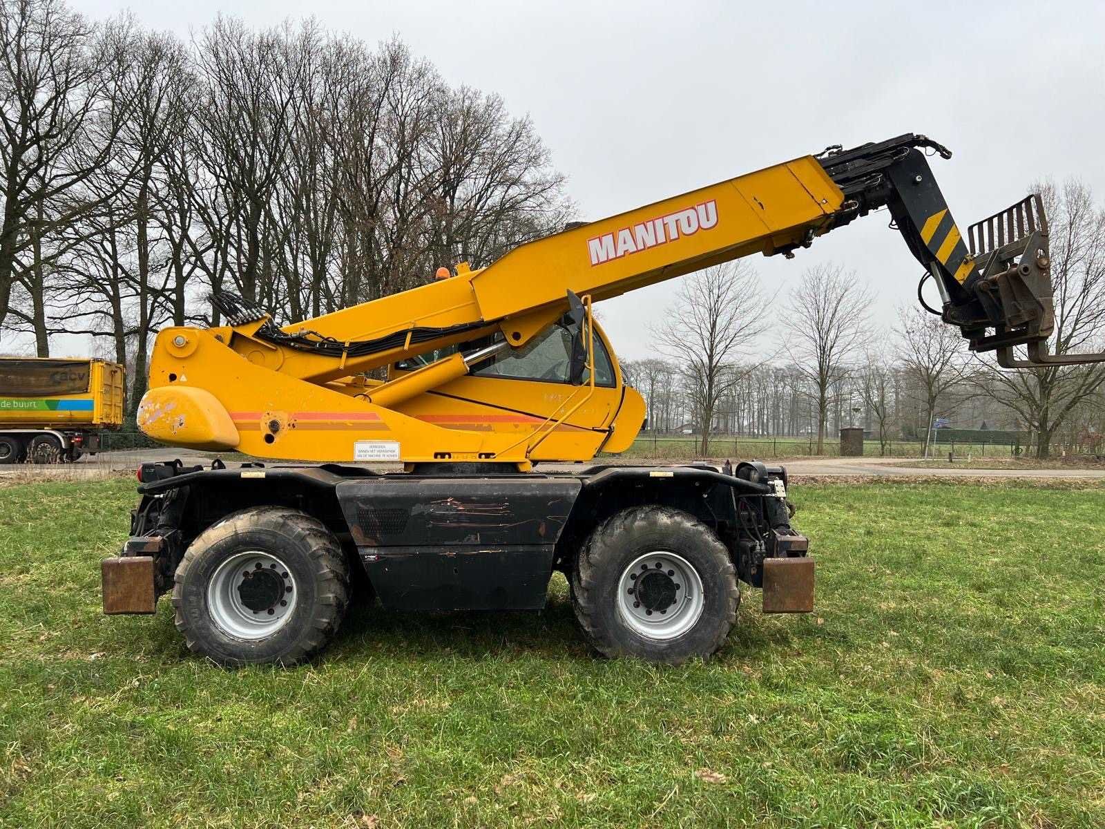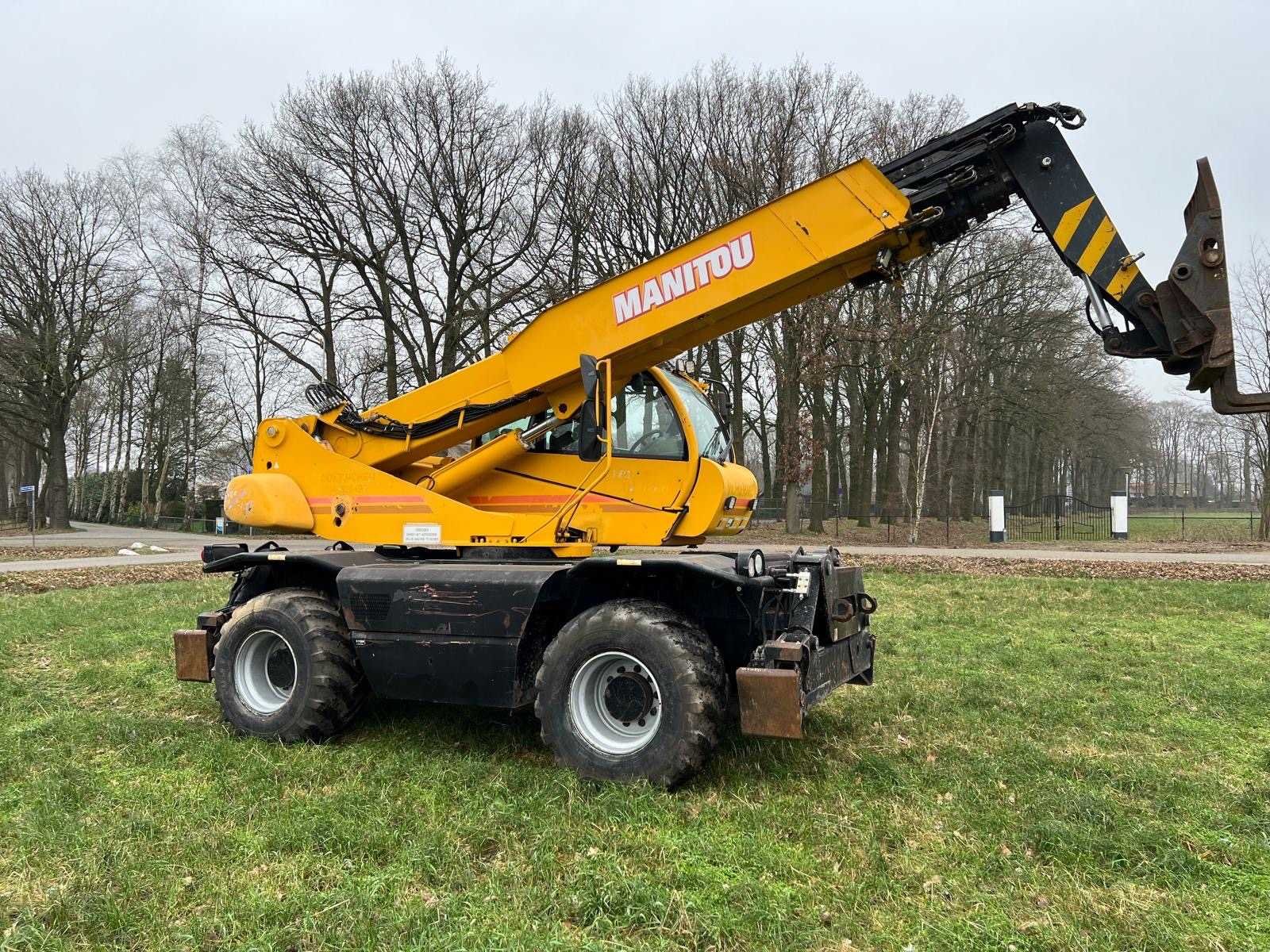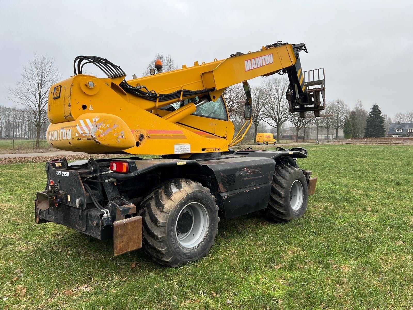 Werkend No Merk: Manitou Type: MRT 2150 Privilege Roterende Verreiker Bouwjaar: 2008 Kenteken: TLL-95-F Motorvermogen (kW): 110kW Hefhoogte: 20600mm Cabine: true Vierwielaandrijving 4x4: true Hydraulisch verstelbare lepels: true Luchtbanden: true Afgelezen urenstand: 19092 Eigen gewicht: 16090kg Totale afmeting L: 8070mm Totale afmeting Breedte: 2490mm Totale afmeting Hoogte: 3050mm