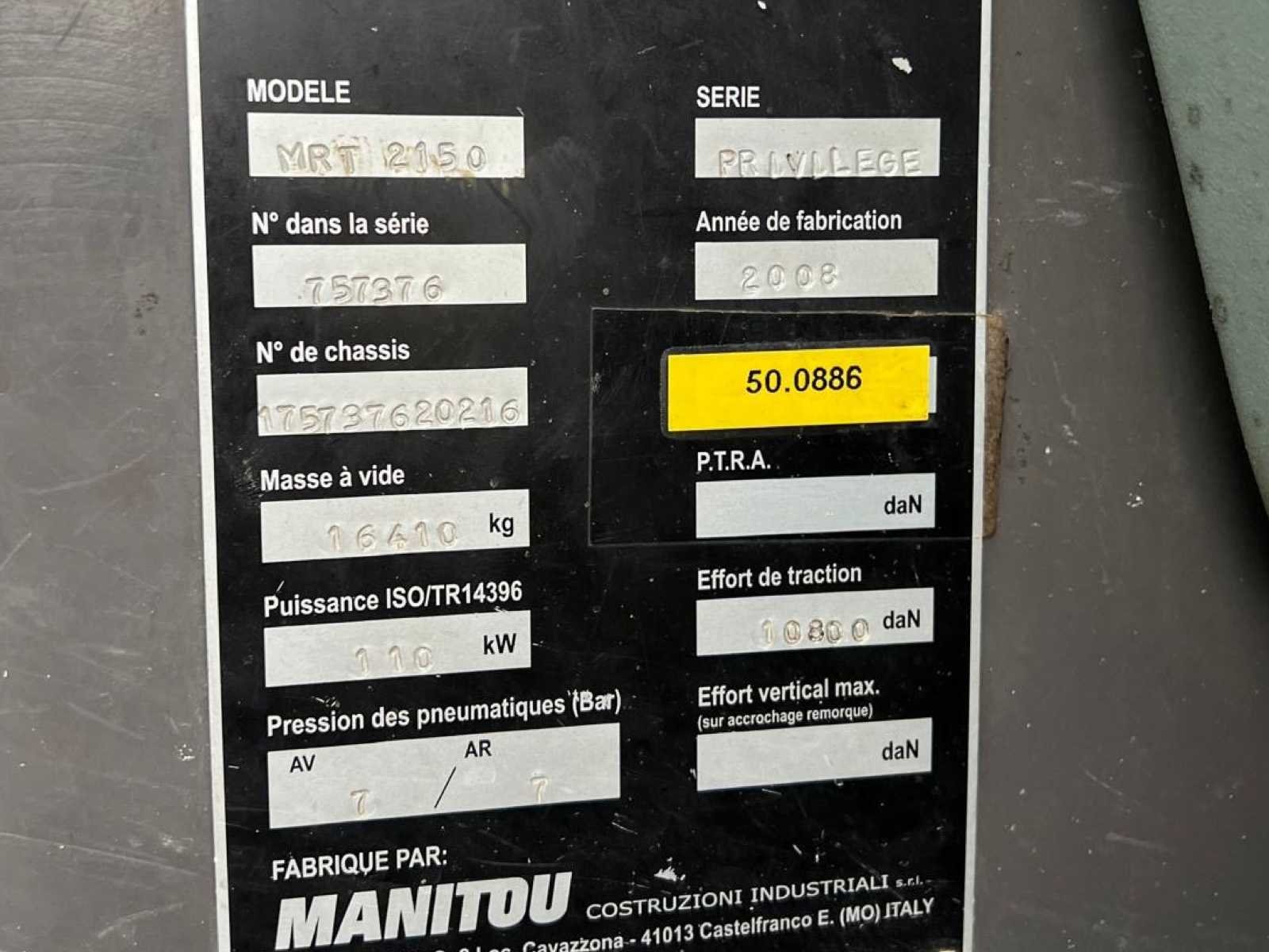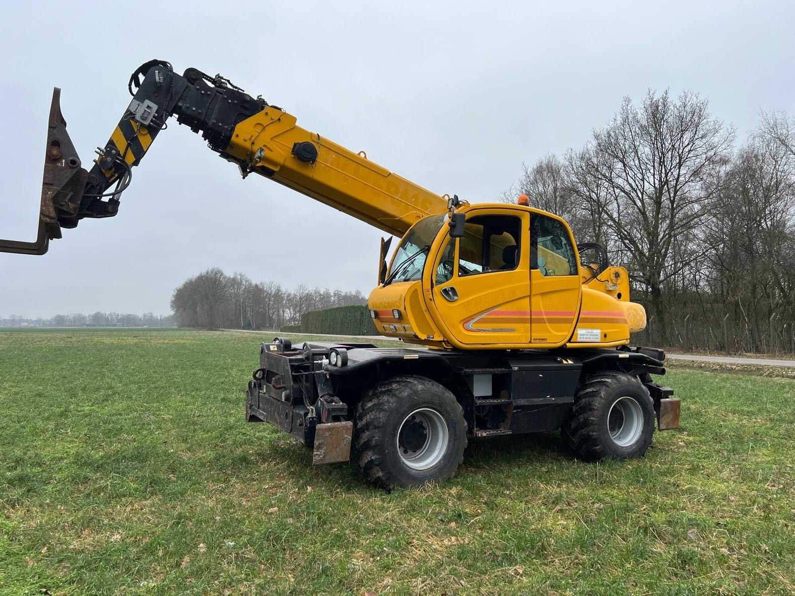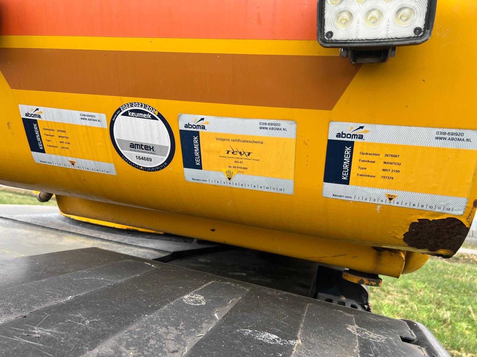 Werkend No Merk: Manitou Type: MRT 2150 Privilege Roterende Verreiker Bouwjaar: 2008 Kenteken: TLL-95-F Motorvermogen (kW): 110kW Hefhoogte: 20600mm Cabine: true Vierwielaandrijving 4x4: true Hydraulisch verstelbare lepels: true Luchtbanden: true Afgelezen urenstand: 19092 Eigen gewicht: 16090kg Totale afmeting L: 8070mm Totale afmeting Breedte: 2490mm Totale afmeting Hoogte: 3050mm