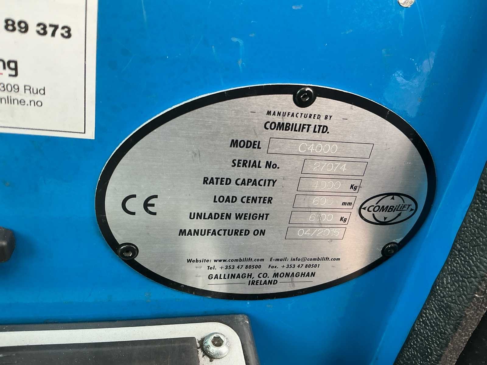 Nee Merk: Combilift Type: C4000 Bouwjaar: 2015 Serienummer: 2707A Diesel: true Hefvermogen: 4000kg Lepellengte: 1150mm Afgelezen urenstand: 7438 Eigen gewicht: 6100kg Totale afmeting L: 2450mm Totale afmeting Breedte: 2300mm Totale afmeting Hoogte: 2650mm