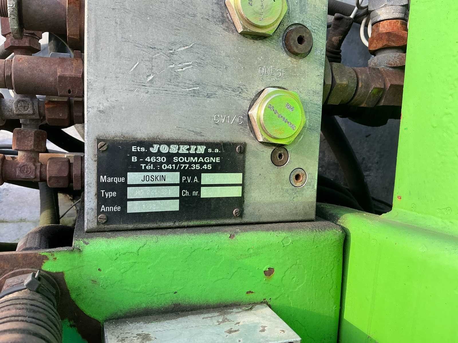 Type bemester 6880/32SDH. Tankinhoud: 10000 Liter. Beschikt over K80 trekhaak, hydraulische remmen, vredo voorsnijkast, afgifteregelaar, elektrische bedieningskast, neerklapbeveiliging, hydraulische poot, groothoekaftakas, overstroombeveiliging. Mesttank komt uit 1997, Bemester komt uit 2015. Nee Merk: JOSKIN Type: 10000ES Bouwjaar: 2015 Kenteken: LKN78H Tankinhoud: 10m³ Met onderstel: true Bandenmaat: 66x43.00-25NHS Type pomp: Worm Hefinrichting: true Doseercomputer: true Totale afmeting L: 8500mm Totale afmeting Breedte: 7000mm