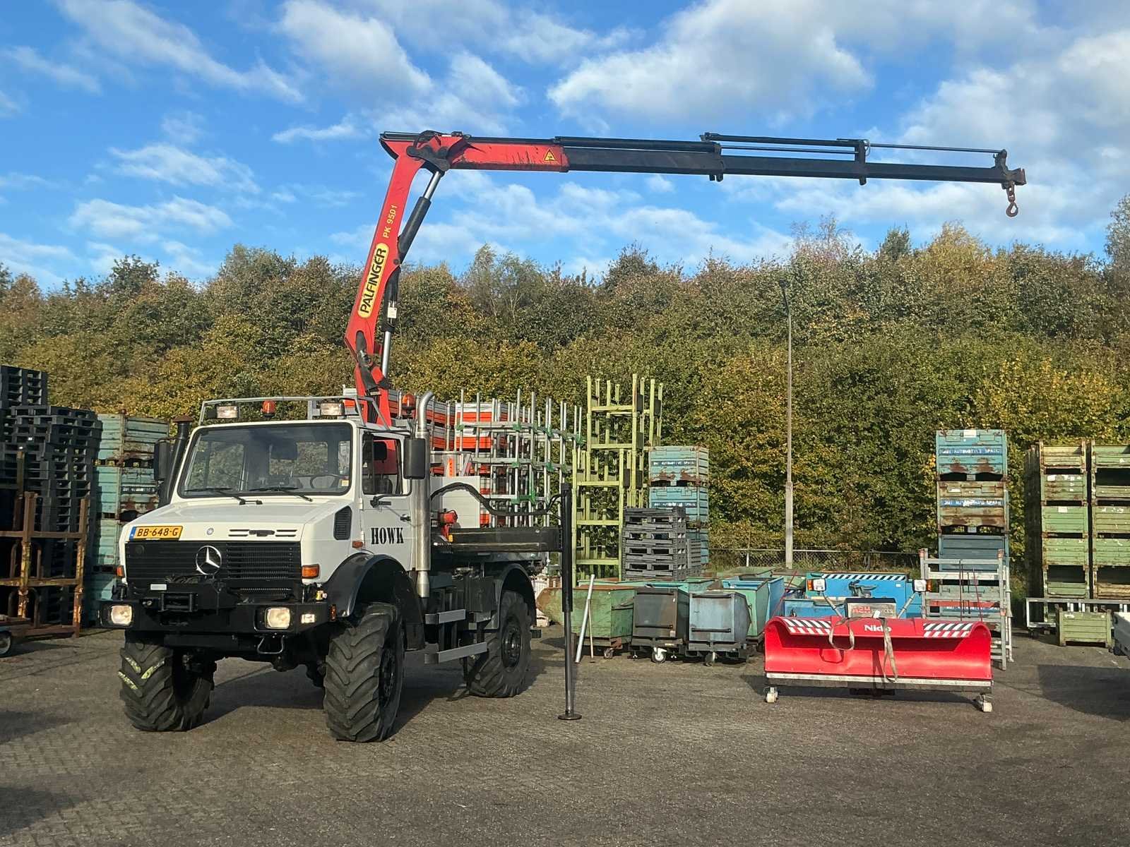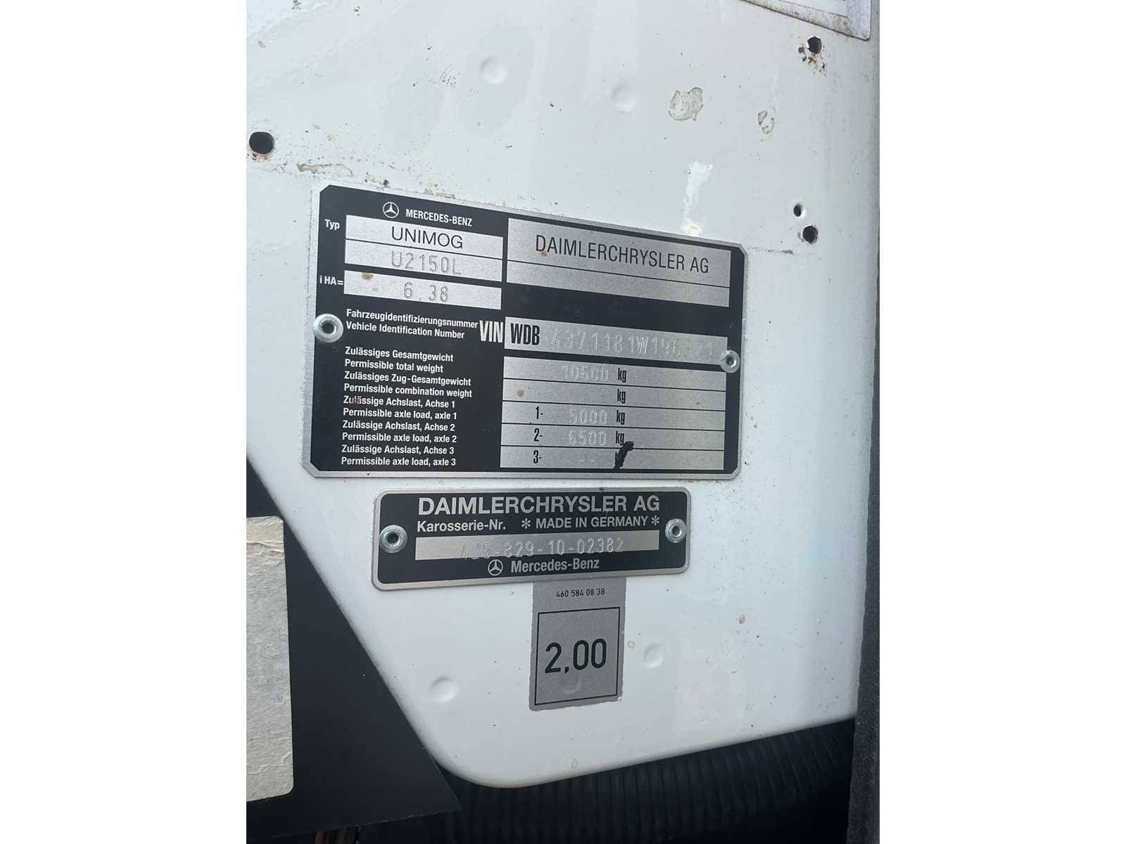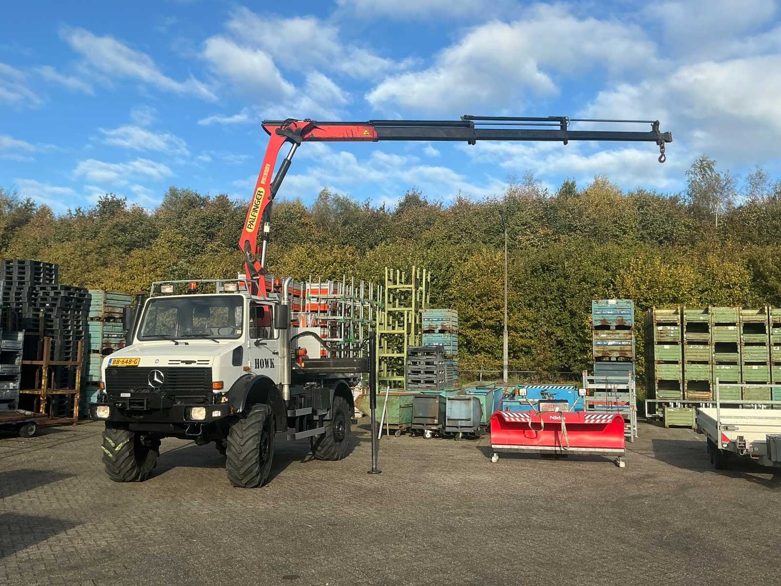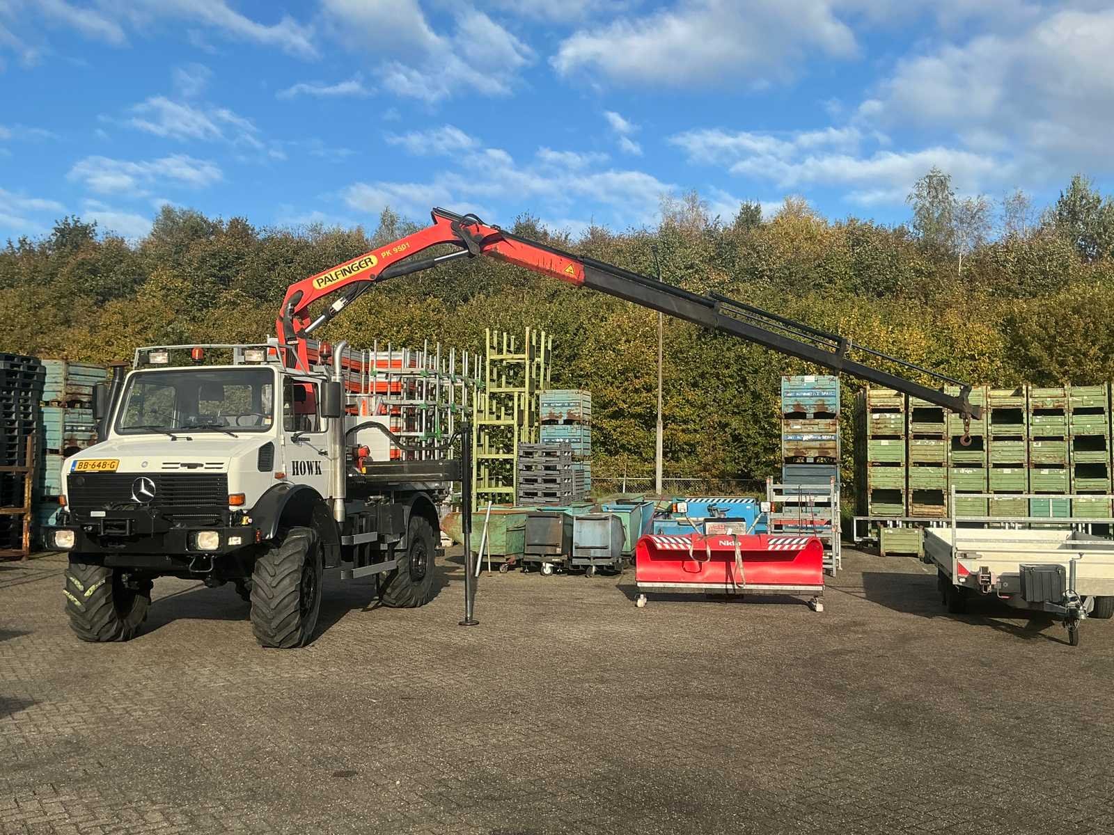 Goed rijdende Unimog met Palfinger PK9501 autolaad kraan (bouwjaar 2000) met afstandsbediening. Voorzien van hoogwerker bak. APK 17-4-2026 Nee Kenteken: BB-648-G Merk: Mercedes-benz Type: Unimog 437 U2150L Bouwjaar: 2002 Chassisnummer VIN: WDB4371181W196321 Cilinderinhoud: 5958cc Kilometerstand bij opname: 242478km APK vervaldatum: 2026-04-17 Datum eerste toelating: 2002-06-30 Datum eerste toelating (NL): 2021-12-10 Type transmissie: Geschakeld Aantal assen: 2 Fuel Type: Diesel Laadvermogen: 2297kg Aantal sleutels: 1 Emissieklasse: 3 Laadkraan: true Eigen gewicht: 8403kg Startinformatie: Start en rijdt Nationaliteit documenten: NL Aantal zitplaatsen: 2 Diesel: true