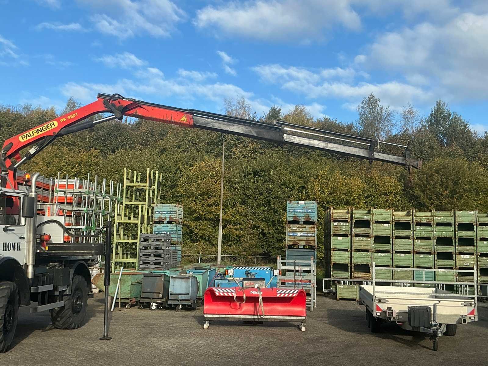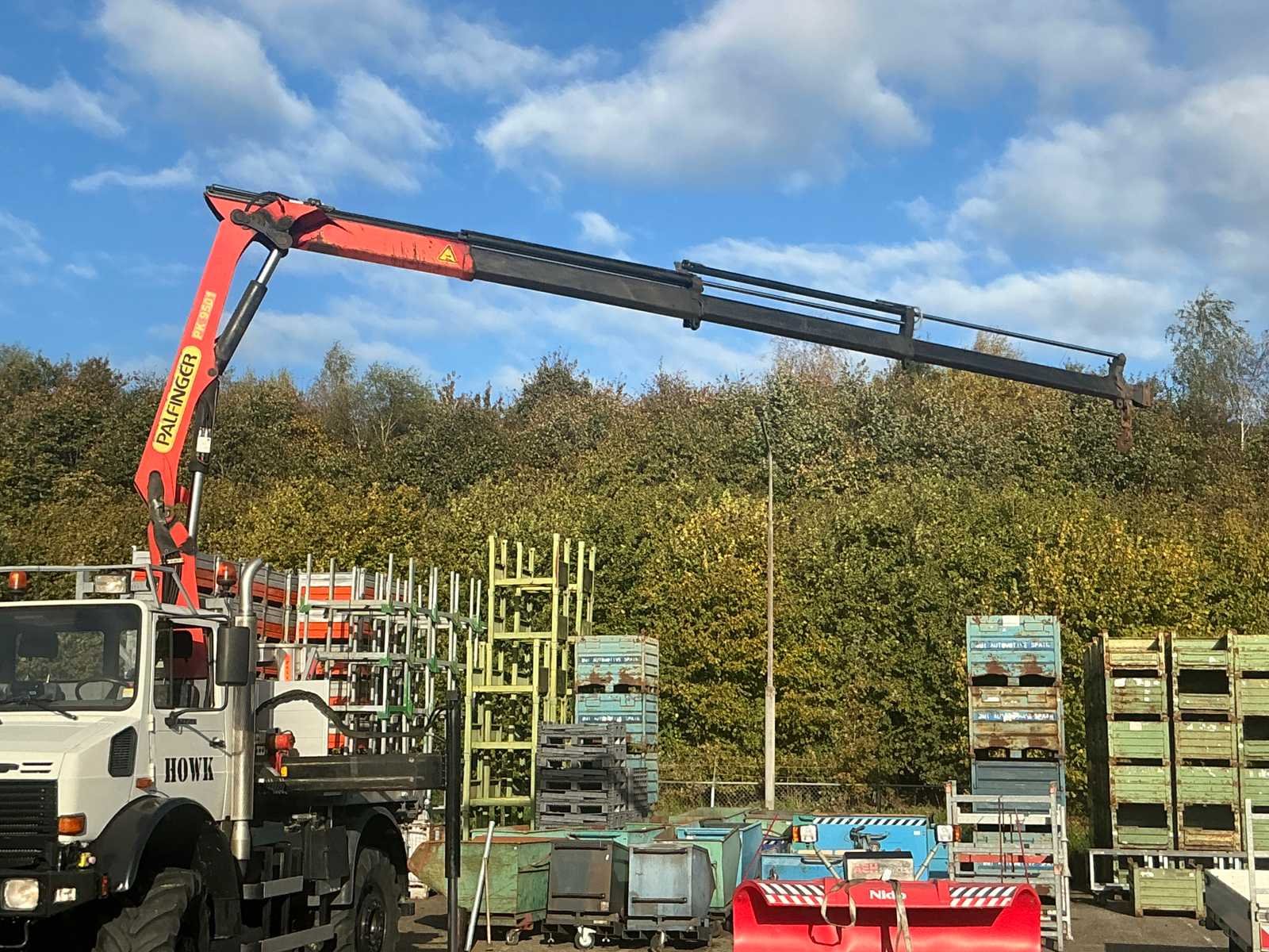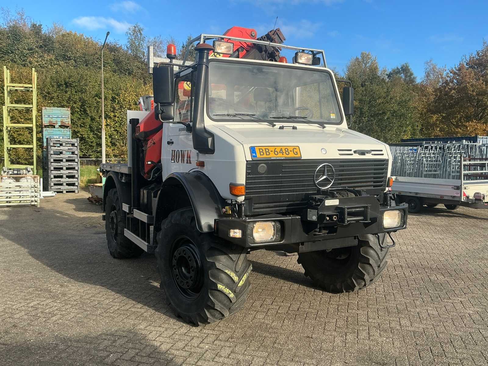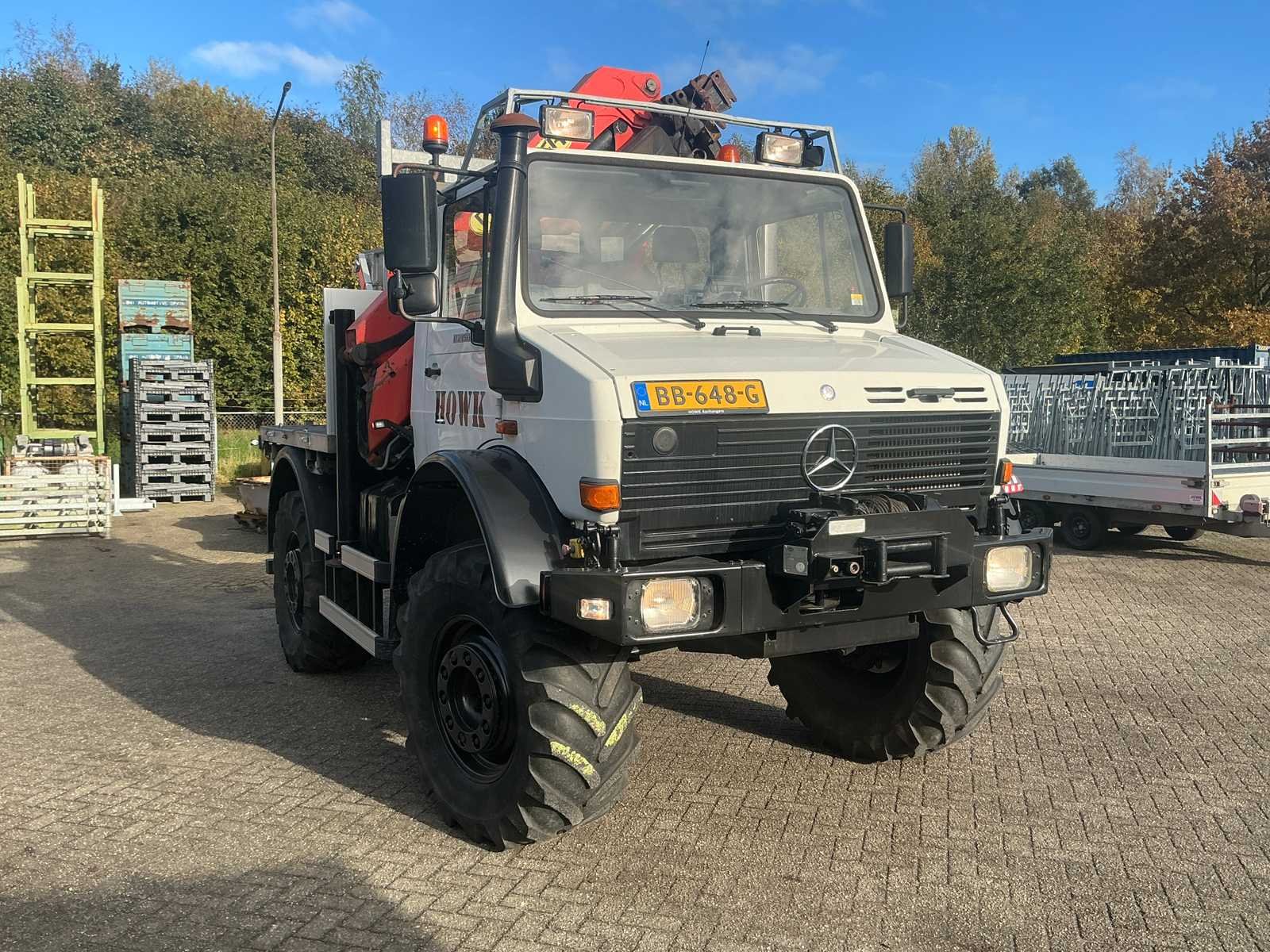 Goed rijdende Unimog met Palfinger PK9501 autolaad kraan (bouwjaar 2000) met afstandsbediening. Voorzien van hoogwerker bak. APK 17-4-2026 Nee Kenteken: BB-648-G Merk: Mercedes-benz Type: Unimog 437 U2150L Bouwjaar: 2002 Chassisnummer VIN: WDB4371181W196321 Cilinderinhoud: 5958cc Kilometerstand bij opname: 242478km APK vervaldatum: 2026-04-17 Datum eerste toelating: 2002-06-30 Datum eerste toelating (NL): 2021-12-10 Type transmissie: Geschakeld Aantal assen: 2 Fuel Type: Diesel Laadvermogen: 2297kg Aantal sleutels: 1 Emissieklasse: 3 Laadkraan: true Eigen gewicht: 8403kg Startinformatie: Start en rijdt Nationaliteit documenten: NL Aantal zitplaatsen: 2 Diesel: true