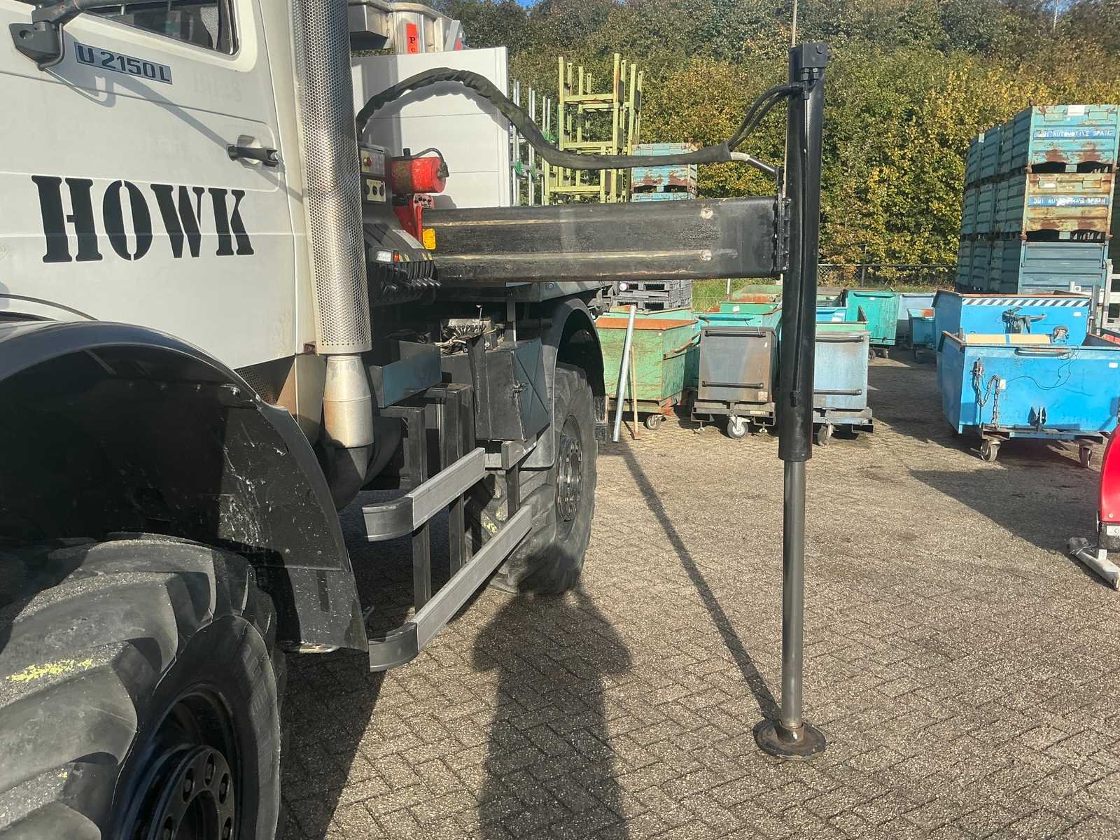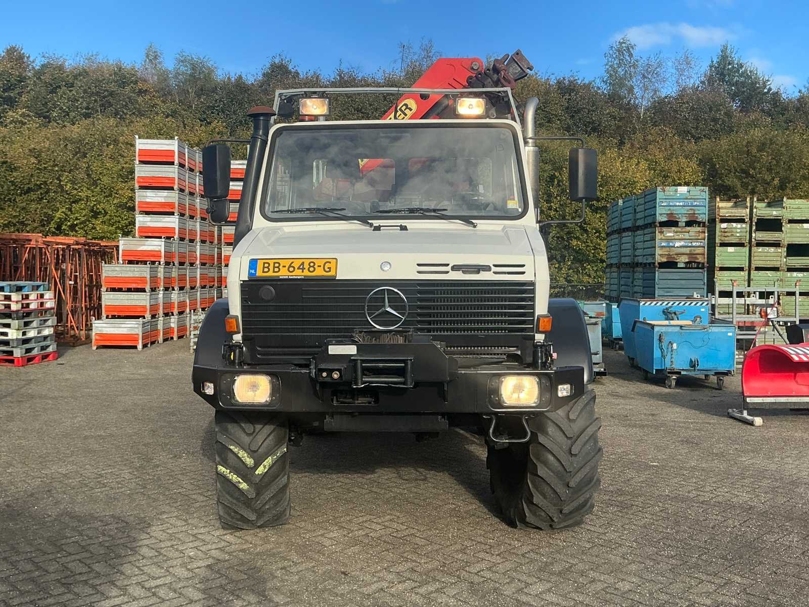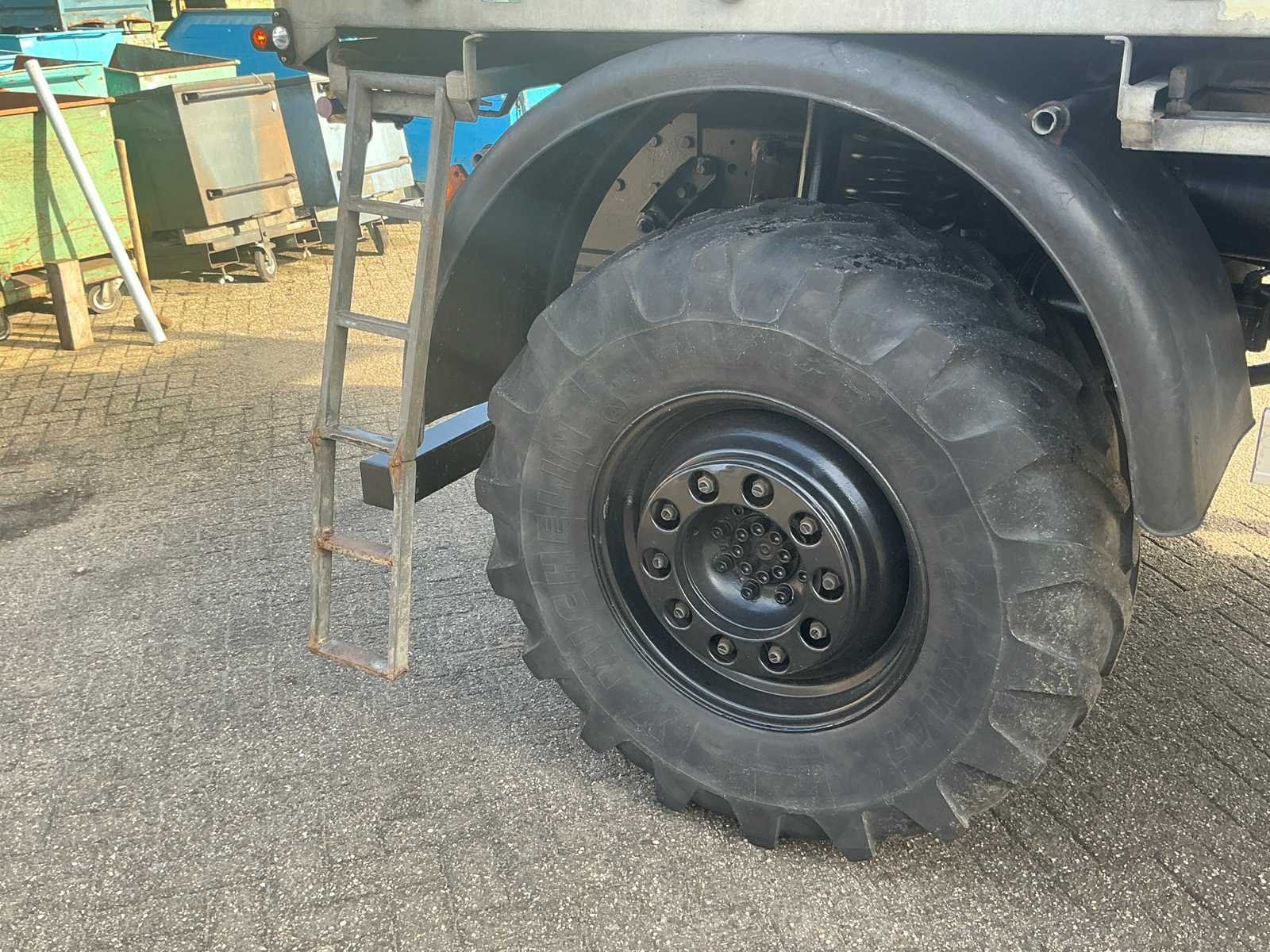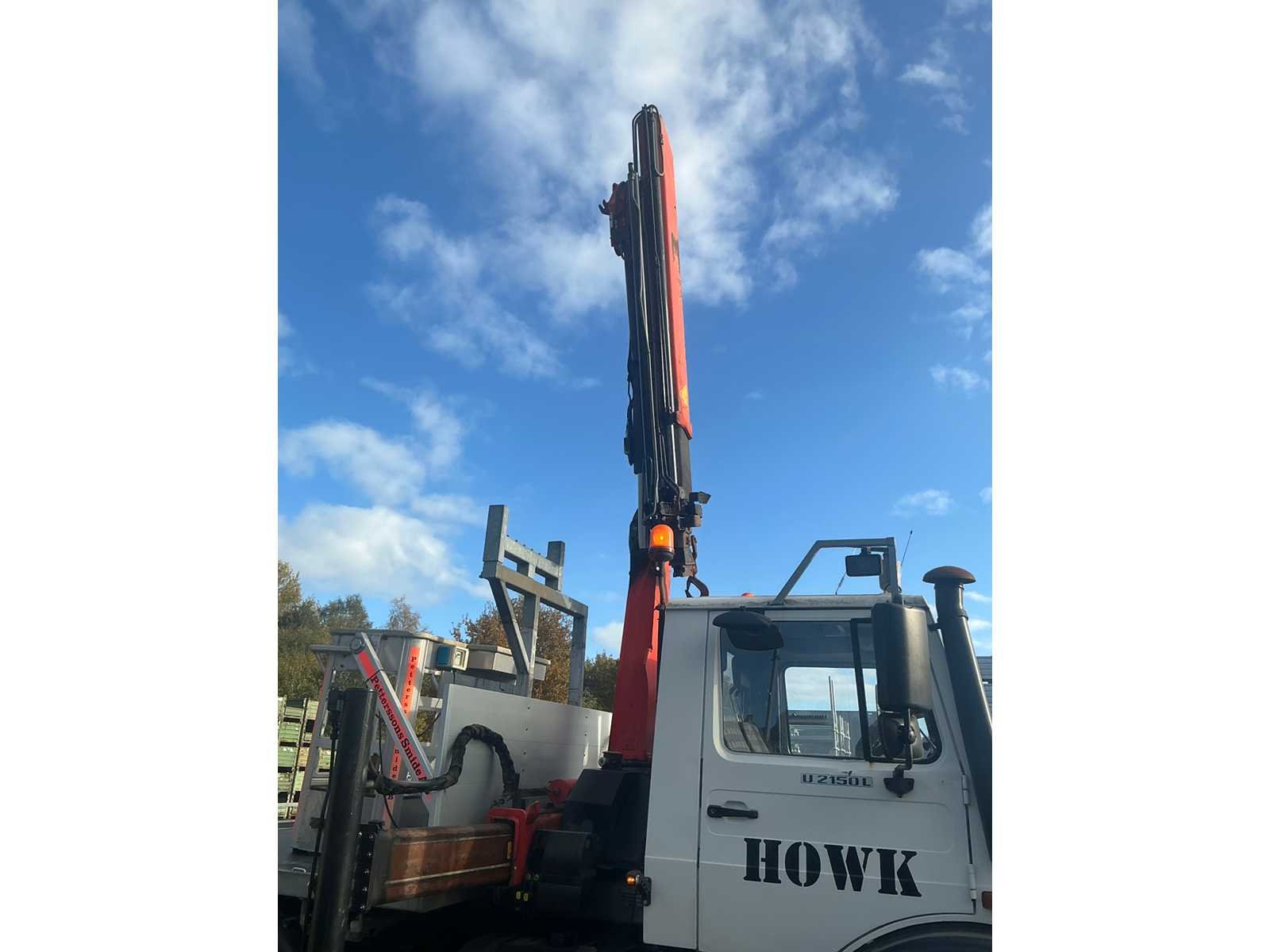 Goed rijdende Unimog met Palfinger PK9501 autolaad kraan (bouwjaar 2000) met afstandsbediening. Voorzien van hoogwerker bak. APK 17-4-2026 Nee Kenteken: BB-648-G Merk: Mercedes-benz Type: Unimog 437 U2150L Bouwjaar: 2002 Chassisnummer VIN: WDB4371181W196321 Cilinderinhoud: 5958cc Kilometerstand bij opname: 242478km APK vervaldatum: 2026-04-17 Datum eerste toelating: 2002-06-30 Datum eerste toelating (NL): 2021-12-10 Type transmissie: Geschakeld Aantal assen: 2 Fuel Type: Diesel Laadvermogen: 2297kg Aantal sleutels: 1 Emissieklasse: 3 Laadkraan: true Eigen gewicht: 8403kg Startinformatie: Start en rijdt Nationaliteit documenten: NL Aantal zitplaatsen: 2 Diesel: true