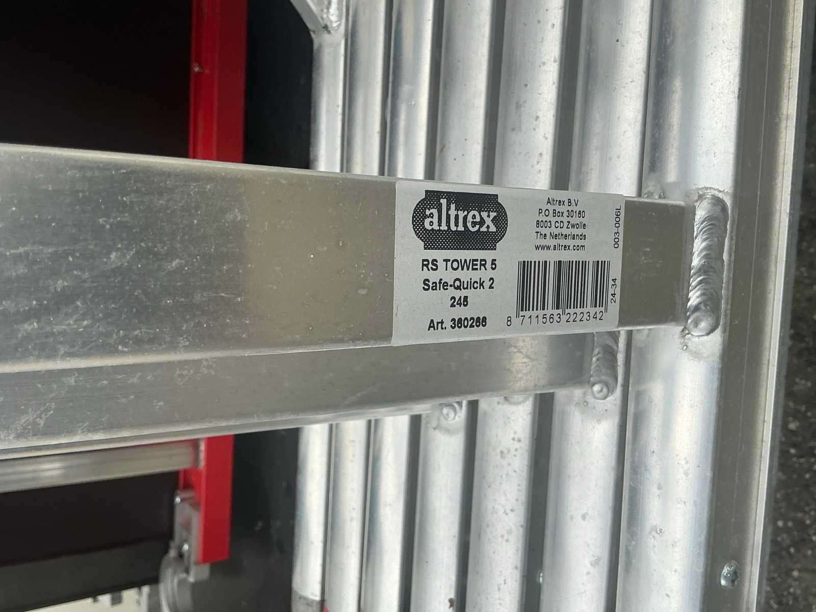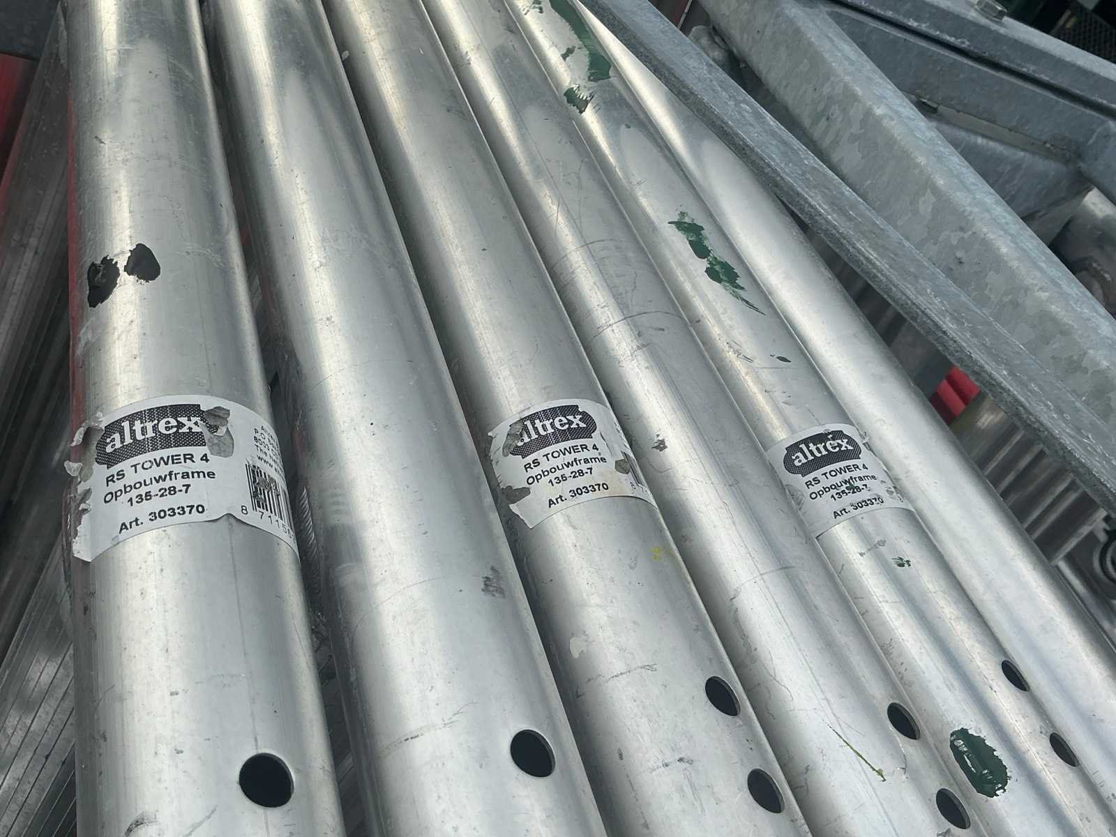 Altrex RS tower 4, 6 platformen, 4 wielen, 11 RS tower 4 opbouwframes, 4x stabilisator stang, 12x Safe Quick 2 RS tower 5. 12 meter hoog totaal. Nee Merk: Altrex Bouwjaar: 2024 Aantal assen: 1