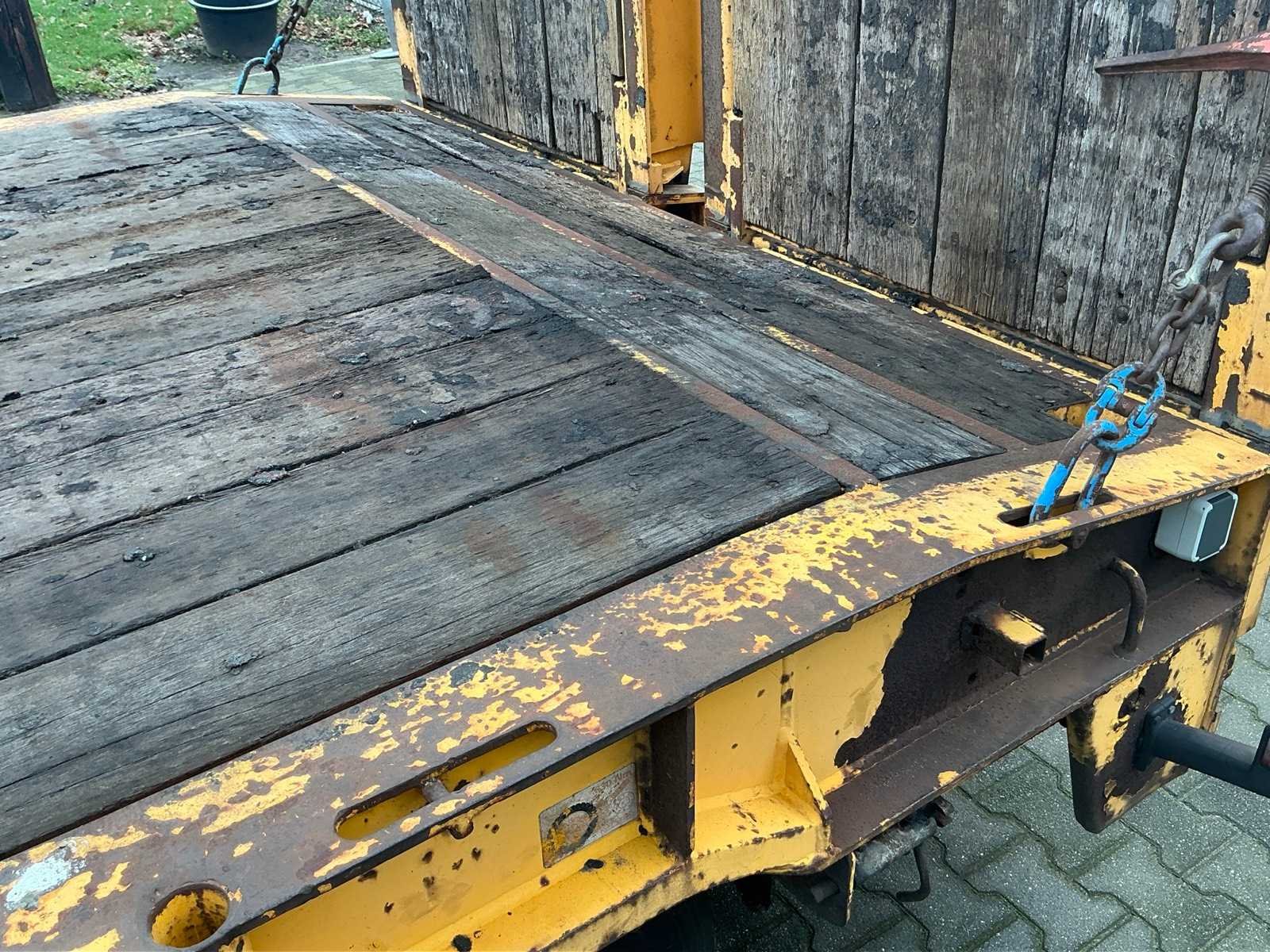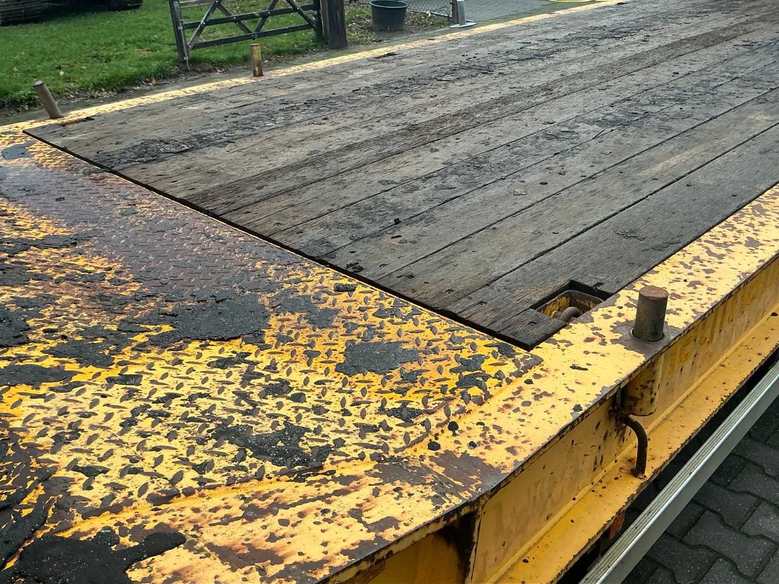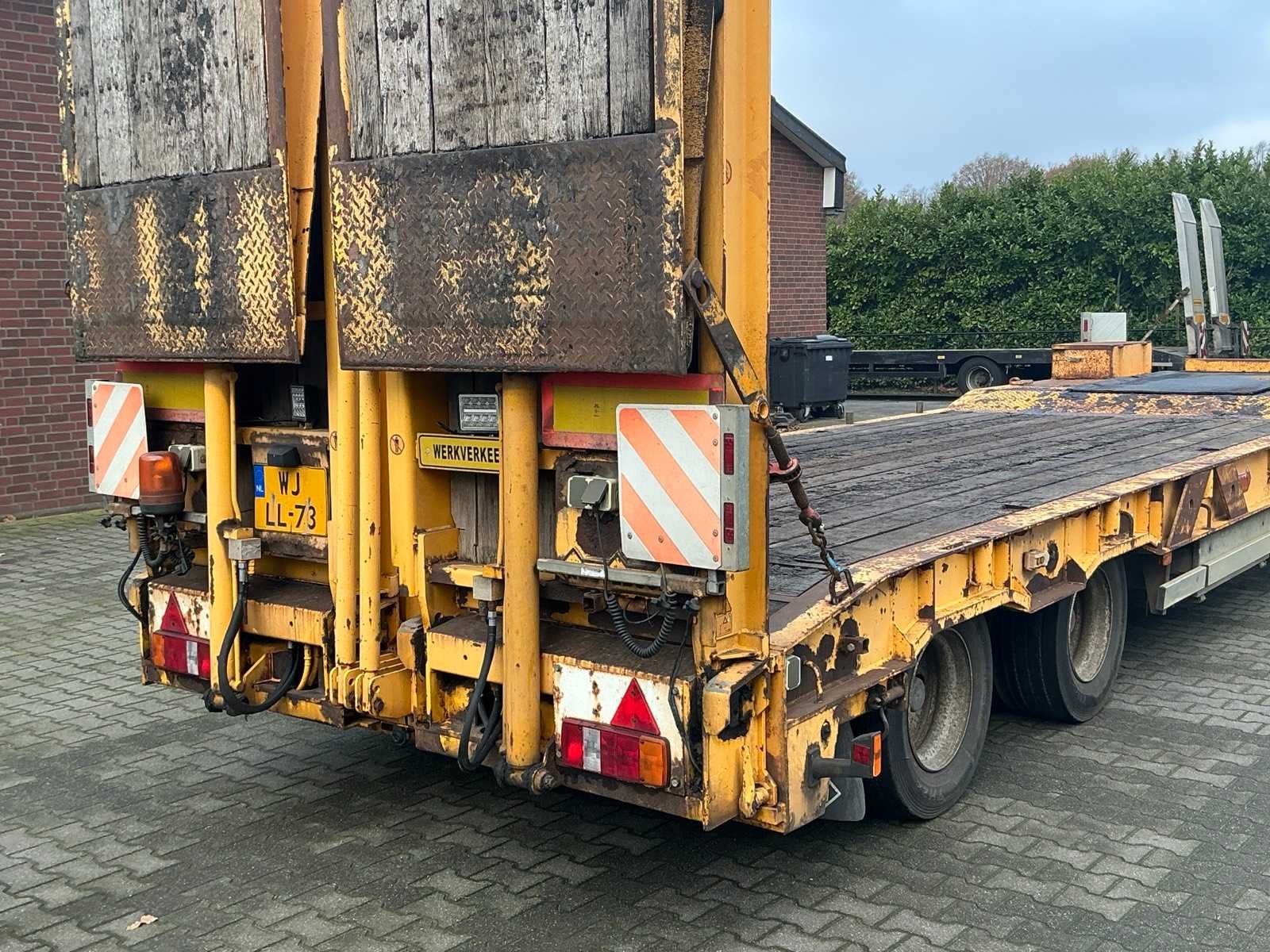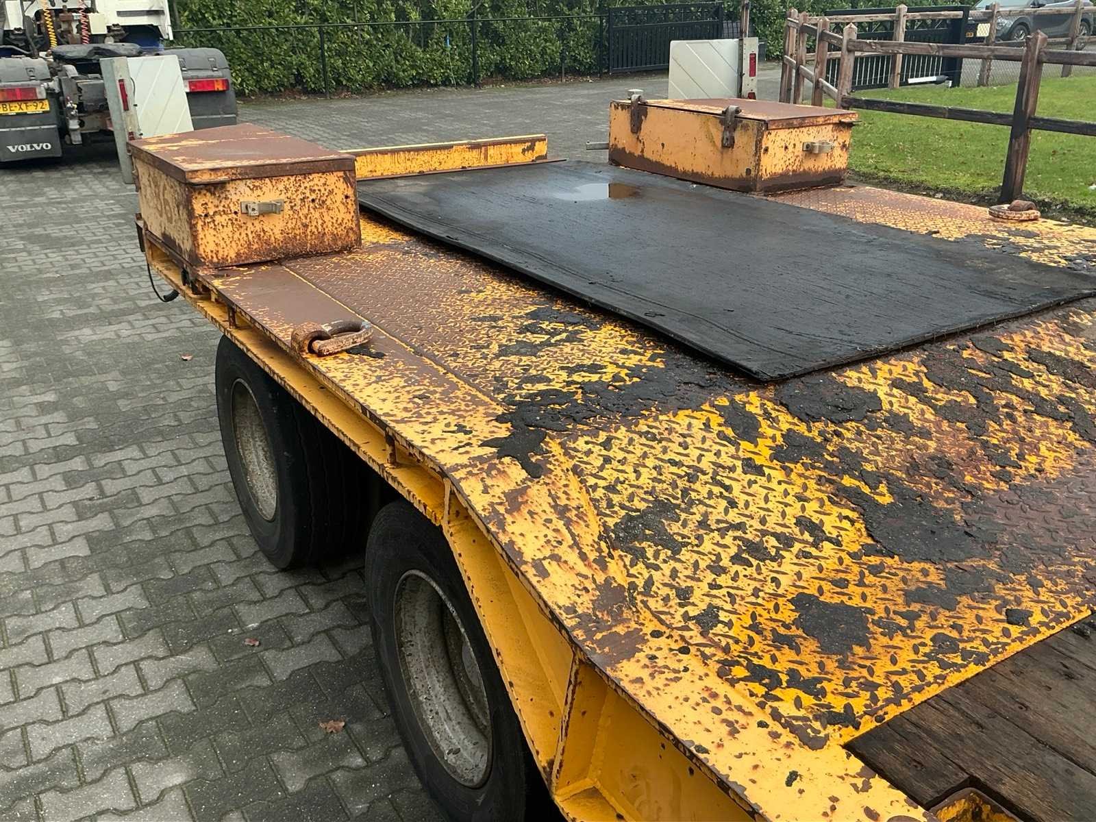 Laadvloer lagere gedeelte 590cm, . Eigen systeem om oprijplaten te laten zakken. (Accu’s zijn slecht) trekoog 40 en 50 aanwezig. Hoogtes: 102cm, 92m en 355cm. Voorzien van nieuwe APK. Nee Merk: Nooteboom Type: ASD-40-22 Kenteken: WJ-LL-73 Bouwjaar: 2003 Chassisnummer: XMRASD00030000492 Type aanhangwagencarrosserie: Plateauwagen Laadvermogen: 26480kg Aantal assen: 4 Kleur: Geel Datum eerste toelating: 2003-08-01 Datum eerste toelating (NL): 2003-08-01 APK vervaldatum: 2026-11-19 Lengte: 1150 Breedte: 255