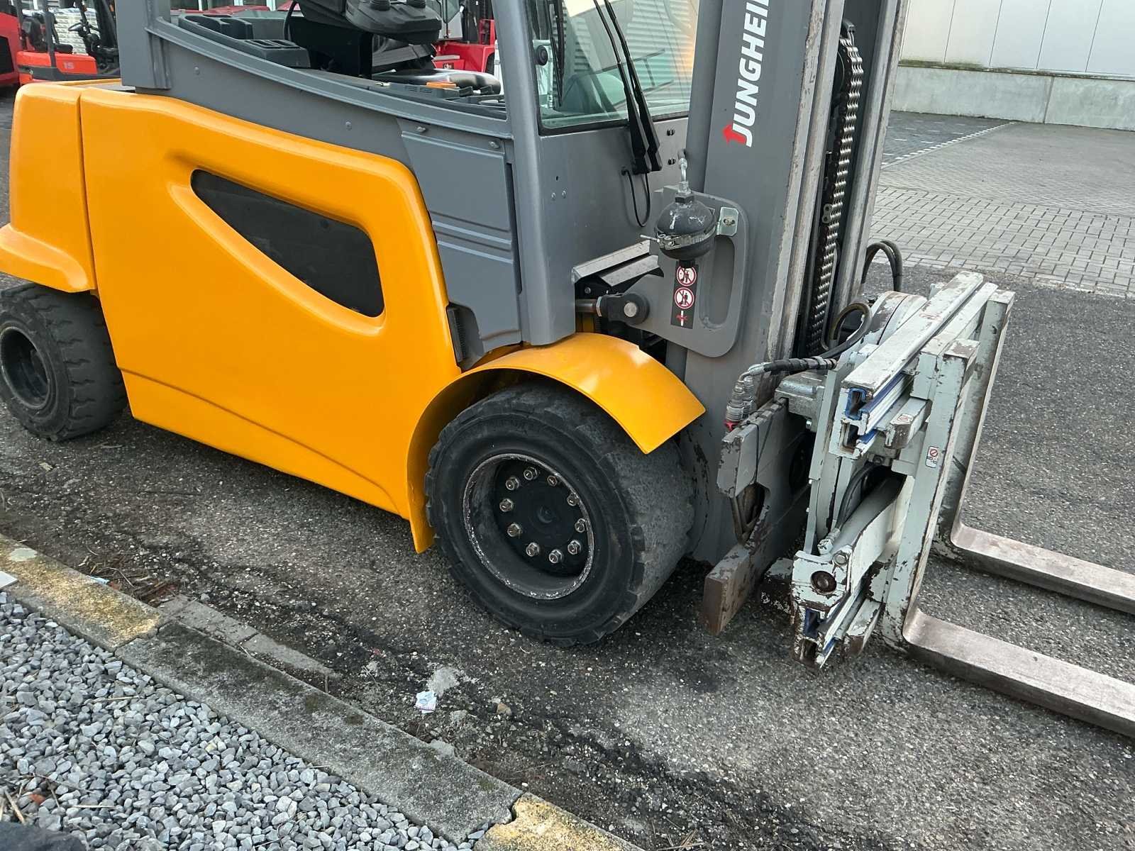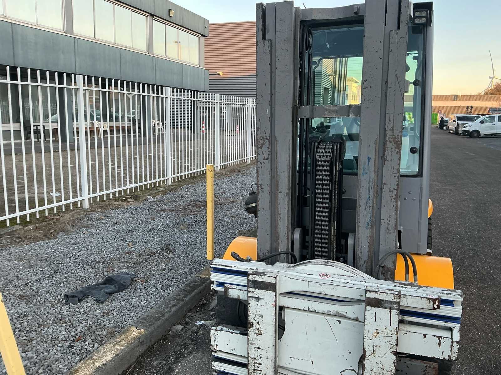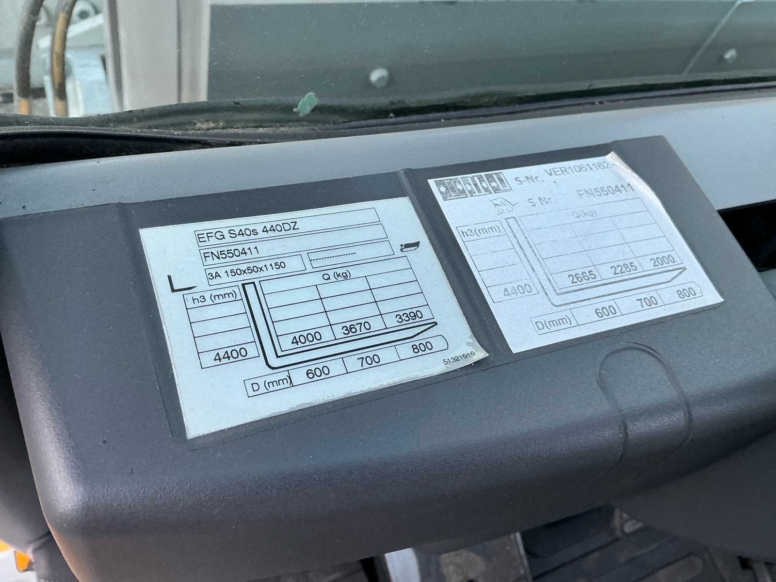 Nee Merk: Jungheinrich Type: EFG S40S Bouwjaar: 2017 Serienummer: FN550411 Brandstof: Diesel Mast: Triple Aantal wielen: 4 Afgelezen urenstand: 6639 Roterend vorkenbord: true Hydraulisch verstelbare lepels: true Triple mast: true Eigen gewicht: 5308kg Hefvermogen: 4000kg Lepellengte: 1200mm Max. hefhoogte: 4400mm Vol rubber banden: true Totale afmeting L: 4300mm Totale afmeting Breedte: 1650mm Totale afmeting Hoogte: 2350mm Diesel: true