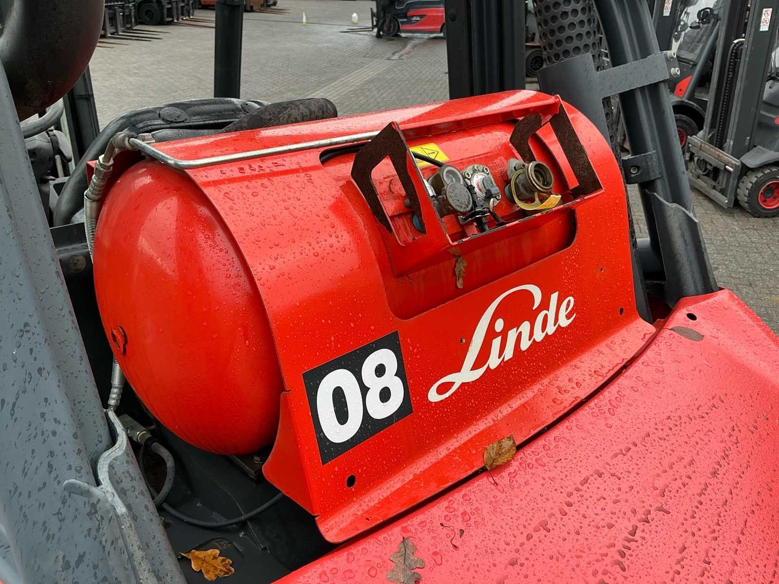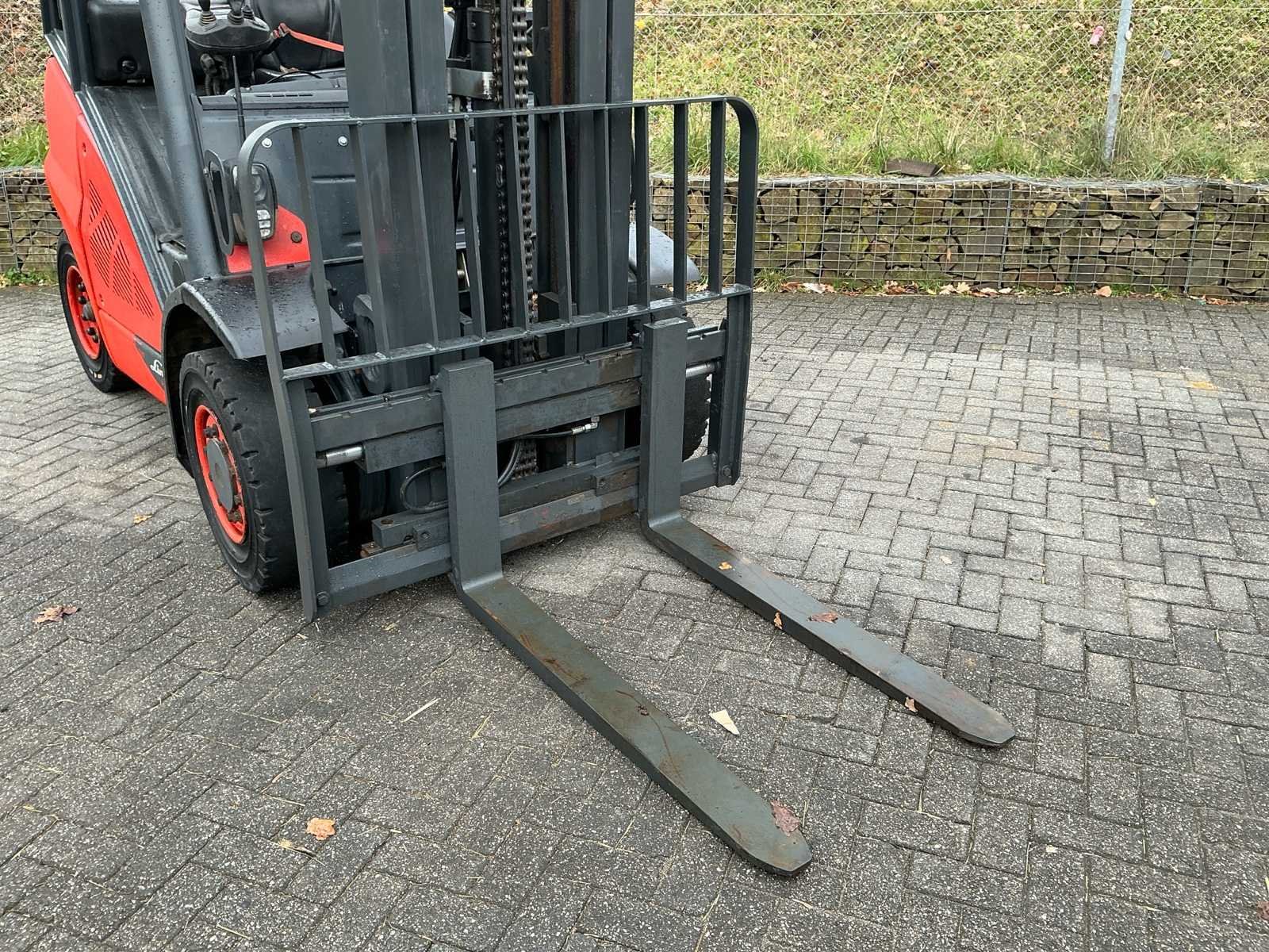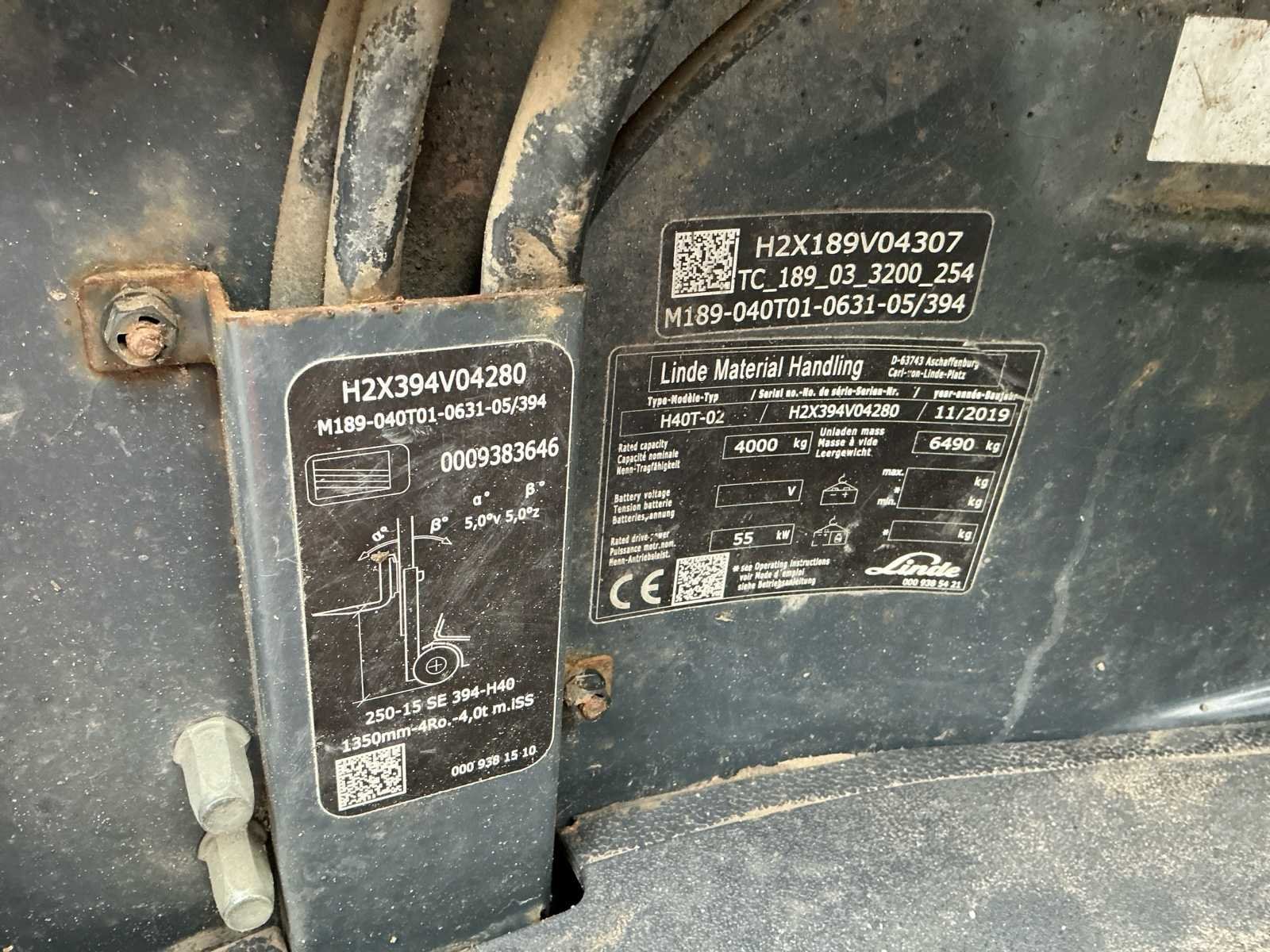 Voorzien van: side-shift, Grammer mechanisch geveerde stoel, mini-lever bediening op armleuning, verstelbare stuurkolom, trekhaak, led-werklampen, verlichting, Linde dubbele aandrijfpedalen voor het regelen van vooruit/achteruit rijden en remmen, Hydrostatische besturing terugslagvrij, controlelampjes op het display voor motoroliedruk, oververhitting van de motor, parkeerrem, hoorbaar waarschuwingssignaal voor motor- en hydraulische olietemperatuur, verstopt inlaatfilter en laag brandstofniveau, luchtinlaatfilter met geïntegreerde cycloonafscheider. No Merk: Linde Type: H40T-02 Bouwjaar: 2019 Serienummer: H2X394V04280 Brandstof: Gas Mast: Duplex Soort band: Volrubber Aantal wielen: 4 Afgelezen urenstand: 5742 Side-shift: true Duplex mast: true Eigen gewicht: 6490kg Hefvermogen: 4000kg Lepellengte: 1200mm Vol rubber banden: true Minimale doorrijhoogte: 3000mm Totale afmeting L: 4100mm Totale afmeting Breedte: 1450mm Totale afmeting Hoogte: 3000mm LPG: true