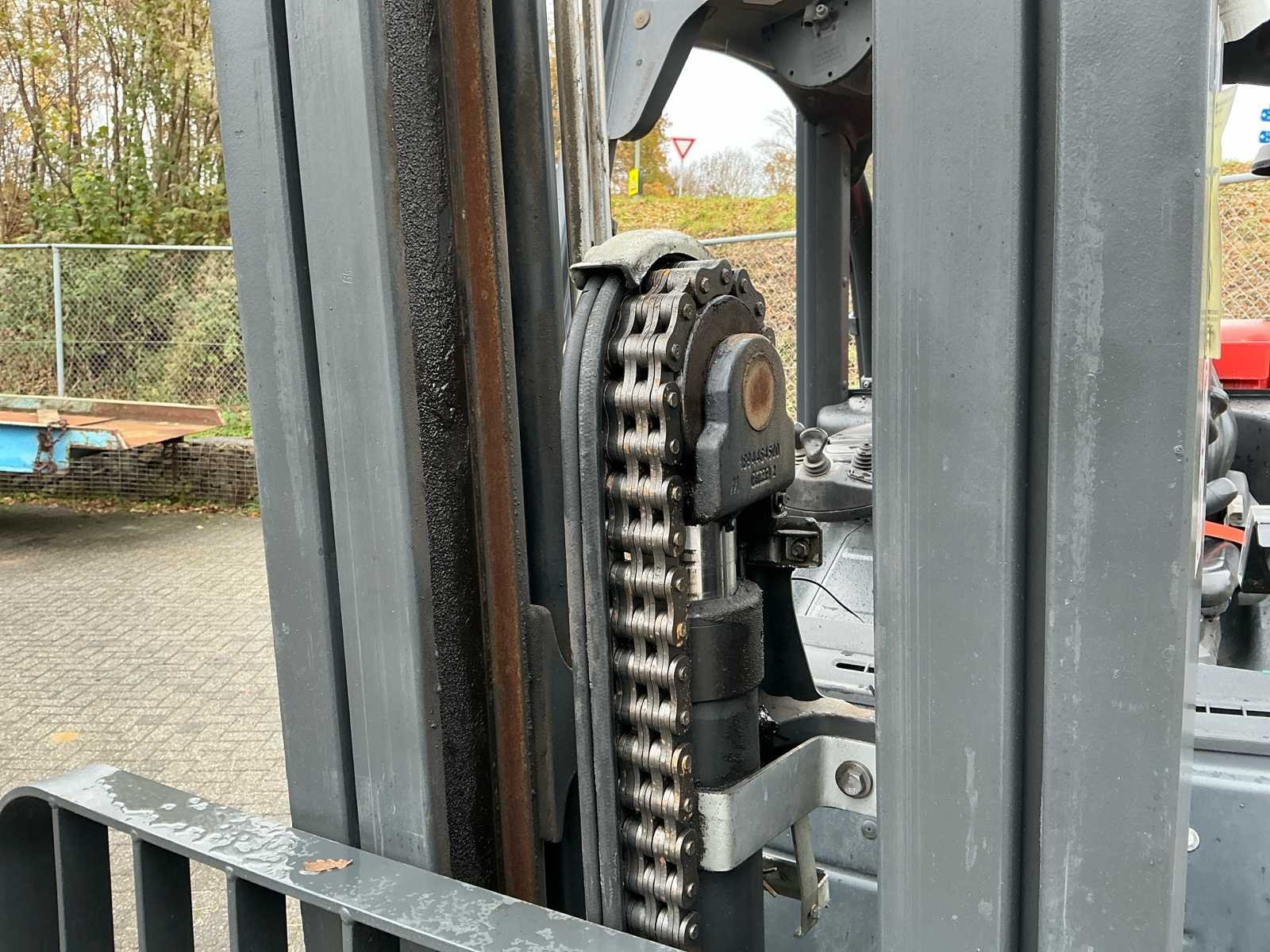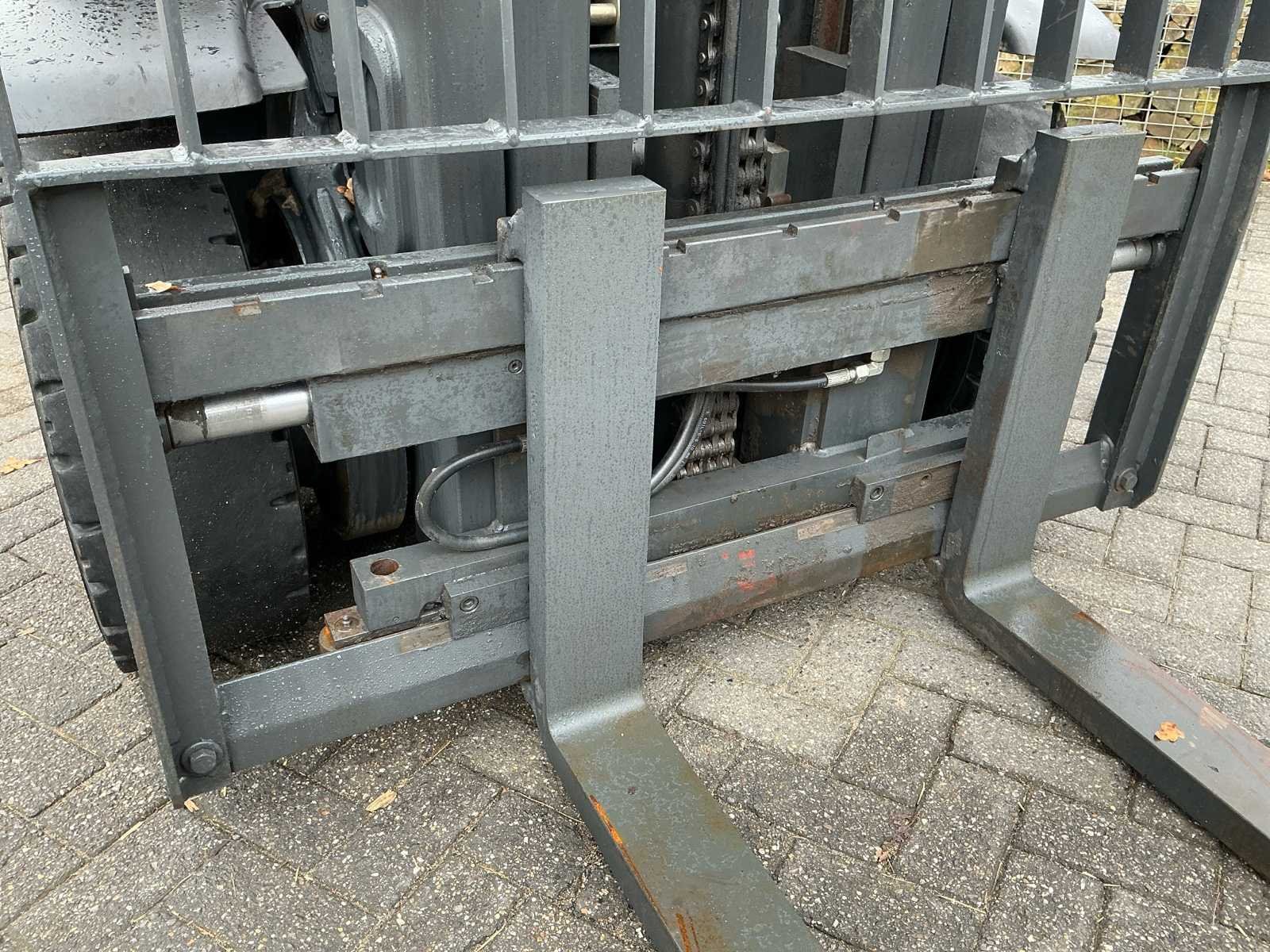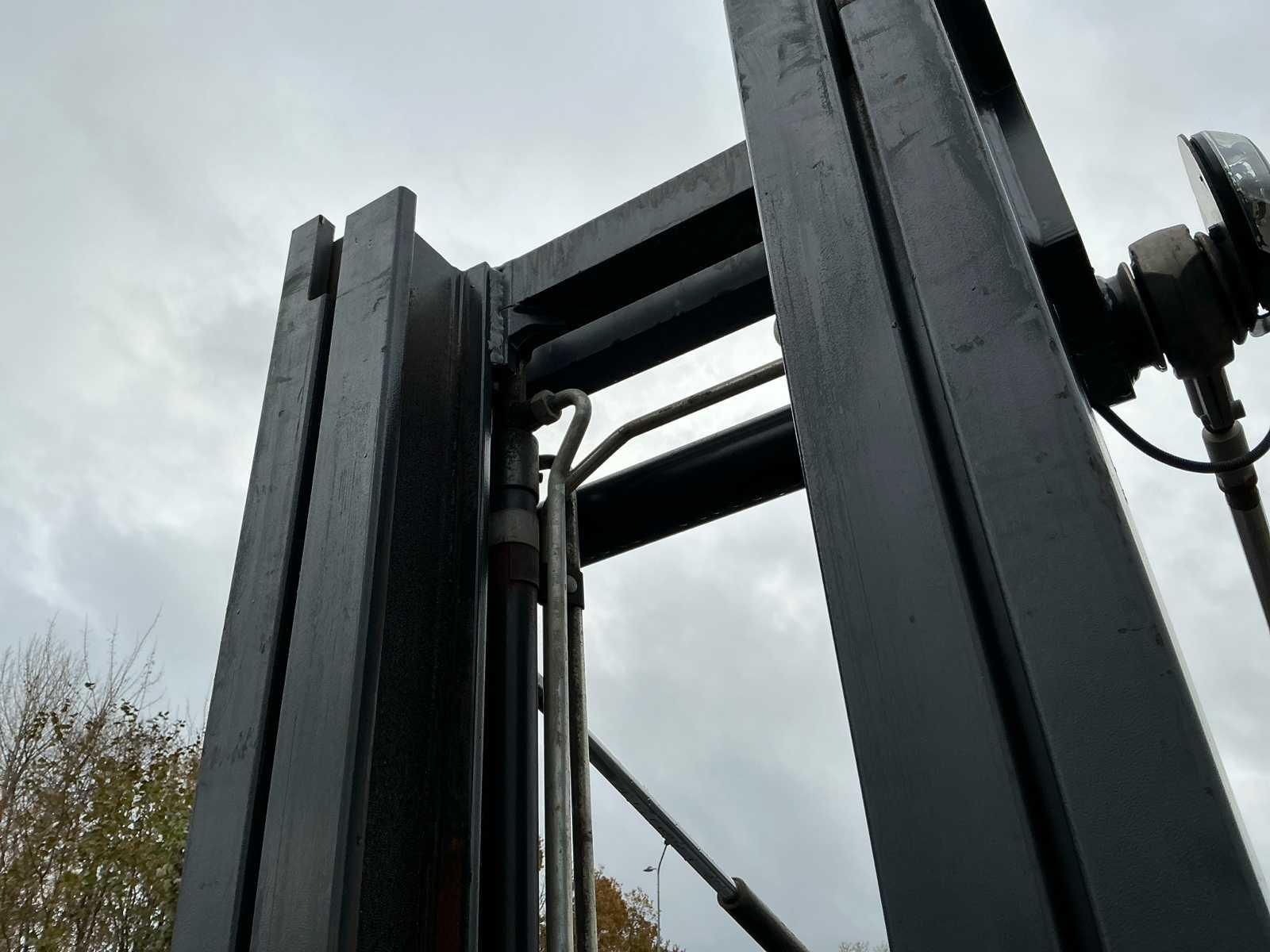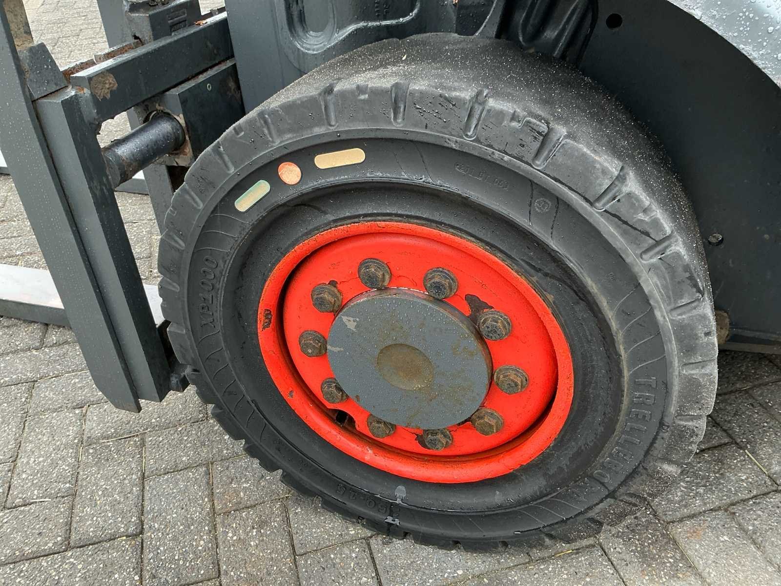 Voorzien van: side-shift, Grammer mechanisch geveerde stoel, mini-lever bediening op armleuning, verstelbare stuurkolom, trekhaak, led-werklampen, verlichting, Linde dubbele aandrijfpedalen voor het regelen van vooruit/achteruit rijden en remmen, Hydrostatische besturing terugslagvrij, controlelampjes op het display voor motoroliedruk, oververhitting van de motor, parkeerrem, hoorbaar waarschuwingssignaal voor motor- en hydraulische olietemperatuur, verstopt inlaatfilter en laag brandstofniveau, luchtinlaatfilter met geïntegreerde cycloonafscheider. No Merk: Linde Type: H40T-02 Bouwjaar: 2019 Serienummer: H2X394V04280 Brandstof: Gas Mast: Duplex Soort band: Volrubber Aantal wielen: 4 Afgelezen urenstand: 5742 Side-shift: true Duplex mast: true Eigen gewicht: 6490kg Hefvermogen: 4000kg Lepellengte: 1200mm Vol rubber banden: true Minimale doorrijhoogte: 3000mm Totale afmeting L: 4100mm Totale afmeting Breedte: 1450mm Totale afmeting Hoogte: 3000mm LPG: true