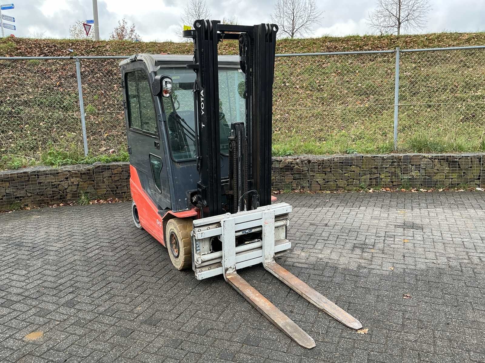 Voorzien van: Grammer mechanisch geveerde stoel, mini-lever bediening op armleuning, verwarmde achterruit, verwarming, schuiframen, opklapbare achterruit, vol rubber non-marking banden, Cascade vorkenbord, hydraulisch verstelbare lepels, Max. 1700mm h.o.h. Lepels, side-shift,trekhaak, verlichting, voltage 80V, tractiemotor 20kW, hijsmotor 25.5kW, No Merk: Toyota Type: 8FBMKT25 Bouwjaar: 2017 Serienummer: 8FBMKT25-12836 Brandstof: Elektrisch Mast: Triplex Soort band: Volrubber Aantal wielen: 4 Afgelezen urenstand: 9478 Side-shift: true Hydraulisch verstelbare lepels: true Triple mast: true Eigen gewicht: 5500kg Hefvermogen: 2500kg Lepellengte: 1200mm Vol rubber banden: true Minimale doorrijhoogte: 1450mm Totale afmeting L: 3700mm Totale afmeting Breedte: 1200mm Totale afmeting Hoogte: 2450mm
