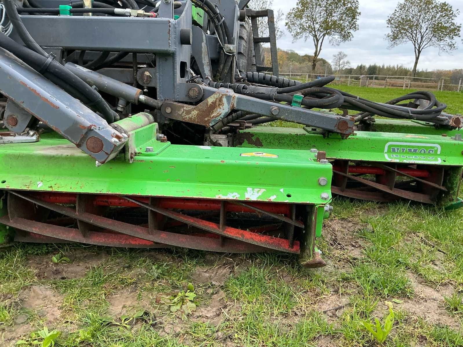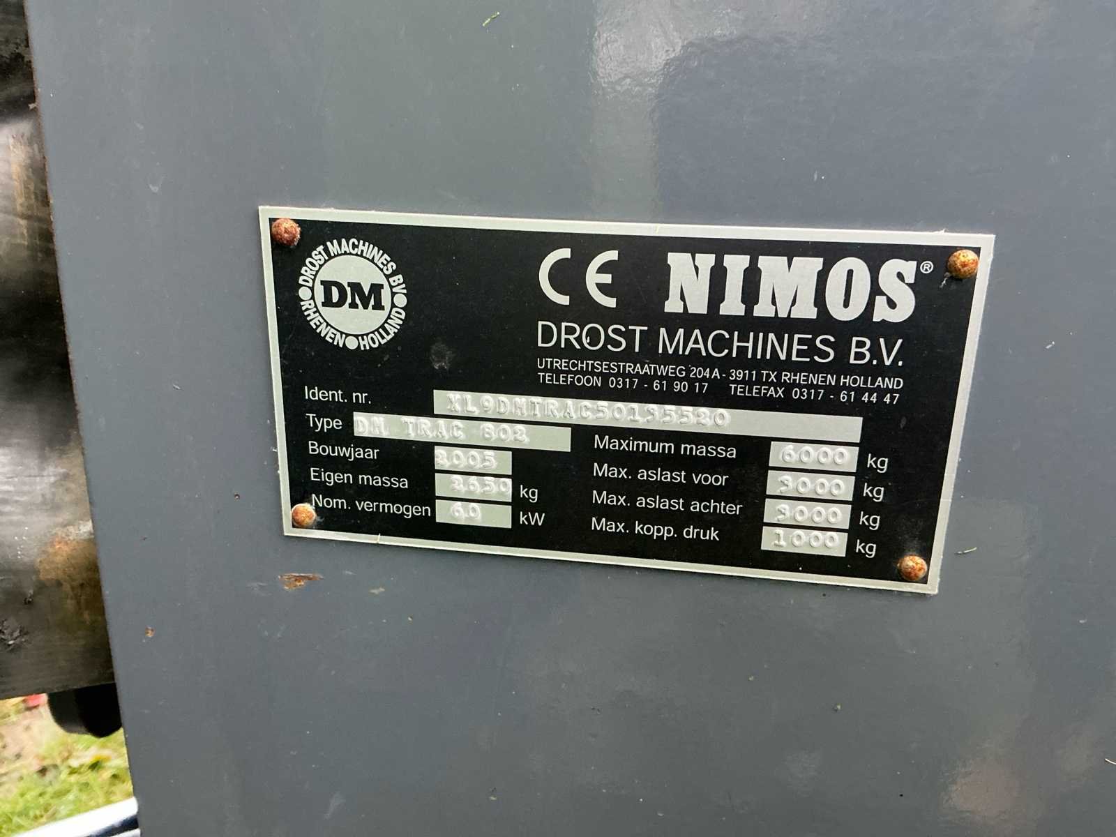 Voorzien van: klemsluiting met borg, handmatige kiepbak, 7 delige kooimaaier, verlichting, werkverlichting, hydraulische aansluiting, reserveband Nee Merk: Nimos Type: DM-TRAC 802E-7V Bouwjaar: 2005 Serienummer: XL9DMTRAC5013552 Kenteken: TLD93K Zelfrijdend: true Maaihoogte verstelling: true Verdeelwals: true Cabine: true Type motor: John Deere Aantal cilinders: 4 Brandstof: Diesel Motorvermogen (kW): 60kW Afgelezen urenstand: 4276hr Totale afmeting L: 5000mm Totale afmeting Breedte: 2650mm Totale afmeting Hoogte: 2400mm Eigen gewicht: 2650kg