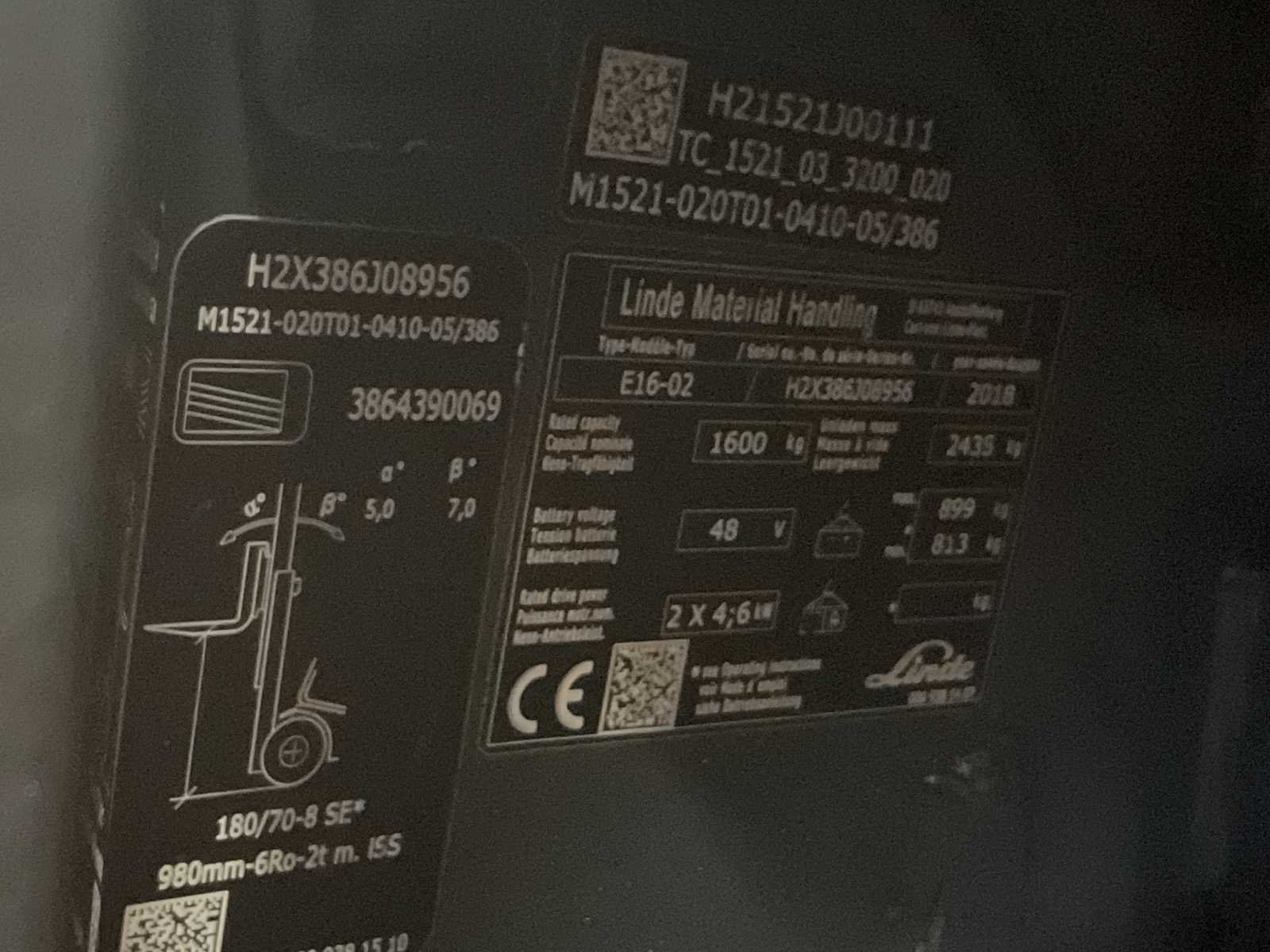Voorzien van: triplex mast, acculader, rijbeveiliging, waarschuwingslichten beide kanten Nee Merk: Linde Type: E16 EVO Bouwjaar: 2018 Serienummer: H2X386JO8956 Aantal wielen: 3 Afgelezen urenstand: 9170 Accu lader: true Triple mast: true Eigen gewicht: 3700kg Hefvermogen: 1600kg Lepellengte: 1150mm Max. hefhoogte: 4100mm Minimale doorrijhoogte: 1950mm Totale afmeting L: 2000mm Totale afmeting Breedte: 1100mm Totale afmeting Hoogte: 1950mm