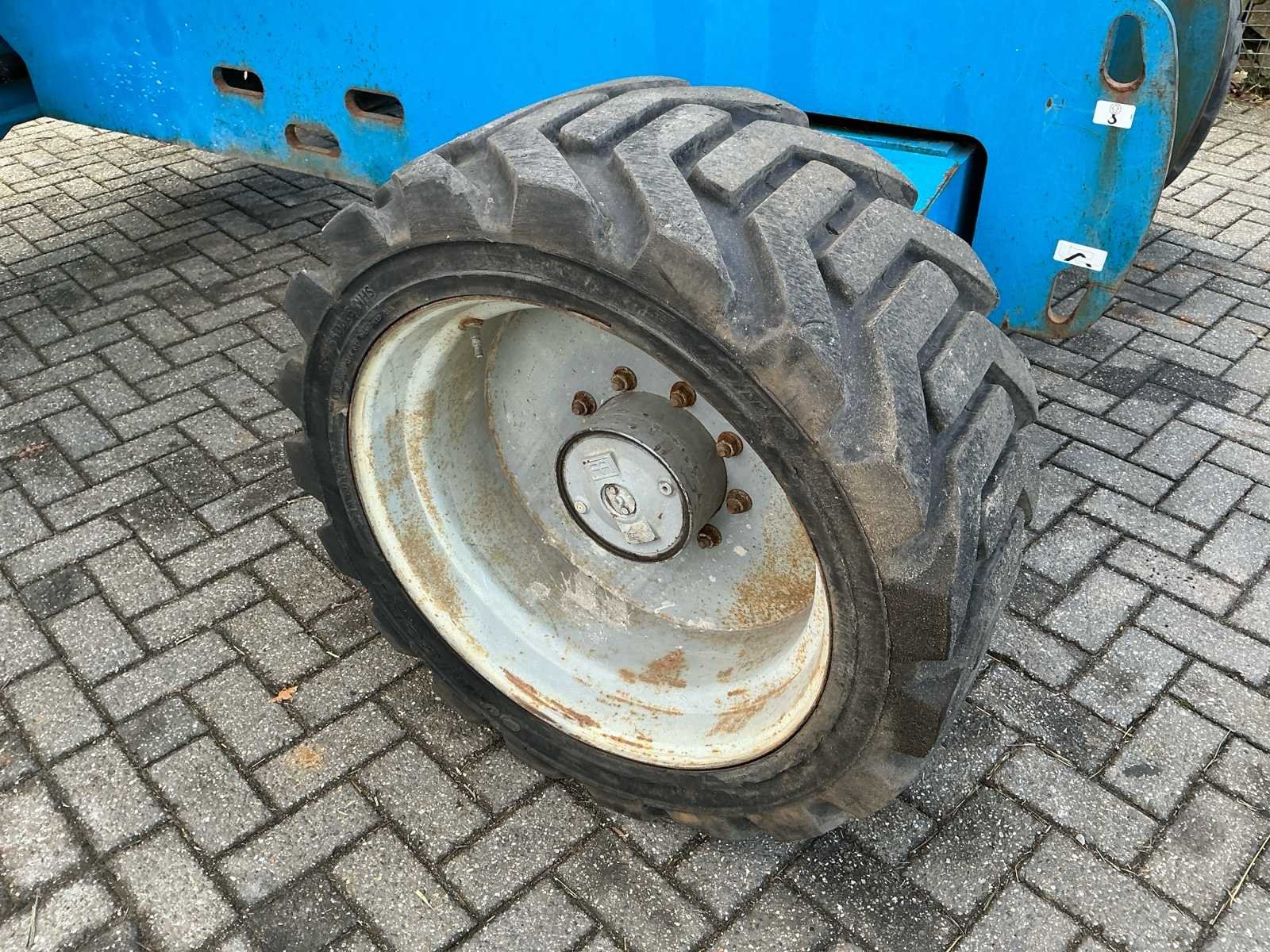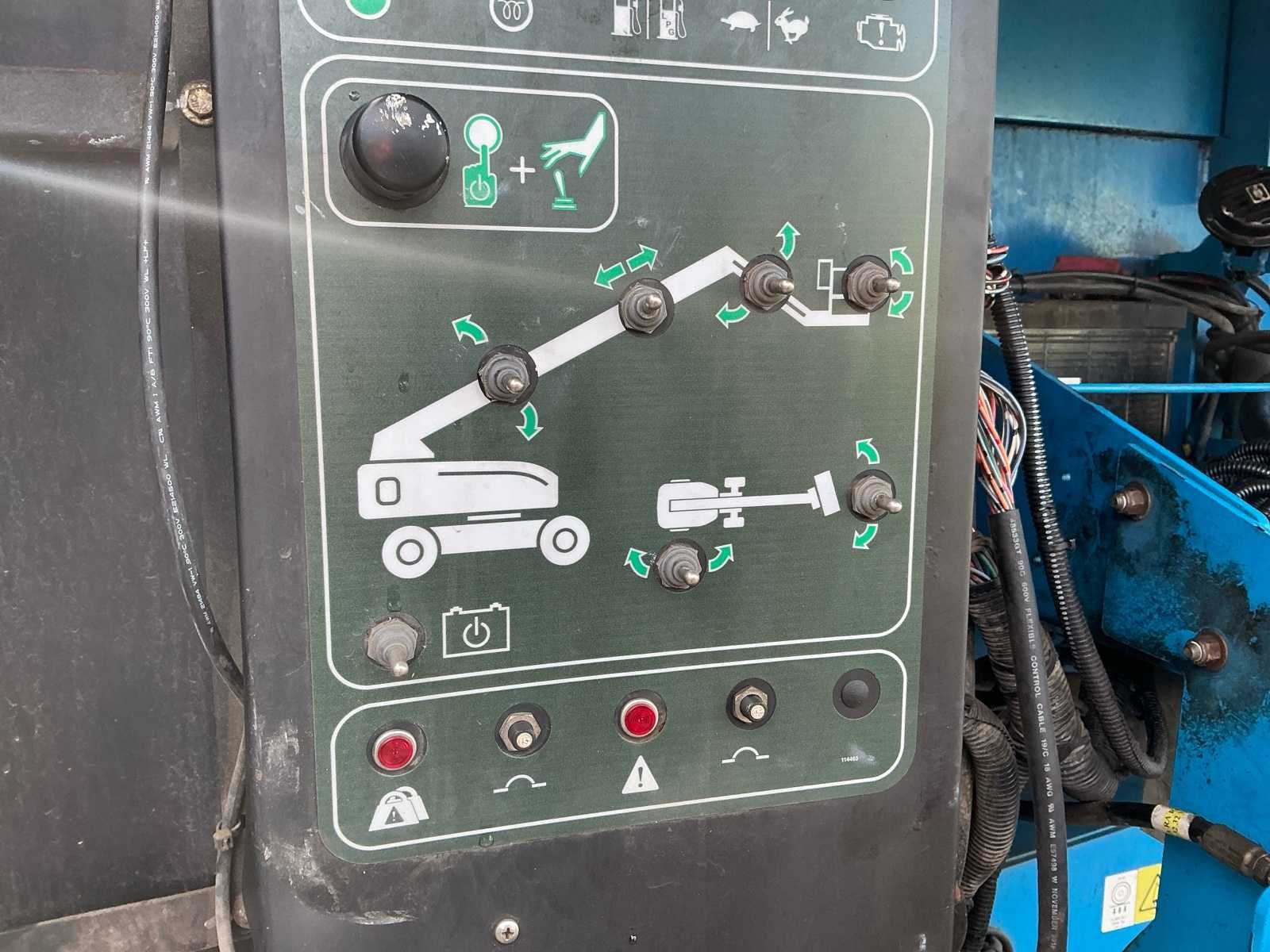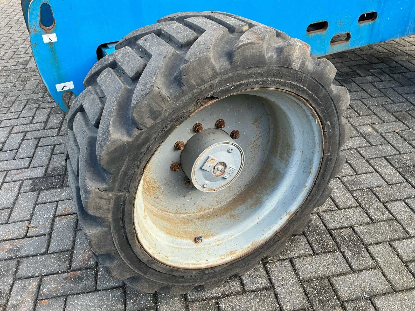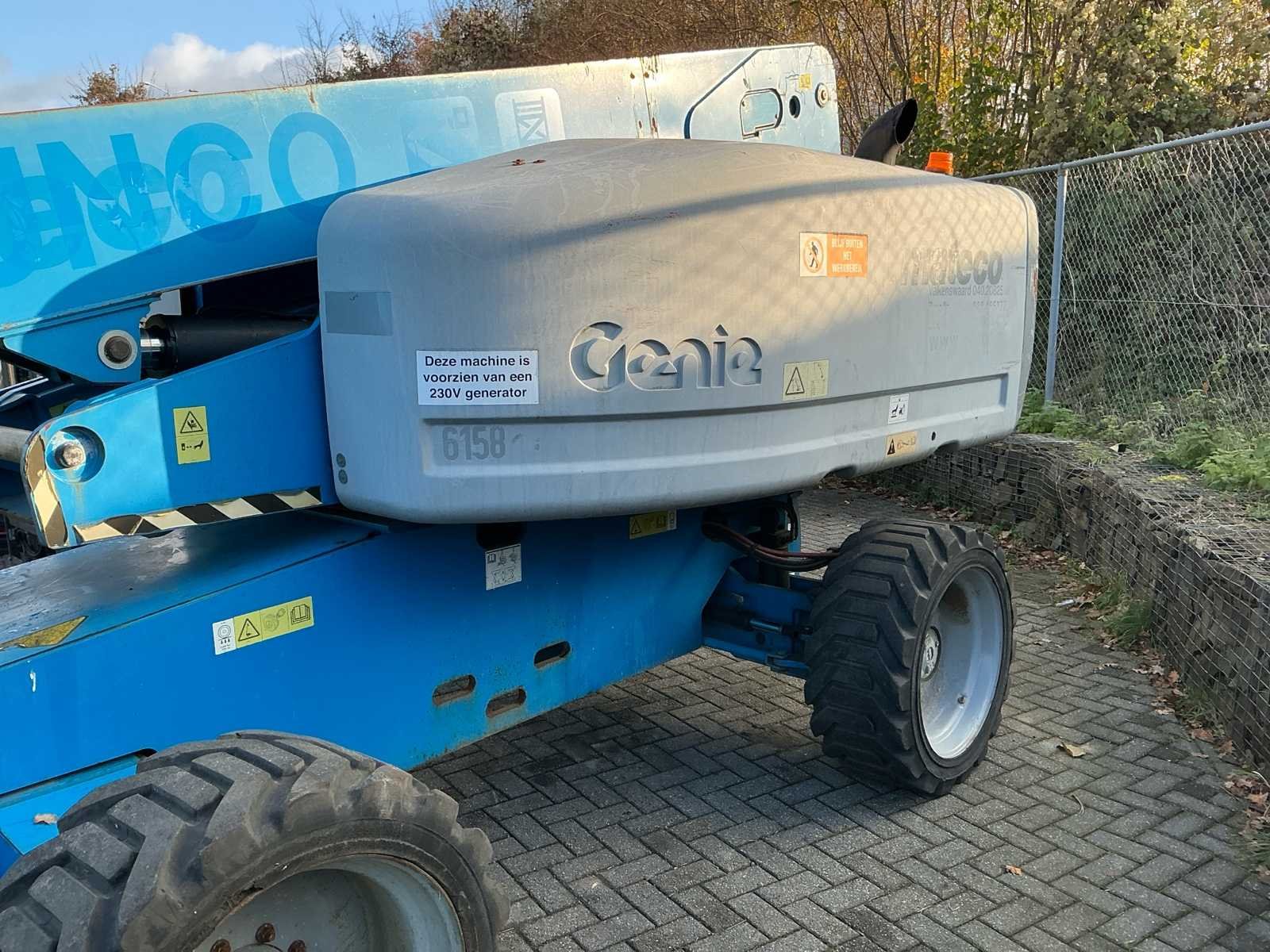 Voorzien van: maximale werkhoogte (op banden) 21,81 m, horizontaal bereik maximaal 17,10 m, platform lengte 0,91 m, platform breedte 2,44 m, hefvermogen 227 kg, platformrotatie 160°, verticale giekrotatie 135° (+78° / -57°), 12 V DC proportioneel, RT schuimgevuld 355/55D 625, Deutz TD2011 L04i 4 cylinder turbo diesel 55 kW (74 hp), 4WD, 4WS, Hydraulische platformrotatie, proportionele joystickbediening, besturing met duimtuimelschakelaar, netsnoer naar platform, kantelalarm, dalings- en rijalarmen, urenteller, 360° continue draaitafelrotatie, wielmotoren met twee snelheden, 7 kVA hydraulische generator (240 V 50 Hz), uitlaatdemper met dieselkatalysator, 240 V stroomvoorziening naar platform. No Merk: Genie Type: S-65 Bouwjaar: 2011 Serienummer: S6011-21567 Diesel: true Telescoop hoogwerker: true Werkhoogte: 21800mm Horizontale rijkwijdte: 17100mm Plateau afm. l: 2440mm Plateau afm. b: 910mm Platform capaciteit: 227kg Afgelezen urenstand: 638 Eigen gewicht: 10089kg