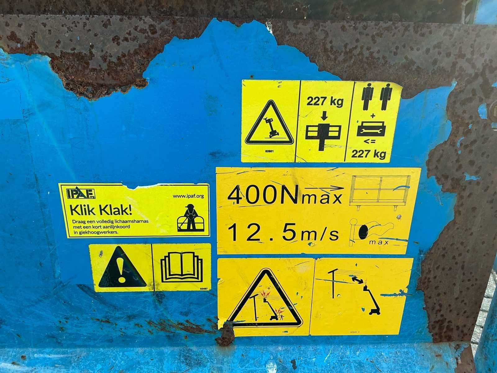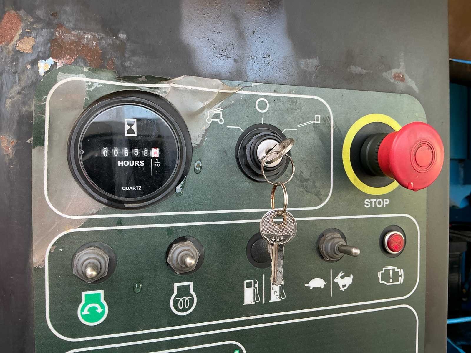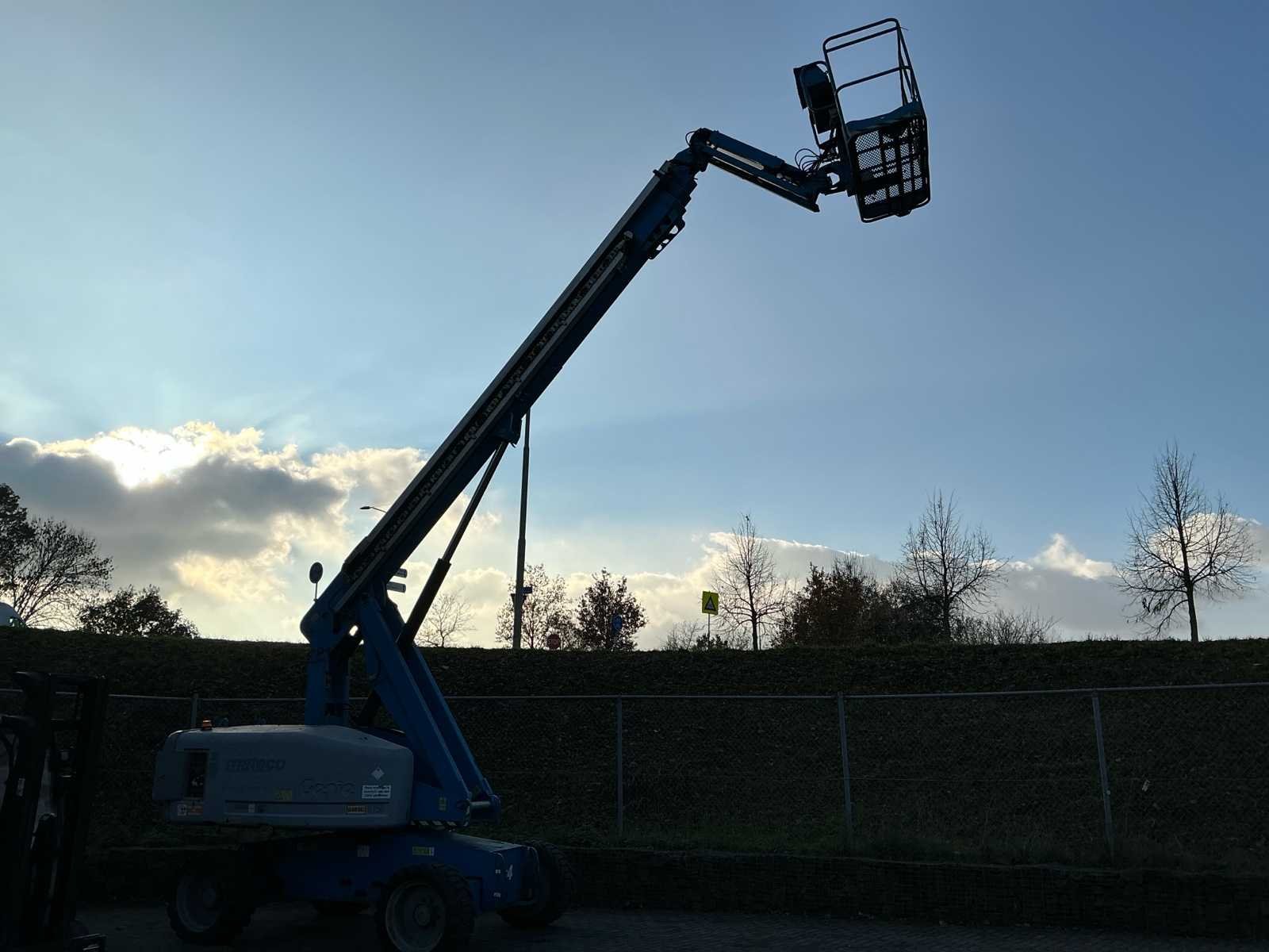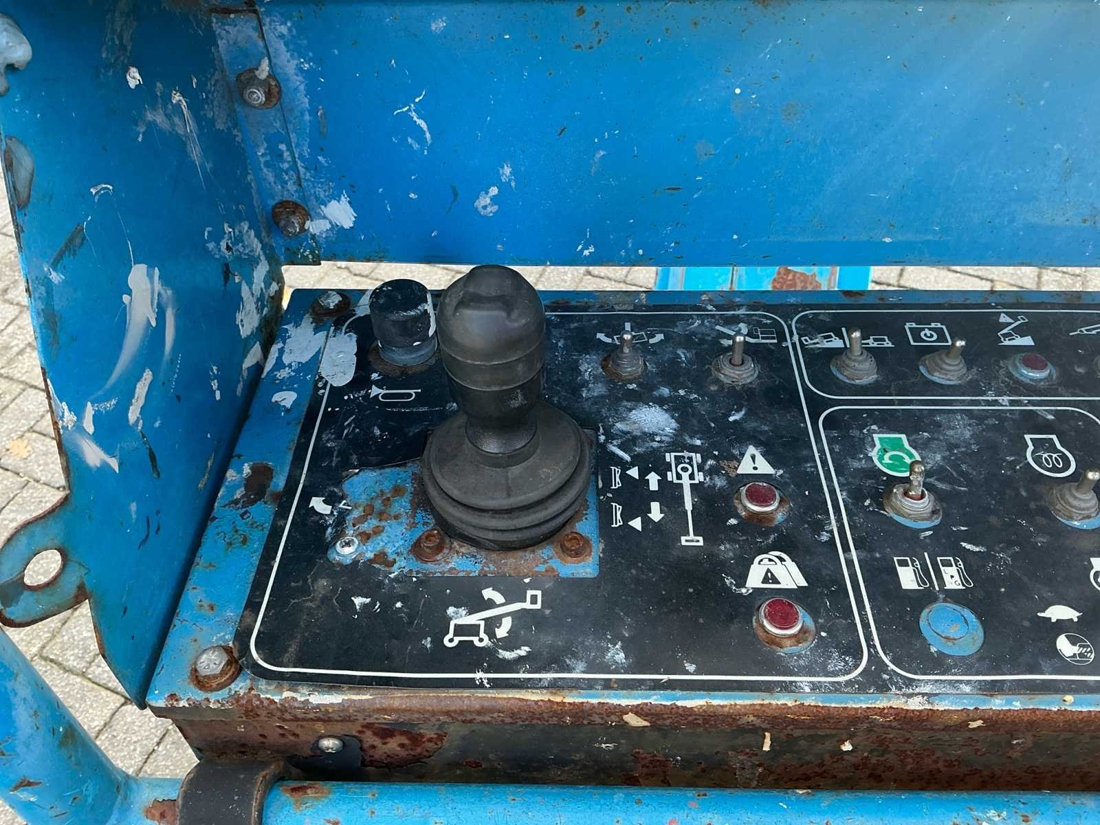 Voorzien van: maximale werkhoogte (op banden) 21,81 m, horizontaal bereik maximaal 17,10 m, platform lengte 0,91 m, platform breedte 2,44 m, hefvermogen 227 kg, platformrotatie 160°, verticale giekrotatie 135° (+78° / -57°), 12 V DC proportioneel, RT schuimgevuld 355/55D 625, Deutz TD2011 L04i 4 cylinder turbo diesel 55 kW (74 hp), 4WD, 4WS, Hydraulische platformrotatie, proportionele joystickbediening, besturing met duimtuimelschakelaar, netsnoer naar platform, kantelalarm, dalings- en rijalarmen, urenteller, 360° continue draaitafelrotatie, wielmotoren met twee snelheden, 7 kVA hydraulische generator (240 V 50 Hz), uitlaatdemper met dieselkatalysator, 240 V stroomvoorziening naar platform. No Merk: Genie Type: S-65 Bouwjaar: 2011 Serienummer: S6011-21567 Diesel: true Telescoop hoogwerker: true Werkhoogte: 21800mm Horizontale rijkwijdte: 17100mm Plateau afm. l: 2440mm Plateau afm. b: 910mm Platform capaciteit: 227kg Afgelezen urenstand: 638 Eigen gewicht: 10089kg