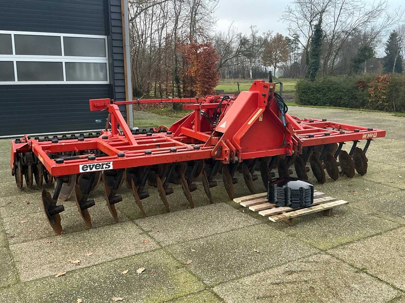 Gedragen uitvoering voorzien van dakringrol. Hydraulisch opklapbaar. Nee Merk: Evers Type: JE 500 R62 V Bouwjaar: 2011 Serienummer: 65102605 Werkbreedte: 5000mm Schijfdiameter: 510mm Opklapbaar: true Eigen gewicht: 2380kg Totale afmeting L: 5100mm Totale afmeting Breedte: 2450mm Totale afmeting Hoogte: 1500mm
