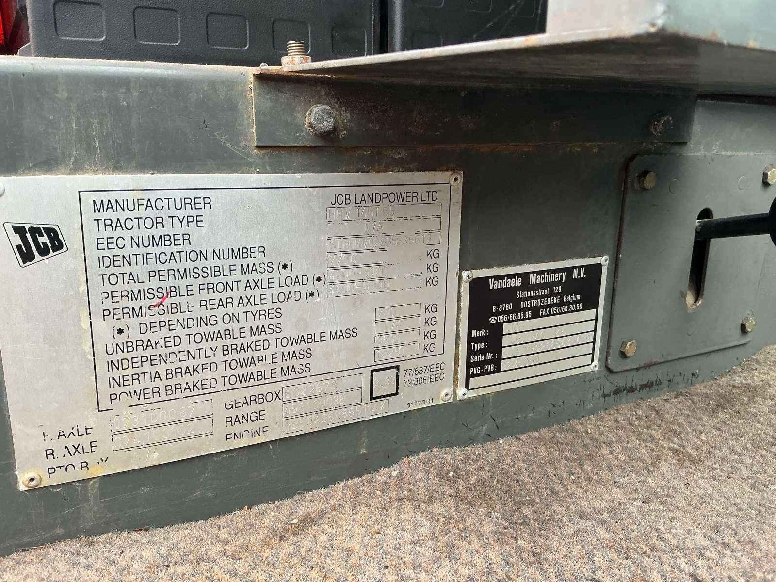 Conditie is goed. Deze machine is voorzien van Michelinbanden, 2x dubbelwerkende ventielen, luchtrem hydraulisch remventiel, verstelbare boven trekhaak, oppikhaak, werkverlichting., geveerde stoel, Perkings diesel motor, dakluik en radio. De machine heeft vorig jaar een grote beurt gehad. Maximale snelheid: 60 km/ uur. Airconditioning is kapot. Nee Merk: JCB Type: Fastrac 145 TURBO Bouwjaar: 1993 Kenteken: T19GGG Motorvermogen (kW): 108kW Afgelezen urenstand: 5235 Versnellingsbaktype: Handgeschakeld Aftakastoerental: 1000rpm Aantal hydraulische ventielen voor: 0 Aantal hydraulische ventielen achter: 2 Bandenmaat voor: 540/65 R Bandenmaat achter: 540/65R 30 Cabine: true Eigen gewicht: 7500kg Totale afmeting L: 4800mm Totale afmeting Breedte: 2550mm Totale afmeting Hoogte: 2900mm Kentekenpapieren compleet?: true Datum eerste toelating: 1993-04-21 Nationaliteit documenten: Nederland