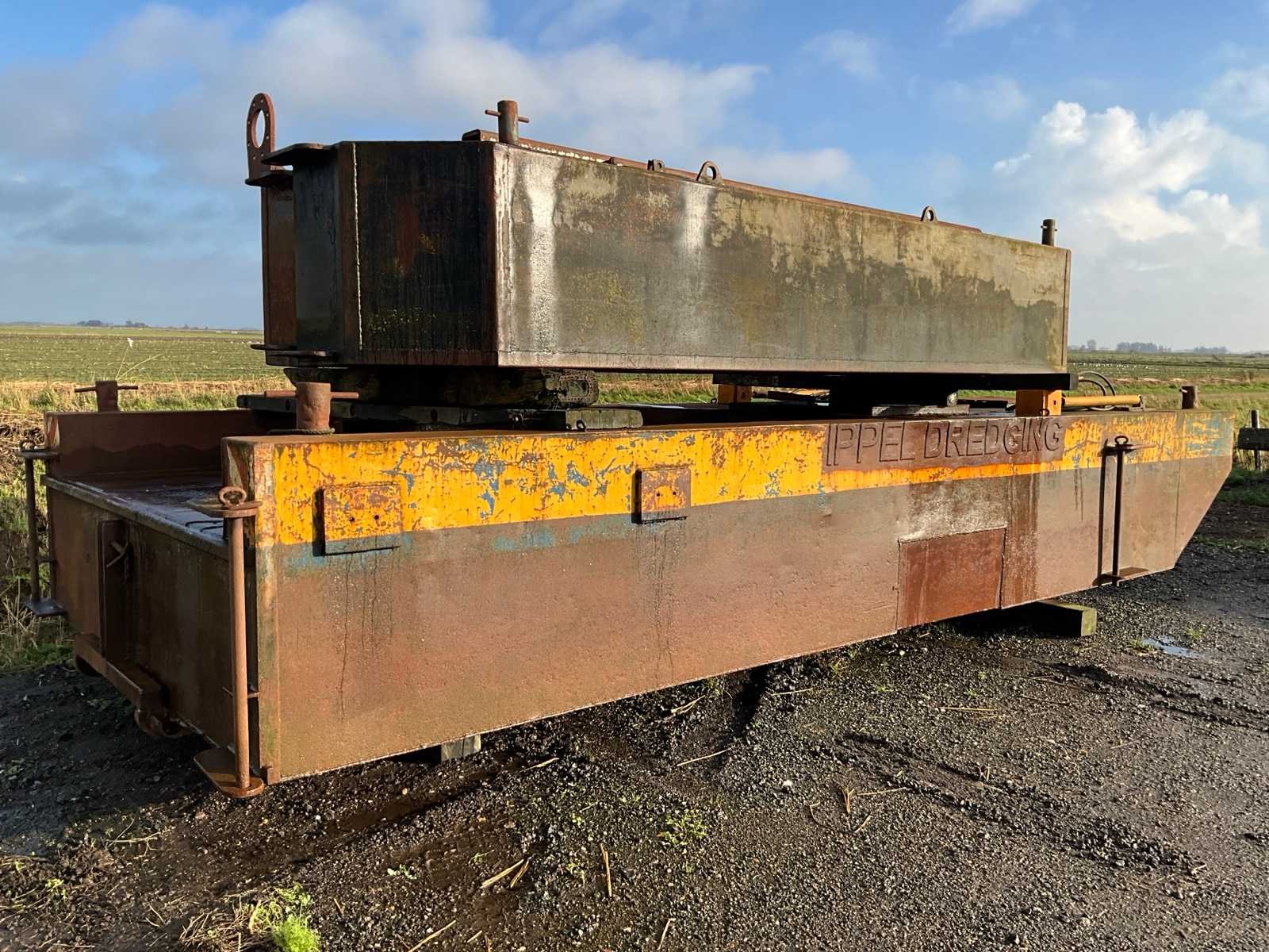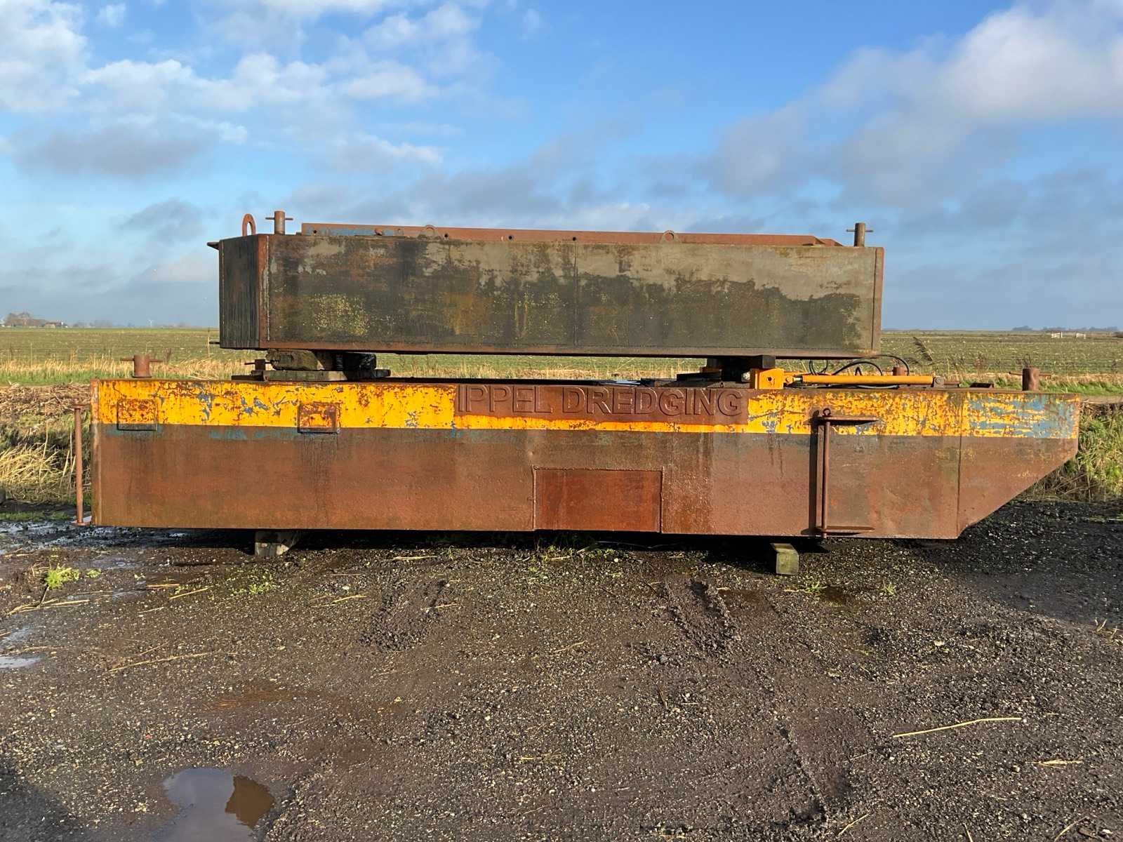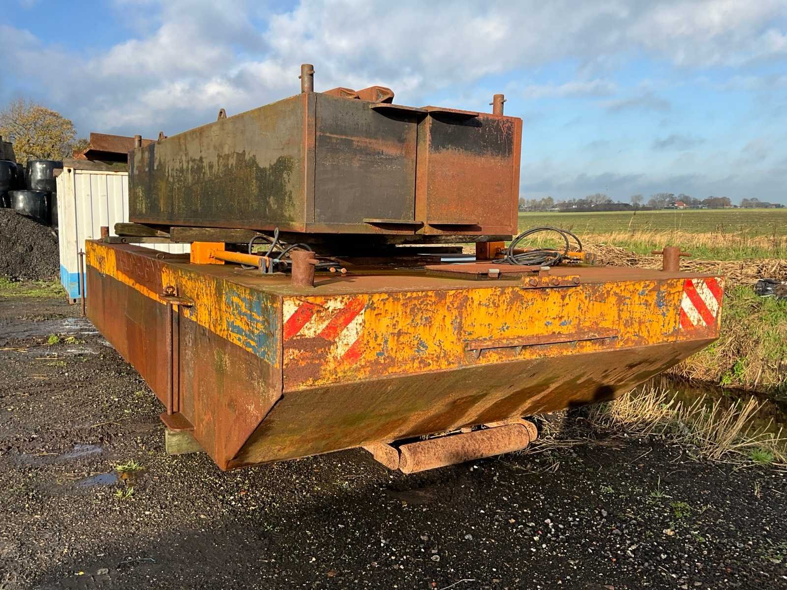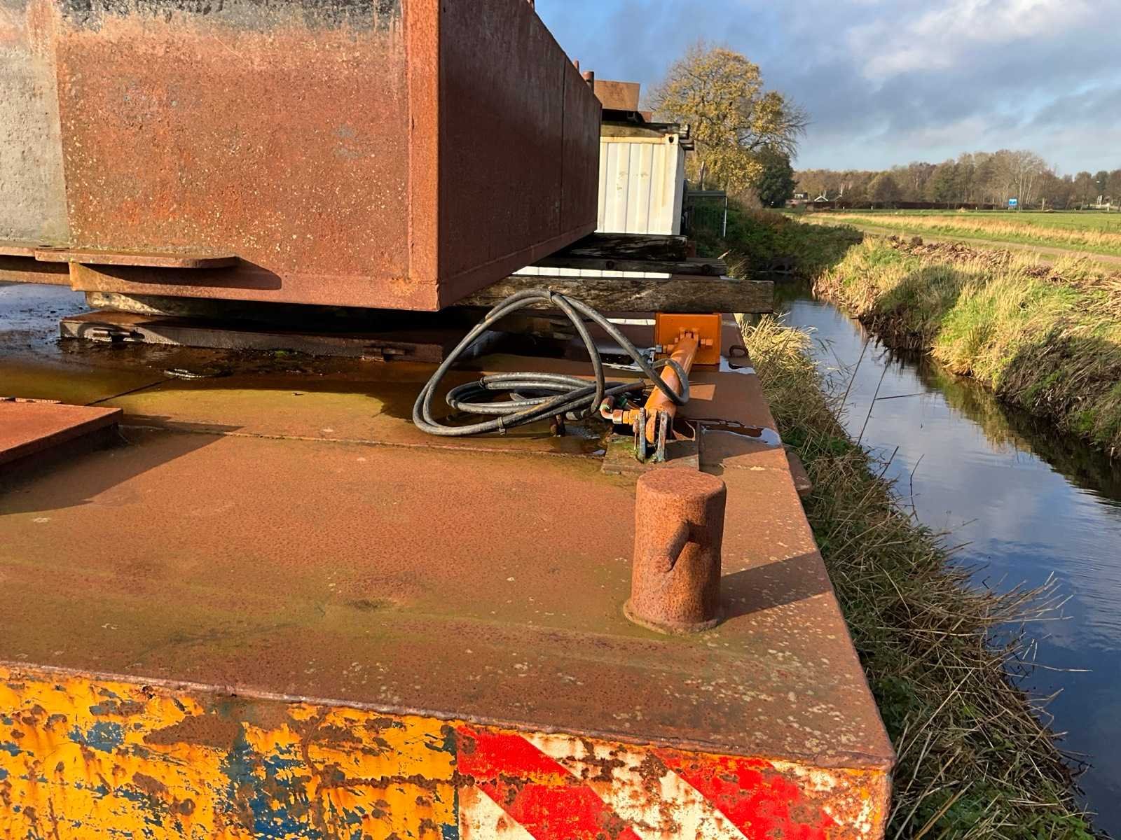 Voorzien van 2 drijvers; kabelsysteem voor vrachtwagen; kuip afmeting; ca. 3550x2380mm; inclusief 2 spudpalen! Nee Lengte over alles: 6.9m Breedte formaat: 3m Rompmateriaal: Staal