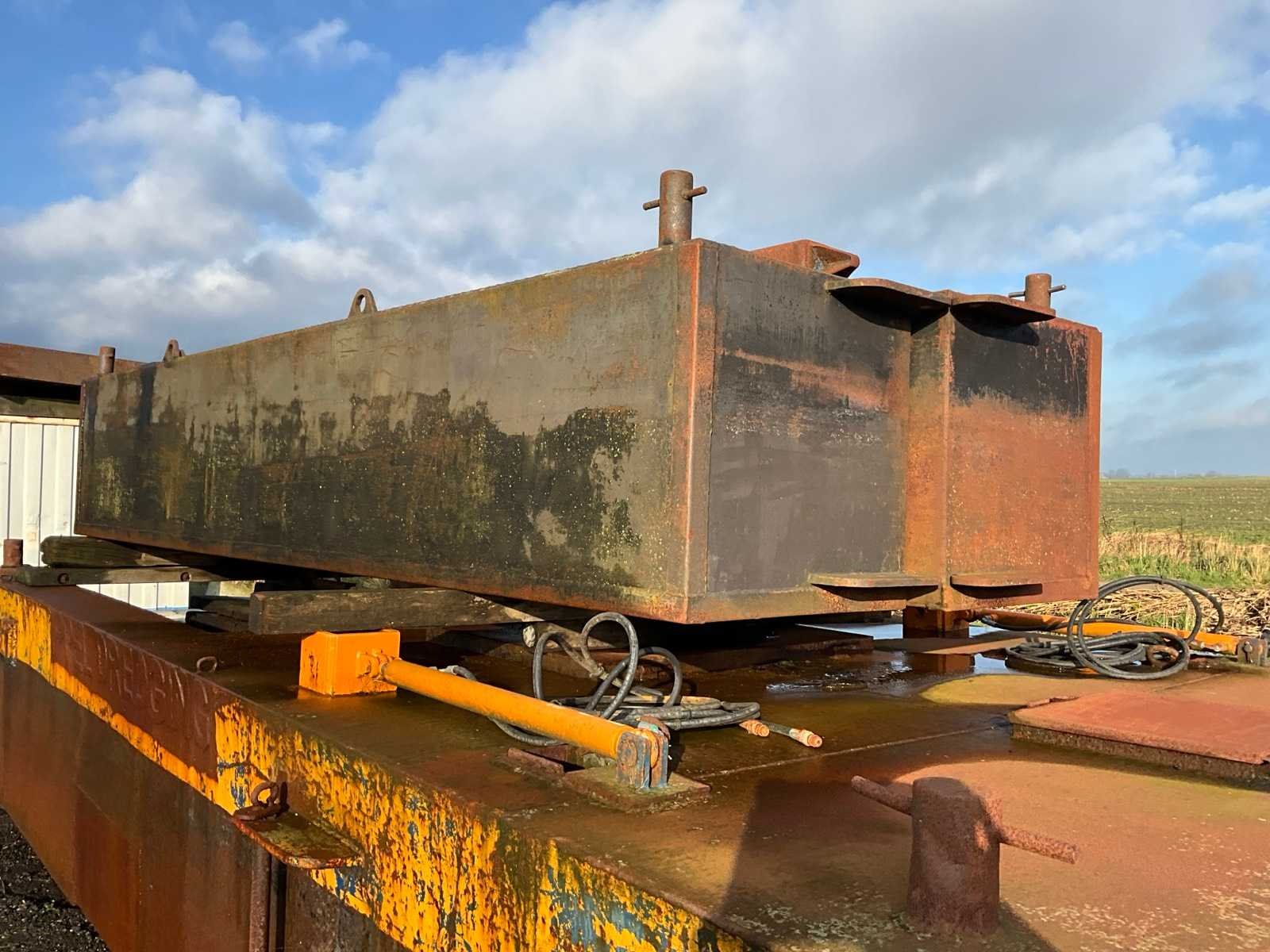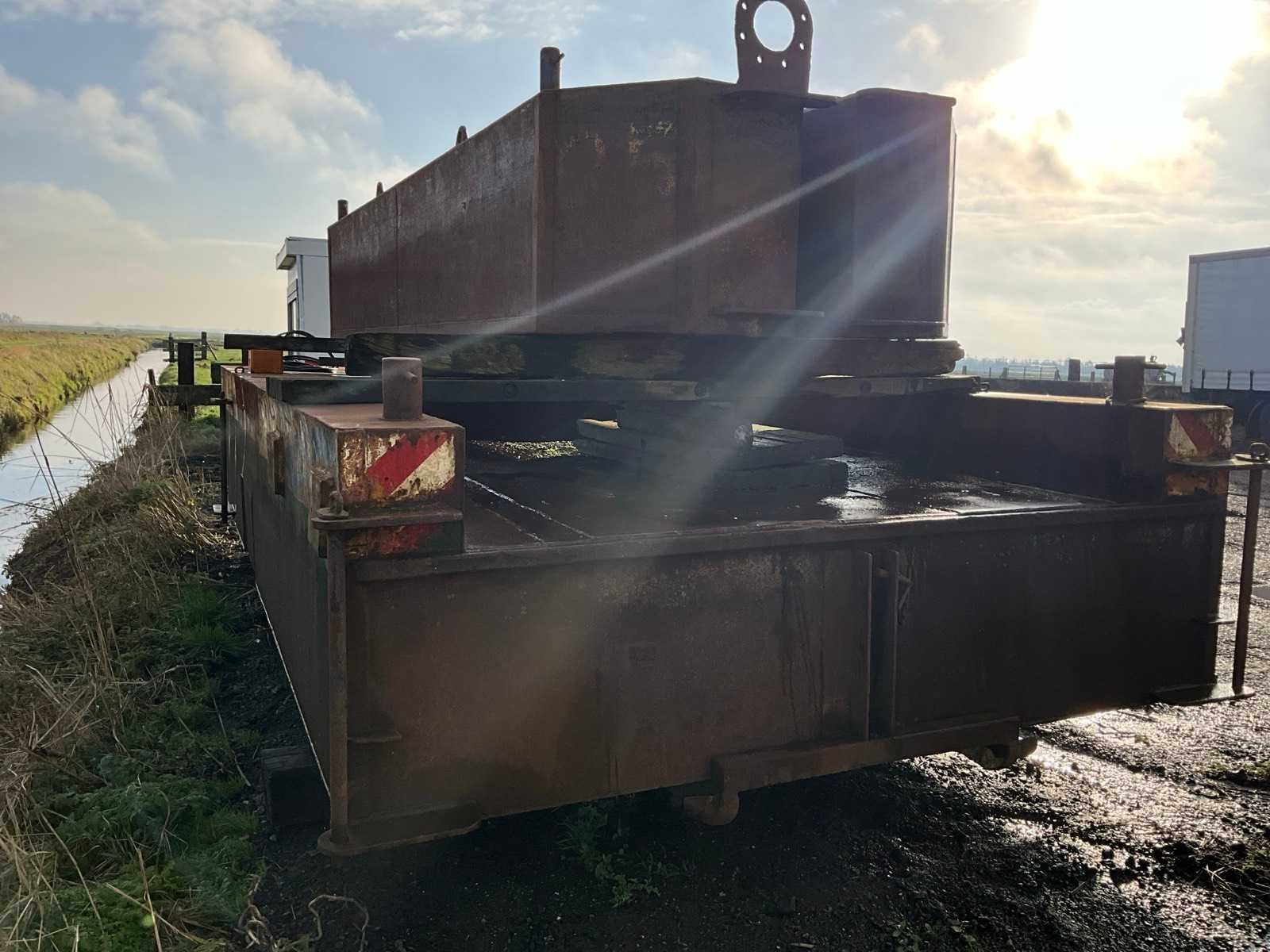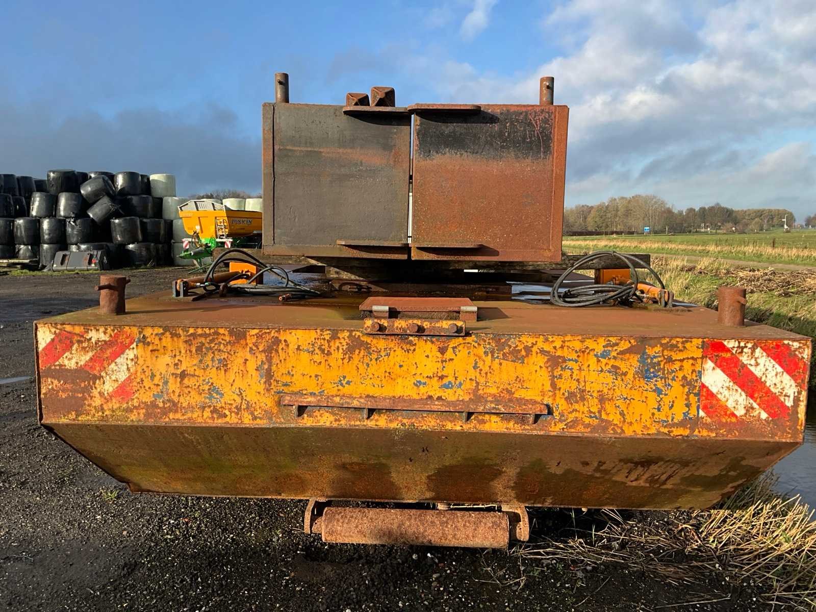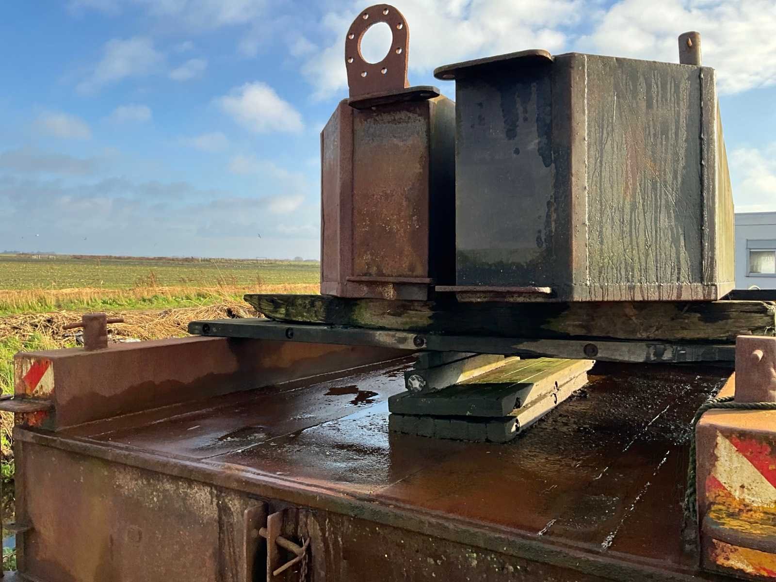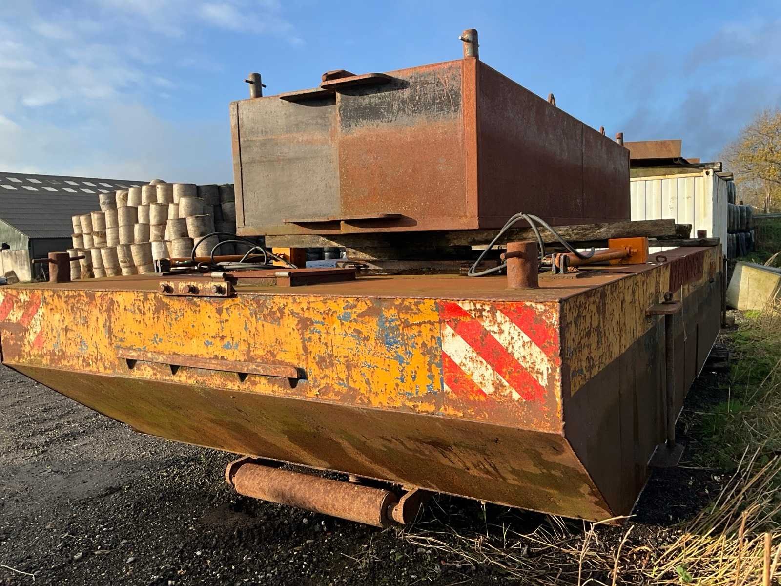 Voorzien van 2 drijvers; kabelsysteem voor vrachtwagen; kuip afmeting; ca. 3550x2380mm; inclusief 2 spudpalen! Nee Lengte over alles: 6.9m Breedte formaat: 3m Rompmateriaal: Staal