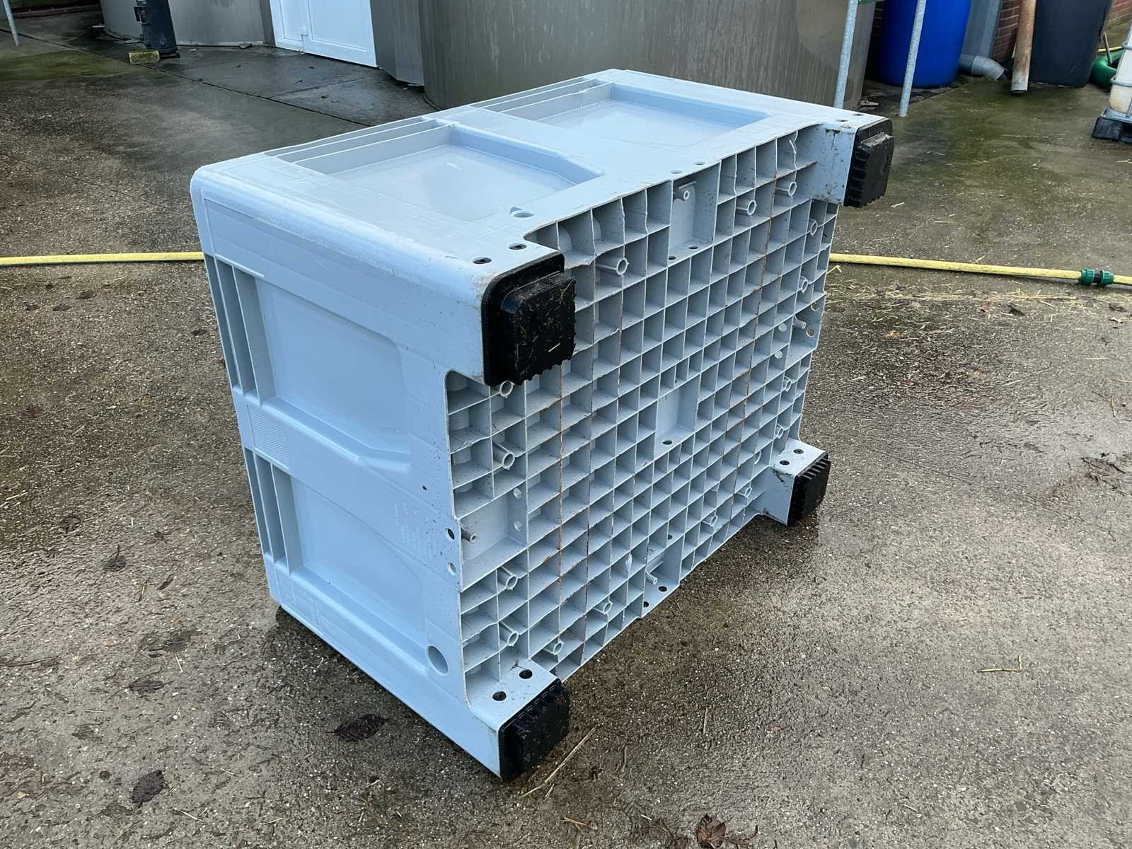 Voorzien van: ISO formaat, stapelbare HDPE-kunststof box van 1200×1000×760 mm, met een inhoud van ca. 610 liter, een eigen gewicht van 32–37 kg, een draagvermogen van circa 450–500 kg, een statisch stapelvermogen tot ongeveer 4500 kg, verkrijgbaar met gesloten of geperforeerde wanden en met 4 poten of 2/3 sledes voor hygiënische en industriële opslag en transport. Nee Merk: Schoeller Allibert Type: MaxiLog Afmeting l: 1000mm Afmeting b: 1200mm Afmeting h: 760mm Kunststof: true