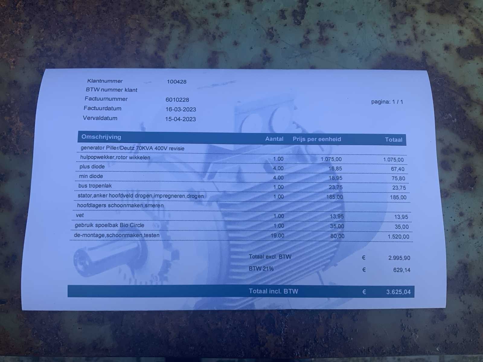 In 2023 onderhoud gehad, zie laatste foto. Nee Merk: Pillen Deutz Diesel: true Type motor: Deutz 70KVA Aantal cilinders: 6 Motorvermogen (kW): 70kW Totale afmeting L: 2060mm Totale afmeting Breedte: 900mm Totale afmeting Hoogte: 1220mm