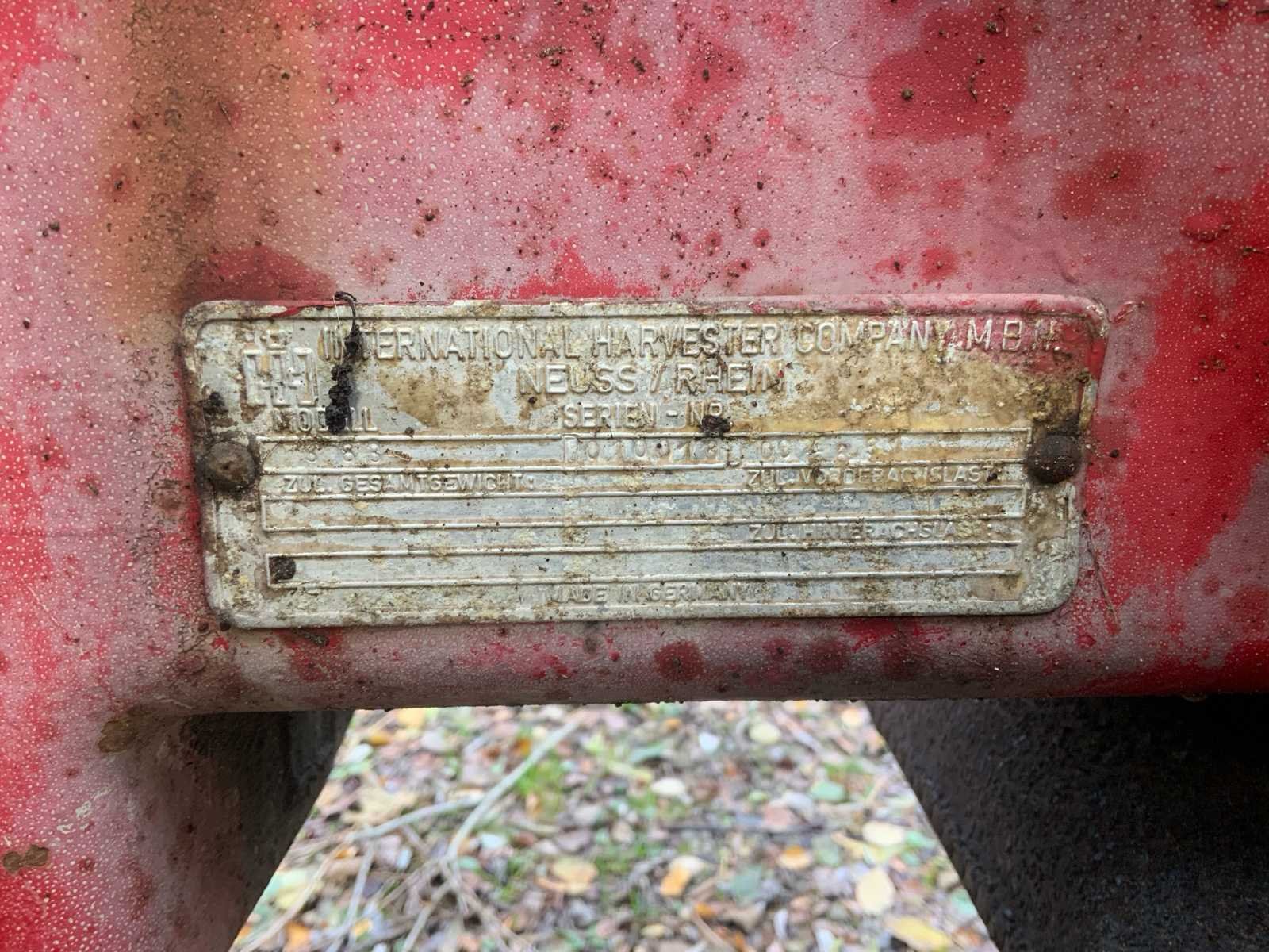 Voorzien van 3 cilinder dieselmotor met 38Pk * hefvermogen achter circa 1750Kg * bouwjaar circa 1972 - 1975 Nee Merk: International Type: 383 Serienummer: 0100187 Motorvermogen (kW): 28kW Afgelezen urenstand: 5198 Versnellingsbaktype: Handmatig Aftakastoerental: 540rpm Bandenmaat voor: 6.00-16 Bandenmaat achter: 11.2R32 Aantal hydraulische ventielen achter: 2 Eigen gewicht: 2056kg Totale afmeting L: 4050mm Totale afmeting Breedte: 1600mm Totale afmeting Hoogte: 2020mm