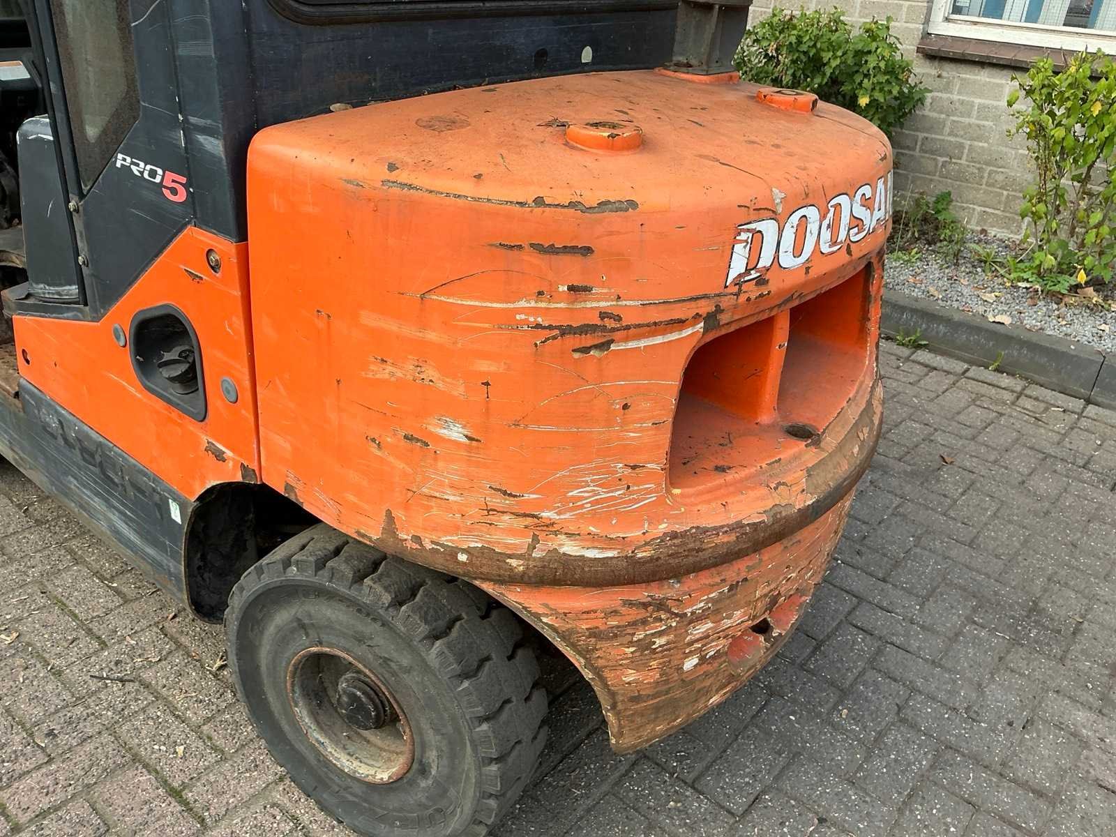 Voorzien van: werkverlichting, hydraulische aansluiting, ruitenwisser,spiegels, brandblusser, gordel Nee Merk: Doosan Type: D30S-5 Bouwjaar: 2013 Serienummer: FDA06-1240-15463 Brandstof: Diesel Mast: Triple Soort band: Volrubber banden Aantal wielen: 4 Afgelezen urenstand: 111095 Free-lift: true Side-shift: true Triple mast: true Eigen gewicht: 4761kg Hefvermogen: 3000kg Lepellengte: 1190mm Max. hefhoogte: 4730mm Vol rubber banden: true Totale afmeting L: 3850mm Totale afmeting Breedte: 1150mm Totale afmeting Hoogte: 2300mm Diesel: true
