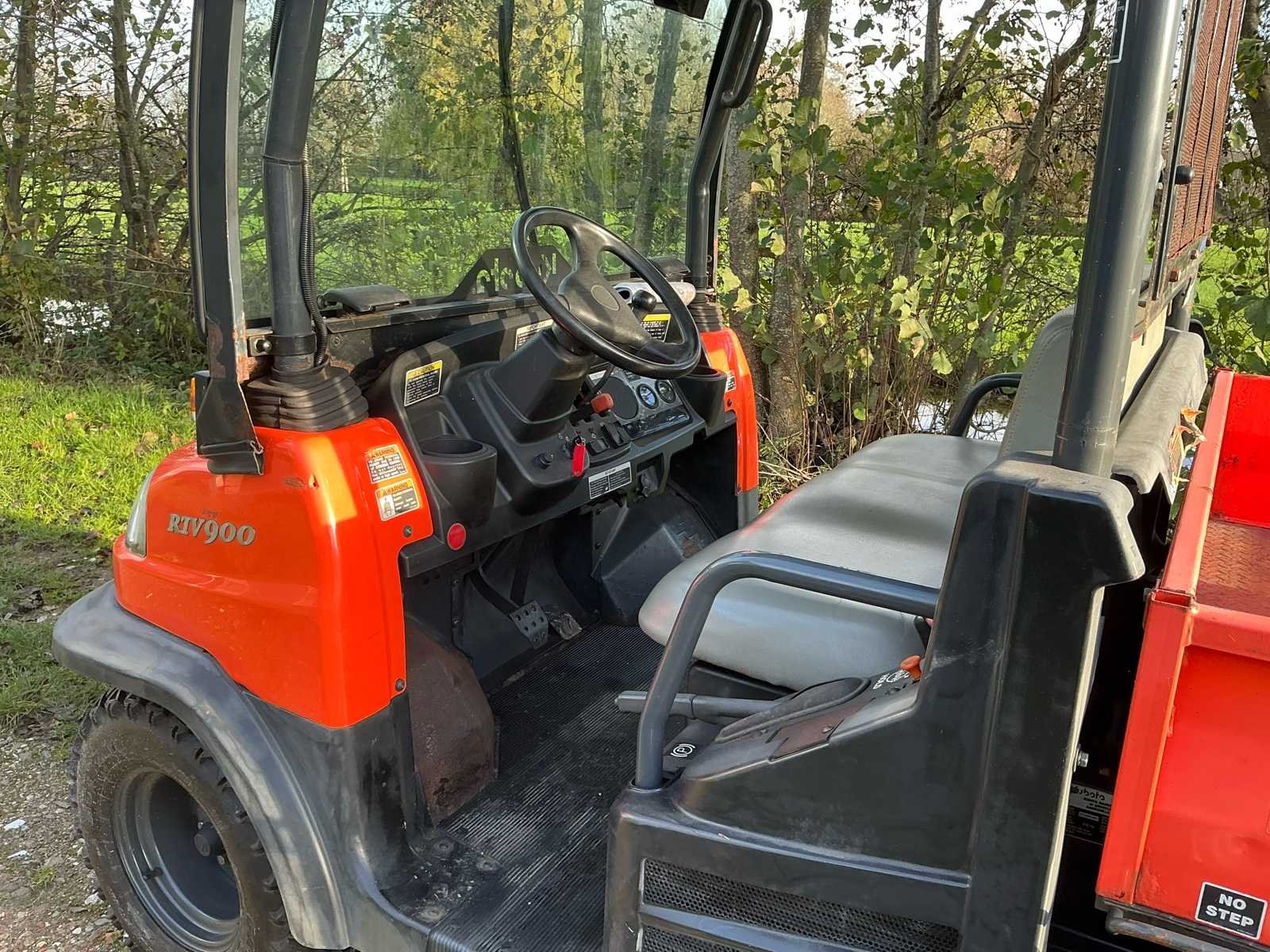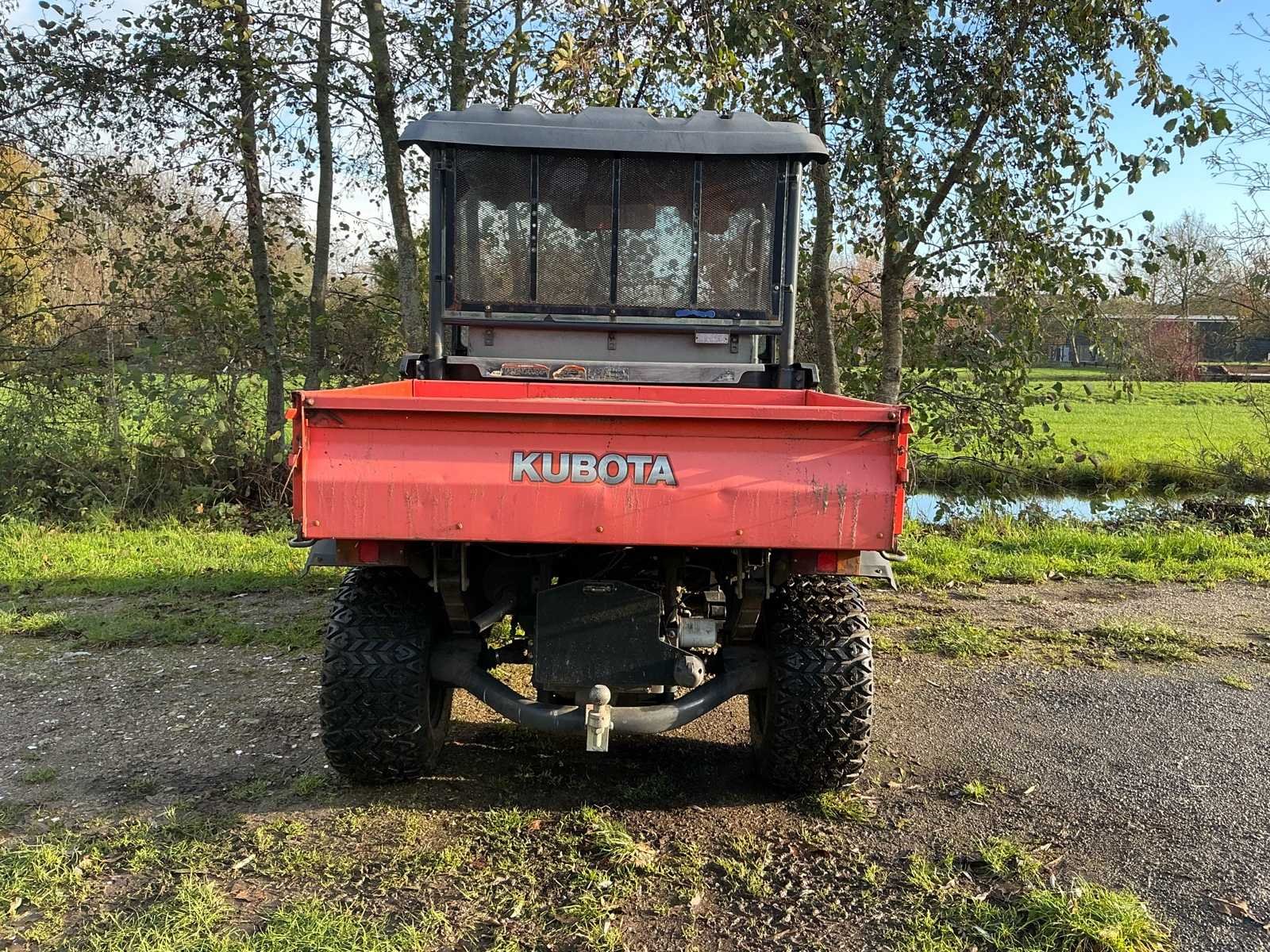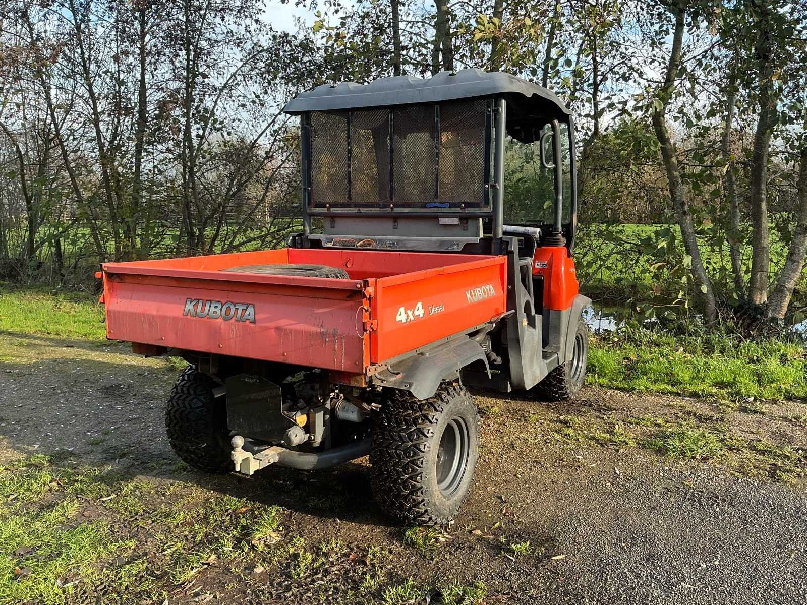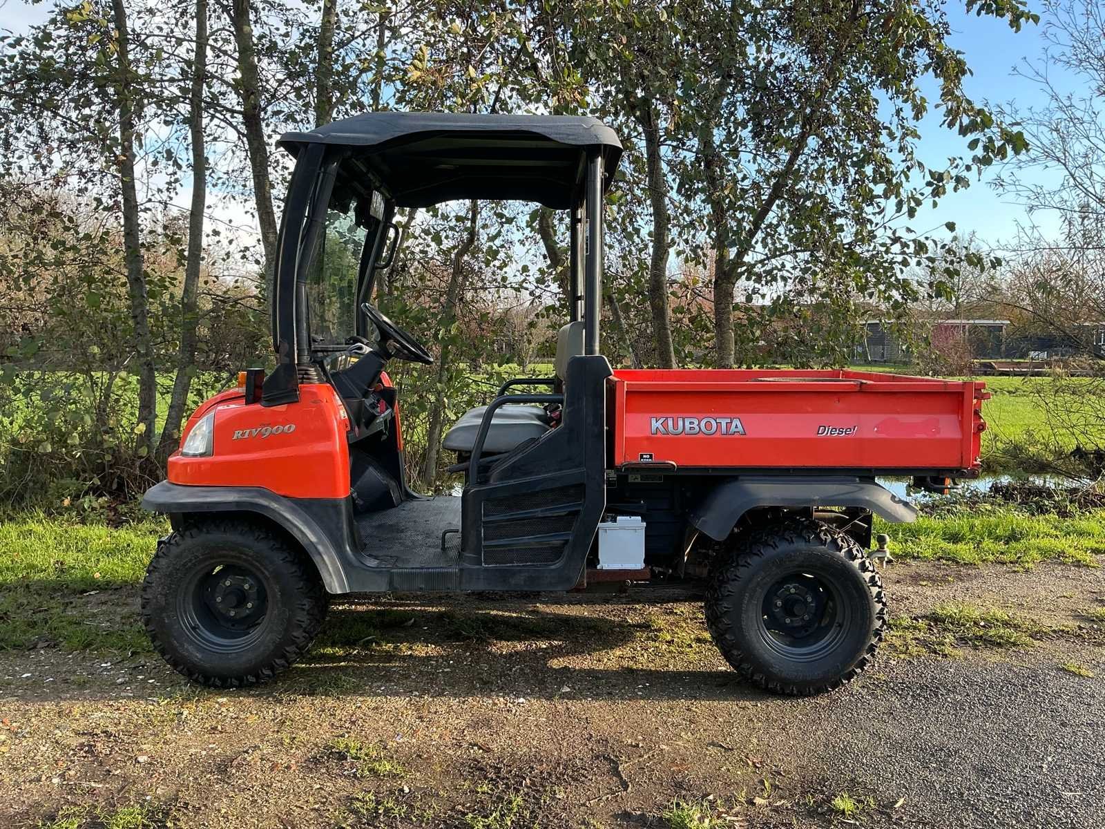 Urenstand: 1462 Brandstof: diesel Beschikt over rondom rijverlichting, hydraulische stuurbekrachtiging, 3 versnellingen, reservewiel, trekhaak, nieuwe banden en een nieuwe startbatterij. Nee Merk: Kubota Model: RTV900 Product type: 4x4 Bouwjaar: 2007 Chassisnummer: 61728 Laadvermogen: 500kg Vermogen (kW): 15kW Kleur: Oranje