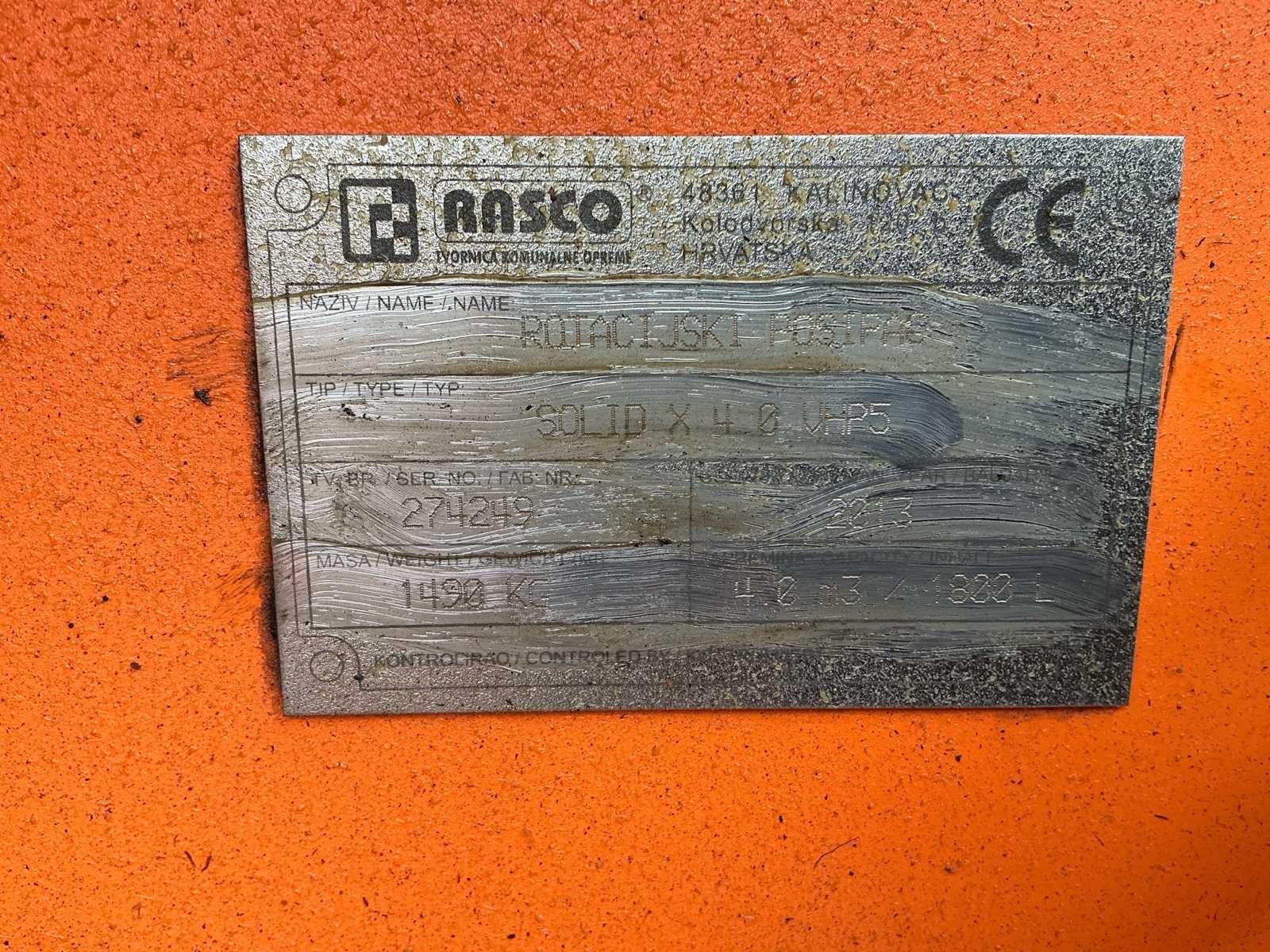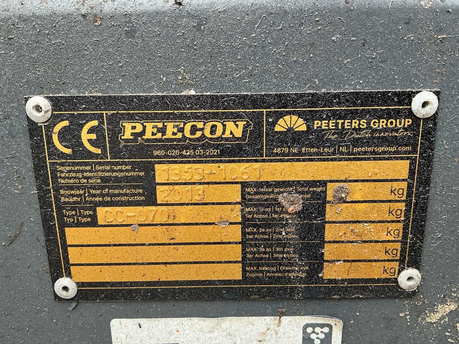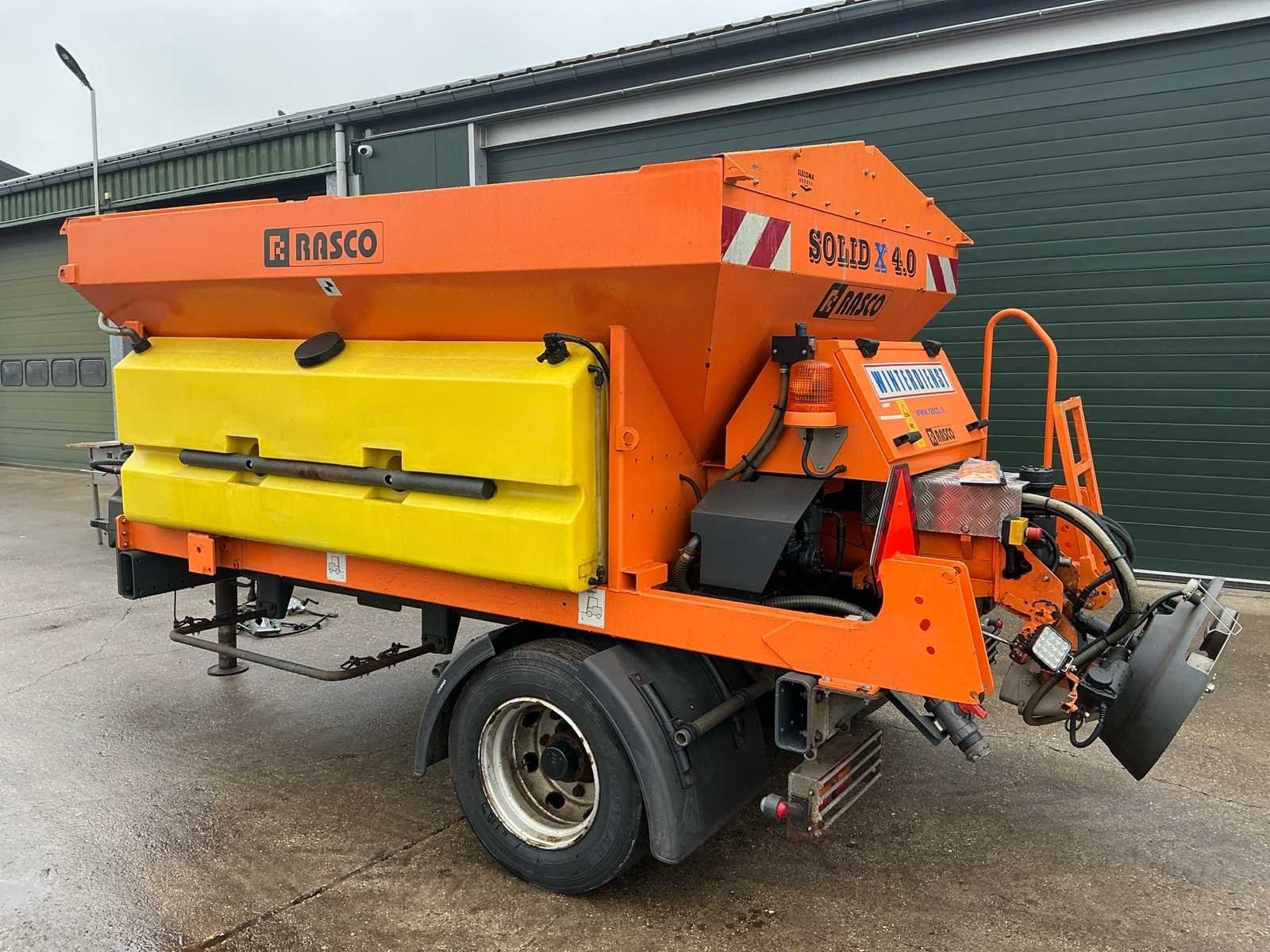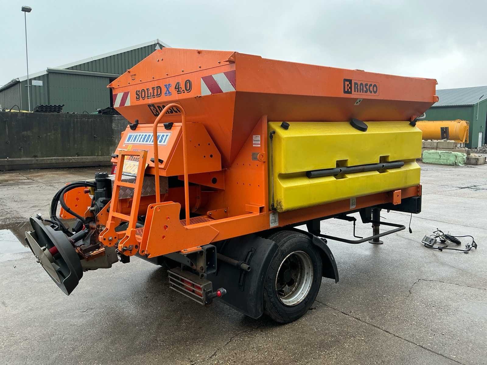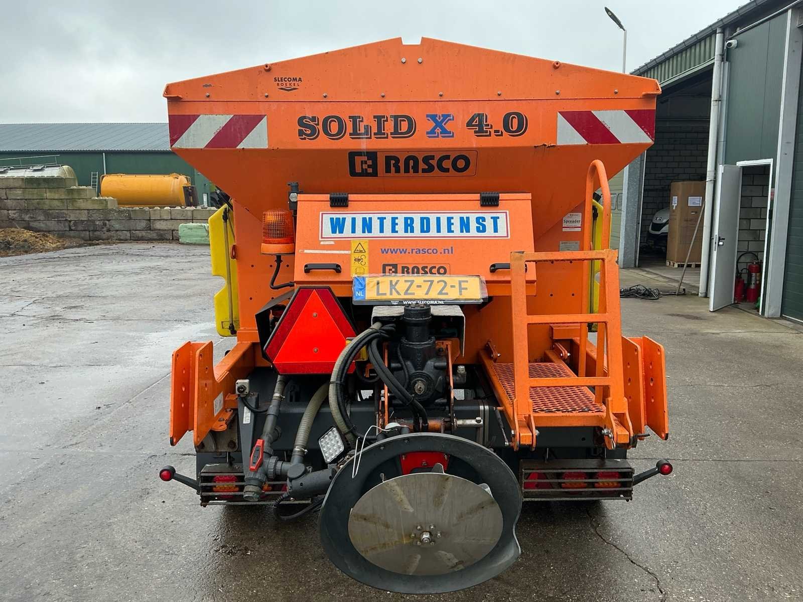 Voorzien van: Het betreft een Rasco Solid X 4.0 VP5 zout-/zandstrooier van 4 m³ op een Peecon GC-070 aanhanger (bouwjaar 2013) met hydraulische aandrijving, pekeltank en elektrische bediening. Rasco Solid X 4.0 VP5 strooier (4 m³, 1492 kg, hydraulisch aangedreven met 2–12 m strooibreedte, geschikt voor zout/zand/pekel en elektrisch bediend vanuit het voertuig) geplaatst op een Peecon GC-070 onderstel (bouwjaar 2015, 1-assig 7-tons chassis met K80-trekoog en zwaar gegalvaniseerd frame). Rasco Solid X 4.0 VP5 strooier op Peecon GC-070 onderstel is ongeveer 4,8–5,2 m lang, 2,1–2,3 m breed, 2,0–2,4 m hoog, weegt leeg circa 2.200–2.500 kg en komt volledig gevuld op ongeveer 5.000–5.500 kg totaalgewicht. Nederlands kenteken: LKZ-72-F Nee Merk: Rasco Type: Solid X 4.0 VHP5 Bouwjaar: 2013 Serienummer: 274249 Werkbreedte: 12000mm Eigen gewicht: 2400kg Totale afmeting L: 5200mm Totale afmeting Breedte: 2300mm Totale afmeting Hoogte: 2400mm