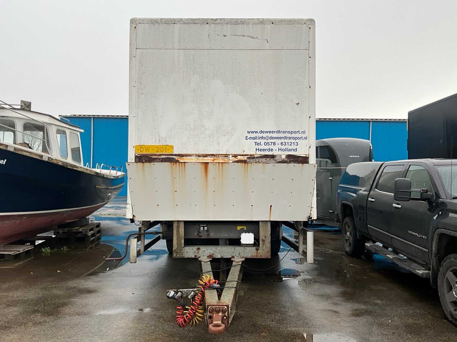 Trailer wordt leeg opgeleverd Nee Merk: Vogelzang Type: VA-12 Bouwjaar: 1993 Chassisnummer: 931401 Aantal assen: 2 Gesloten opbouw: true Lengte: 7300cm Breedte: 2550cm